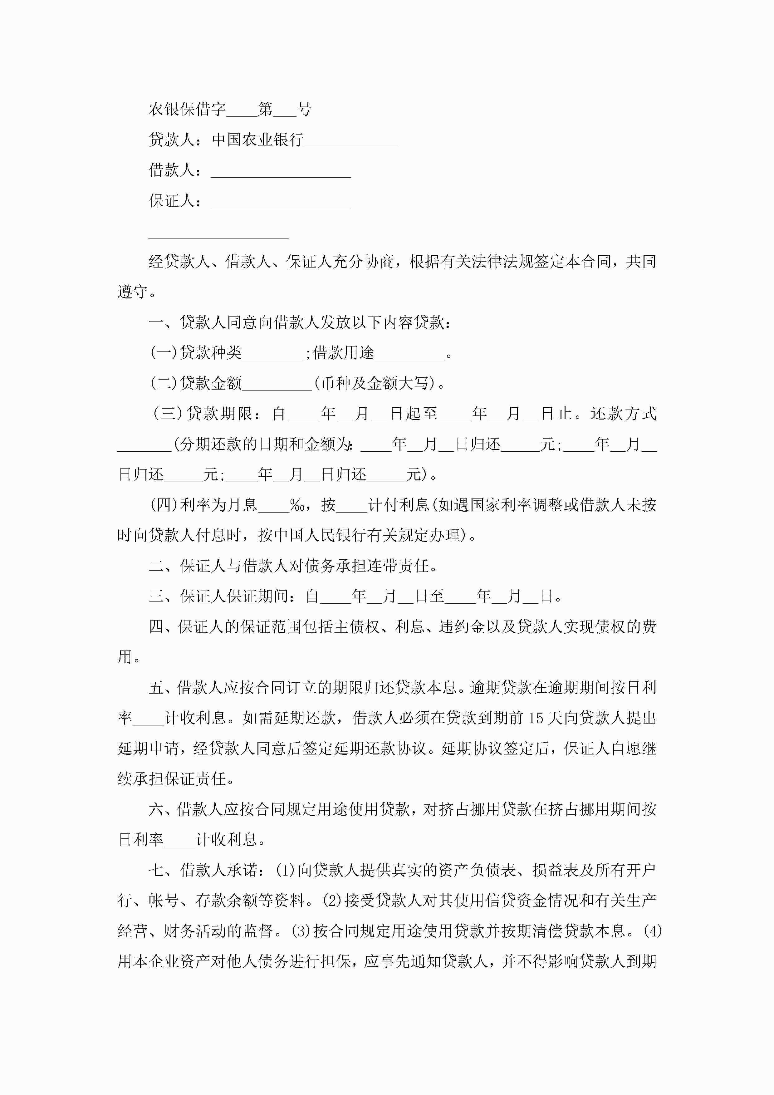 银行借款担保合同书范文5篇jugei3月23日 01:40发布关注232 银行借款担保合同书范文5篇此内容为付费资源,请付费后查看¥10.9 单篇文档限时特惠¥15个人会员开通企业会员开通立即下载无需登陆!可直接快捷下载单个模板付费资源© 版权声明THE ENDWord模板# 实用文档# 实用模板# 合同模板# 借款合同 如有问题,可点击最底部“联系我们”联系客服 分享QQ空间微博QQ好友海报分享复制链接收藏
