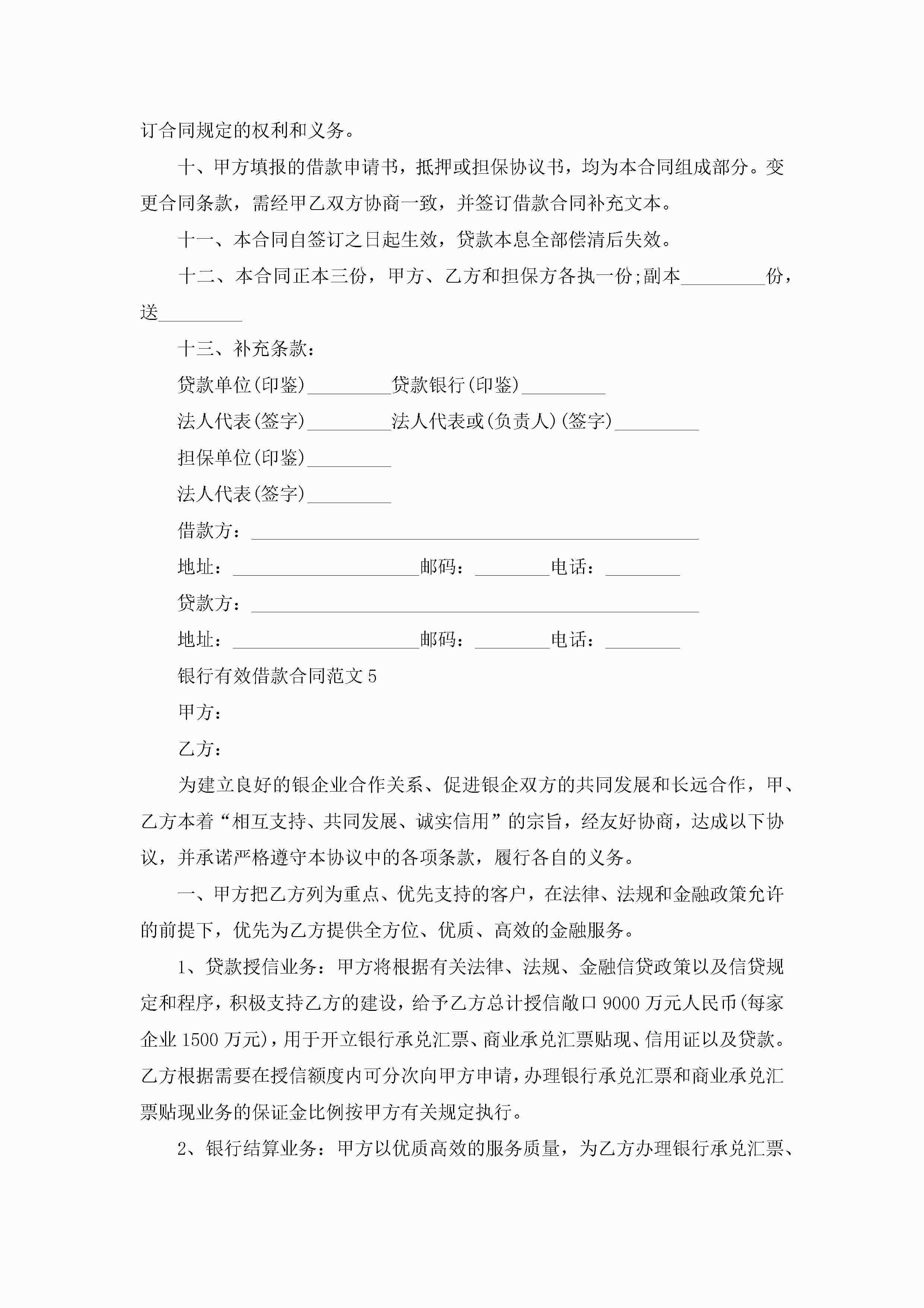 银行有效借款合同范文5篇jugei3月23日 01:40发布关注284 银行有效借款合同范文5篇此内容为付费资源,请付费后查看¥10.9 单篇文档限时特惠¥15个人会员开通企业会员开通立即下载无需登陆!可直接快捷下载单个模板付费资源© 版权声明THE ENDWord模板# 实用文档# 实用模板# 合同模板# 借款合同 如有问题,可点击最底部“联系我们”联系客服 分享QQ空间微博QQ好友海报分享复制链接收藏