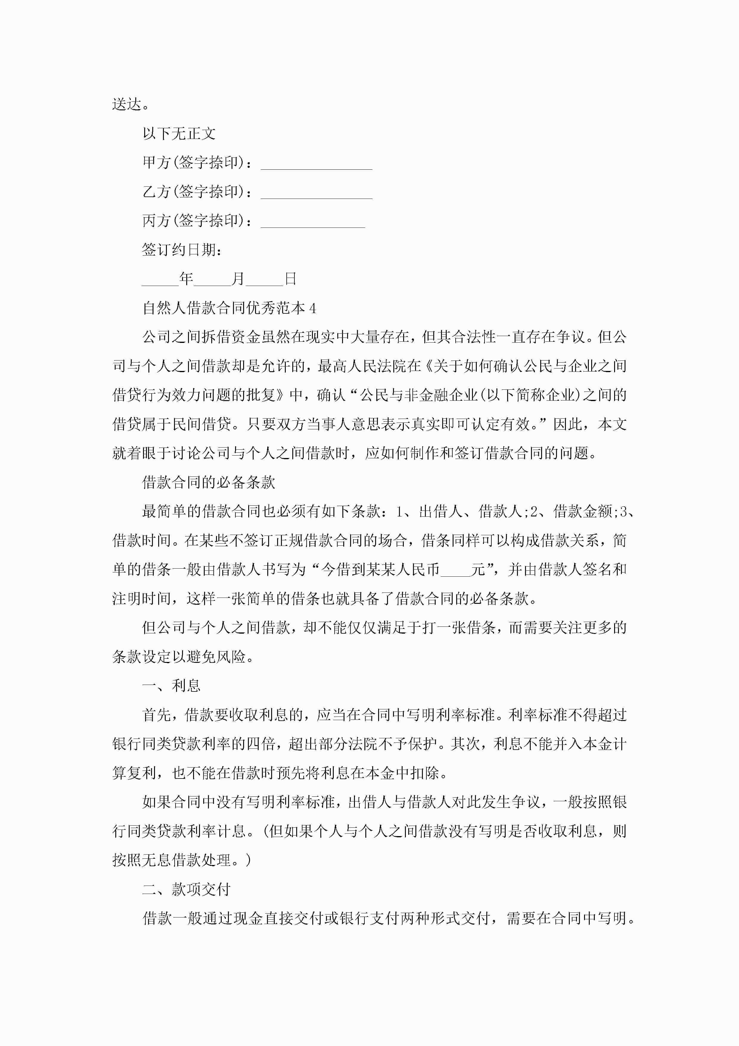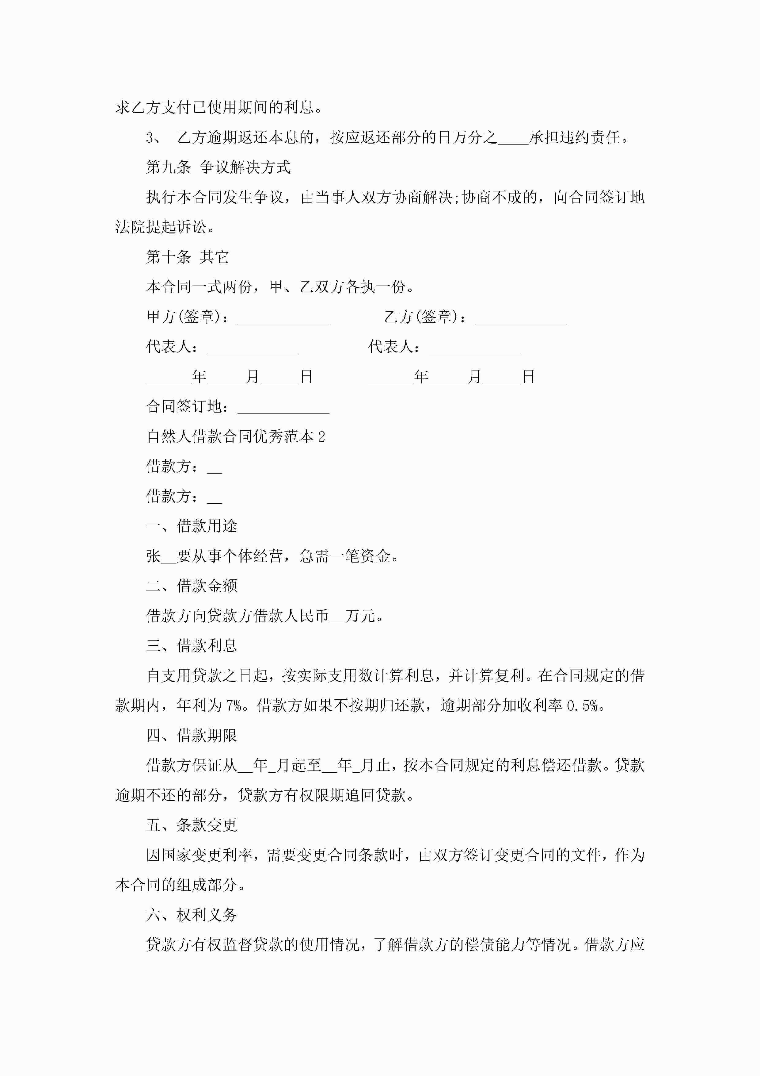 自然人借款合同优秀范本5篇jugei3月23日 01:40发布关注203 自然人借款合同优秀范本5篇此内容为付费资源,请付费后查看¥10.9 单篇文档限时特惠¥15个人会员开通企业会员开通立即下载无需登陆!可直接快捷下载单个模板付费资源© 版权声明THE ENDWord模板# 实用文档# 实用模板# 合同模板# 借款合同 如有问题,可点击最底部“联系我们”联系客服 分享QQ空间微博QQ好友海报分享复制链接收藏