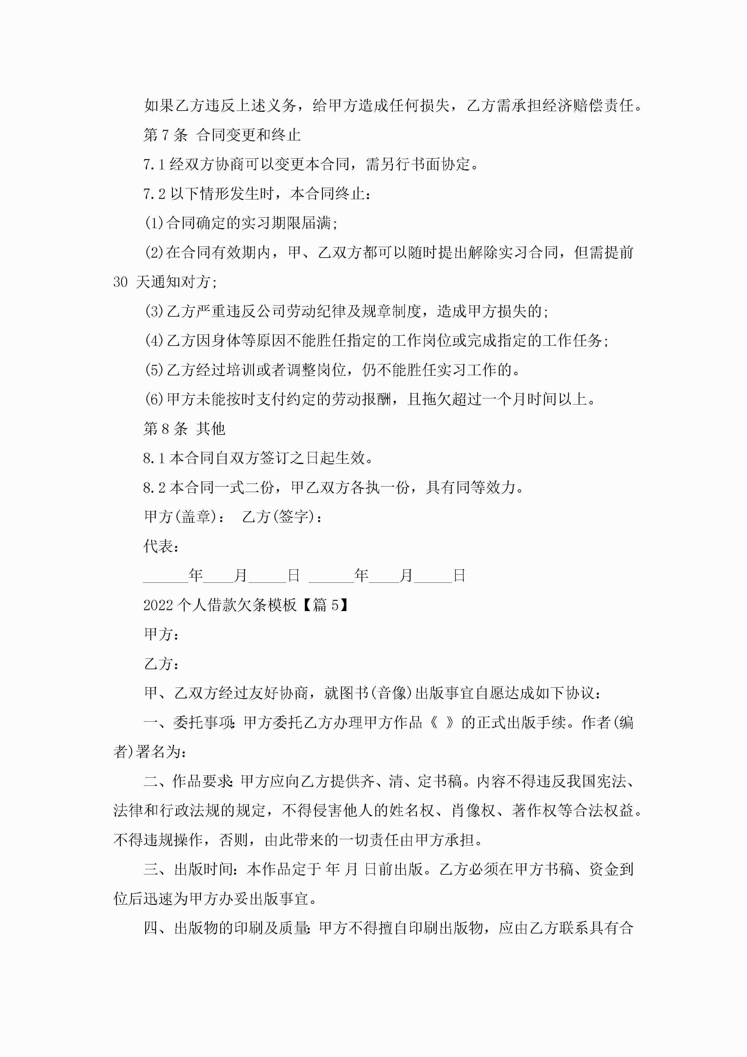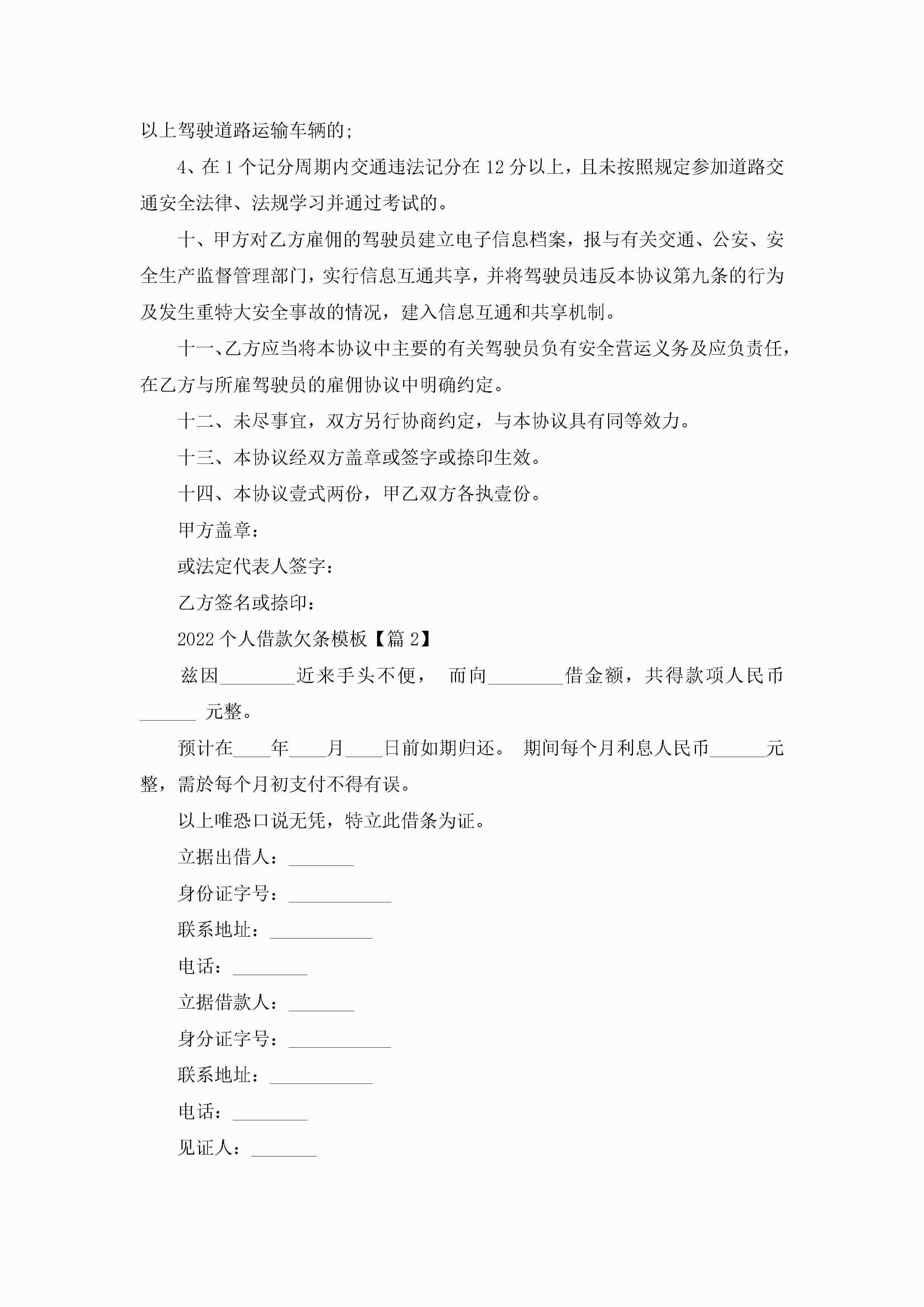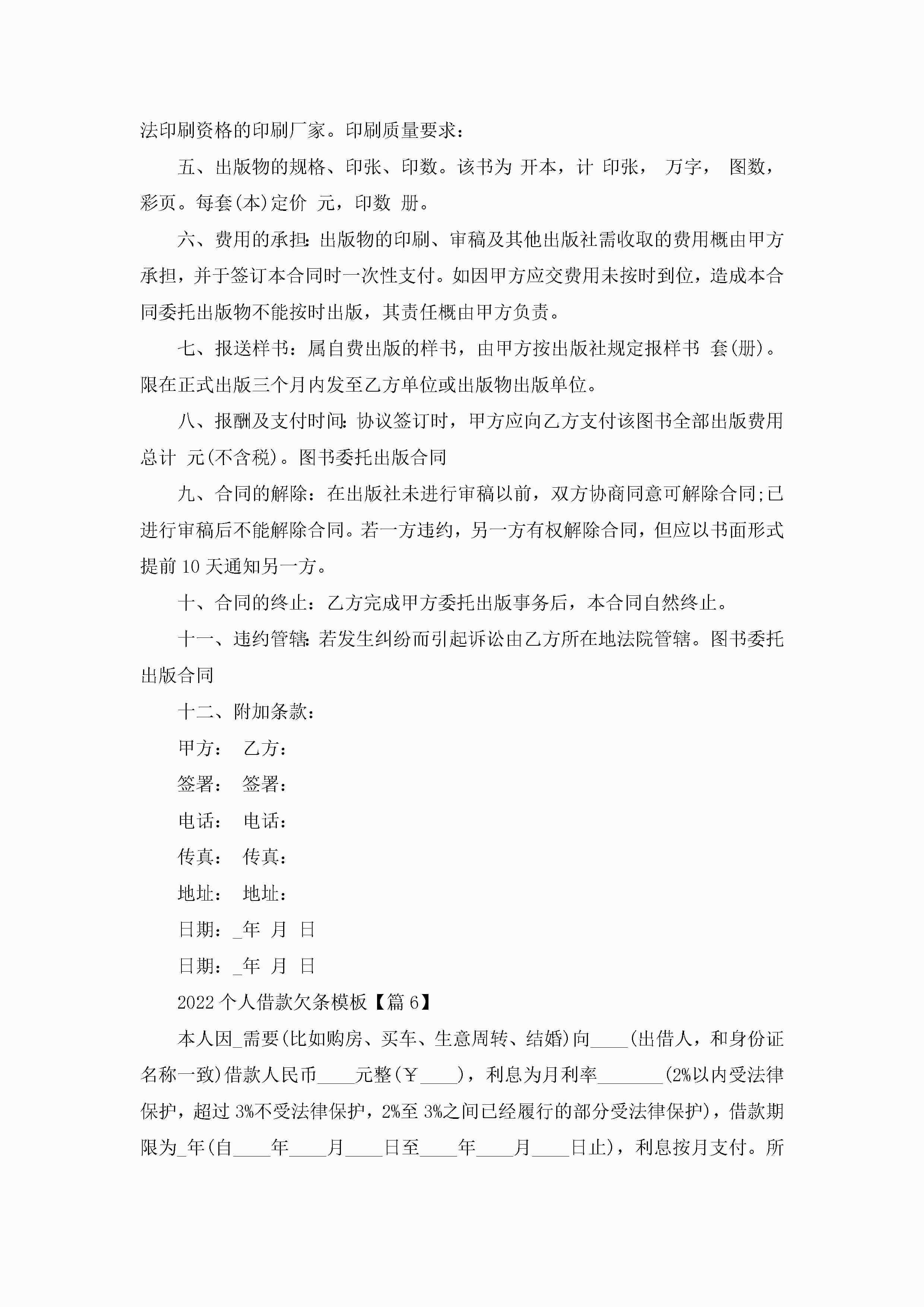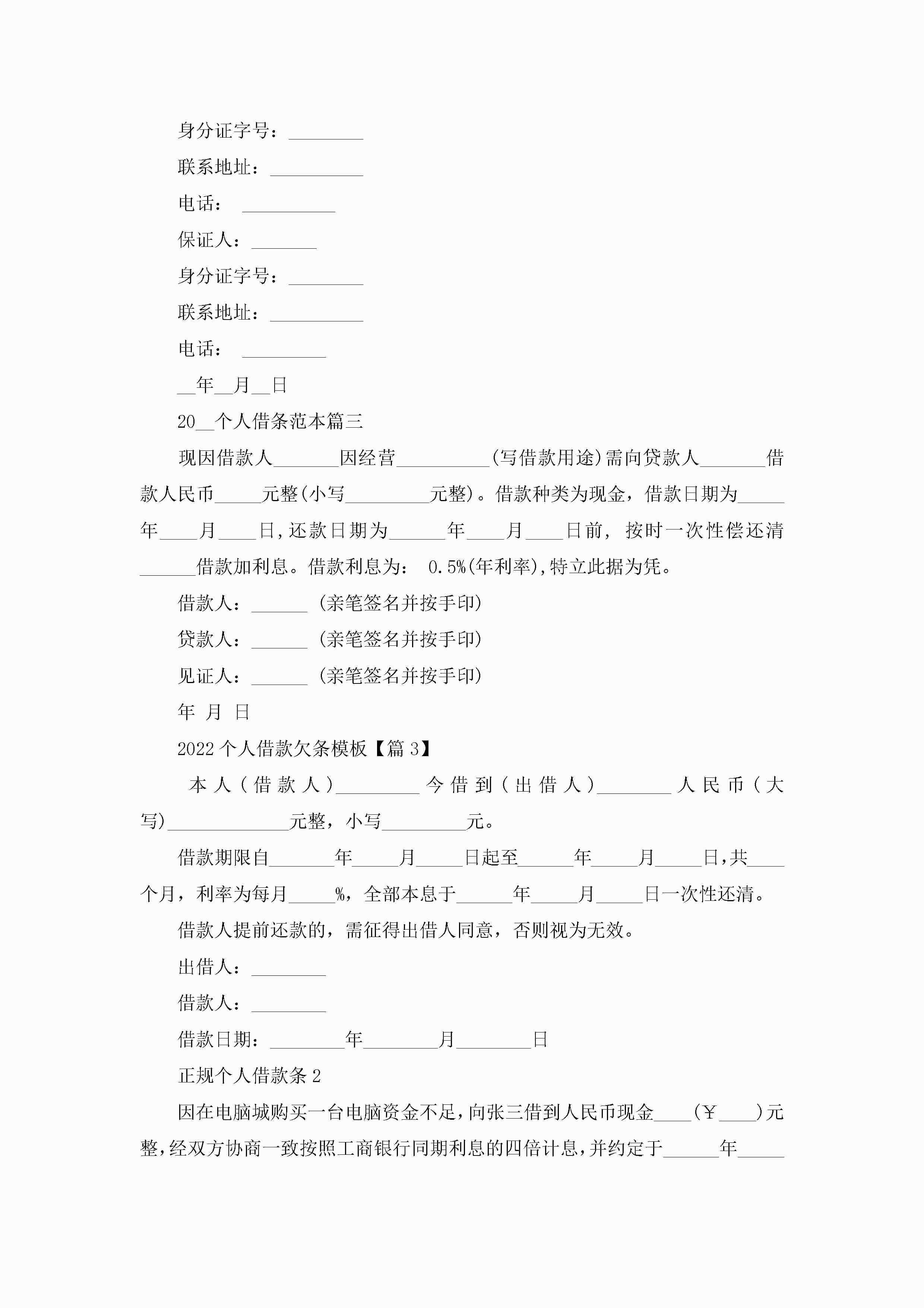 2022个人借款欠条模板精选6篇jugei3月23日 01:41发布关注203 2022个人借款欠条模板精选6篇此内容为付费资源,请付费后查看¥10.9 单篇文档限时特惠¥15个人会员开通企业会员开通立即下载无需登陆!可直接快捷下载单个模板付费资源© 版权声明THE ENDWord模板# 实用文档# 实用模板# 合同模板# 借款合同 如有问题,可点击最底部“联系我们”联系客服 分享QQ空间微博QQ好友海报分享复制链接收藏