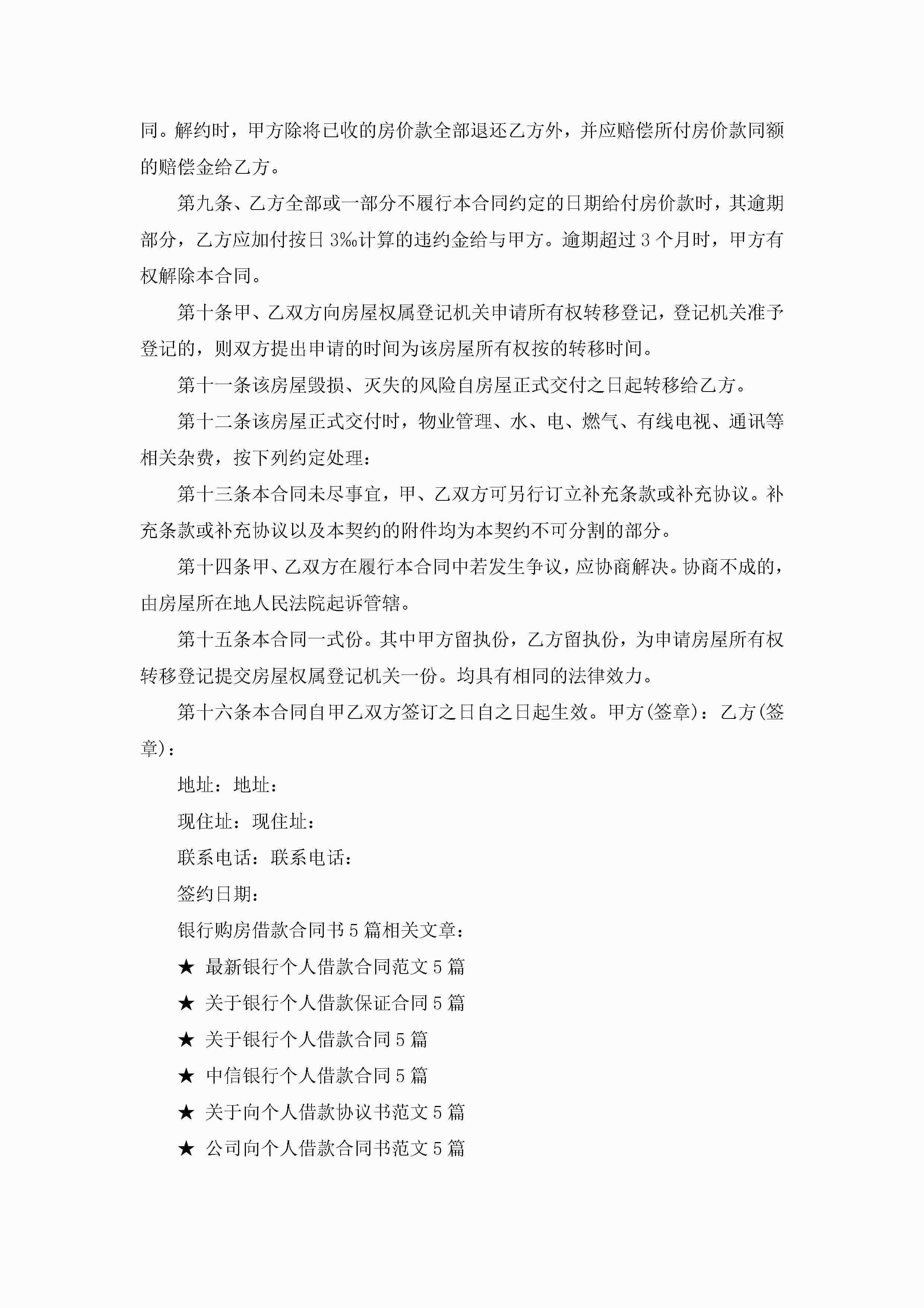 银行购房借款合同书范文5篇jugei3月23日 01:41发布关注201 银行购房借款合同书范文5篇此内容为付费资源,请付费后查看¥10.9 单篇文档限时特惠¥15个人会员开通企业会员开通立即下载无需登陆!可直接快捷下载单个模板付费资源© 版权声明THE ENDWord模板# 实用文档# 实用模板# 合同模板# 借款合同 如有问题,可点击最底部“联系我们”联系客服 分享QQ空间微博QQ好友海报分享复制链接收藏