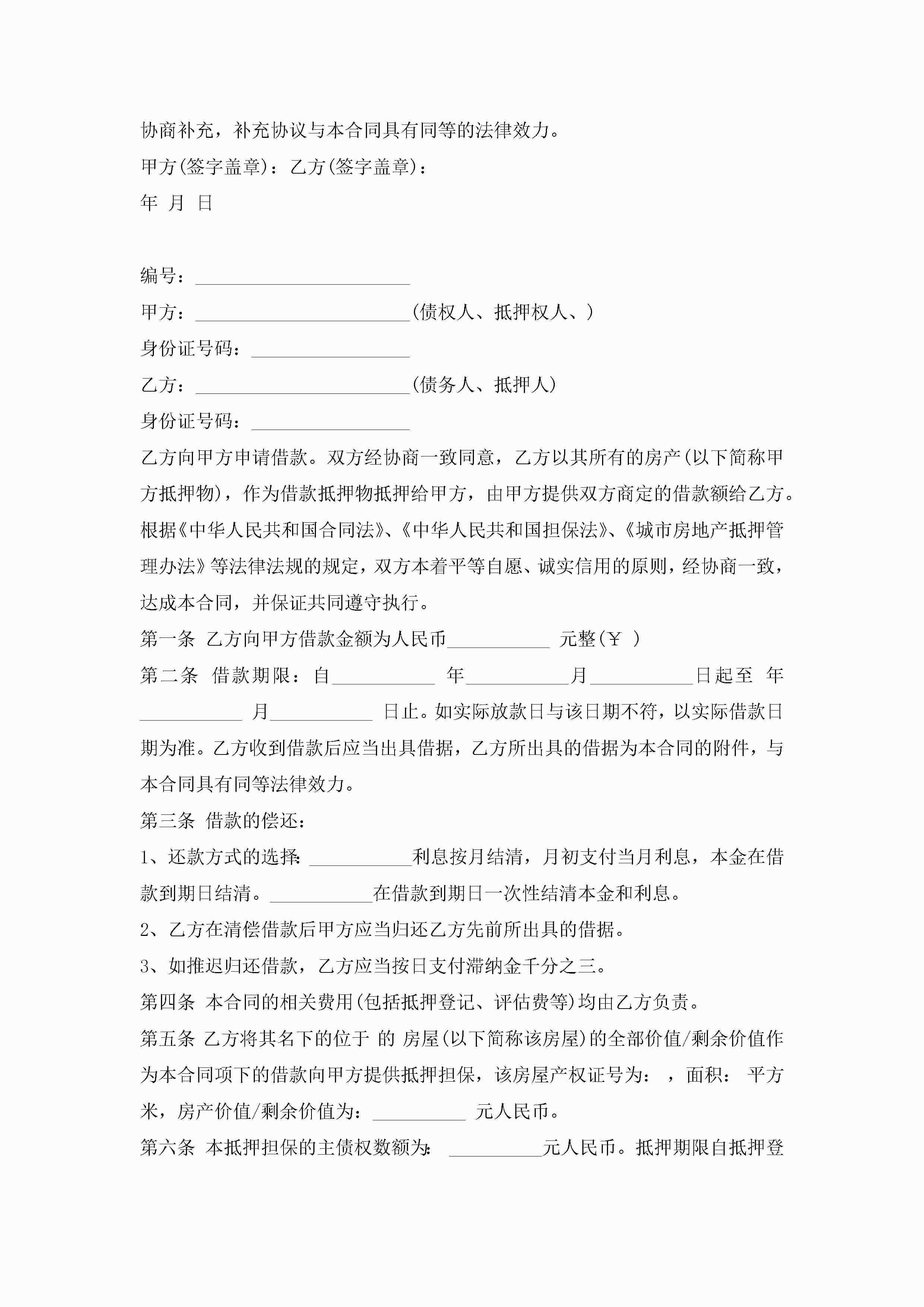 个人抵押贷款合同协议书7篇jugei3月23日 01:41发布关注222 个人抵押贷款合同协议书7篇此内容为付费资源,请付费后查看¥10.9 单篇文档限时特惠¥15个人会员开通企业会员开通立即下载无需登陆!可直接快捷下载单个模板付费资源© 版权声明THE ENDWord模板# 实用文档# 实用模板# 合同模板# 借款合同 如有问题,可点击最底部“联系我们”联系客服 分享QQ空间微博QQ好友海报分享复制链接收藏