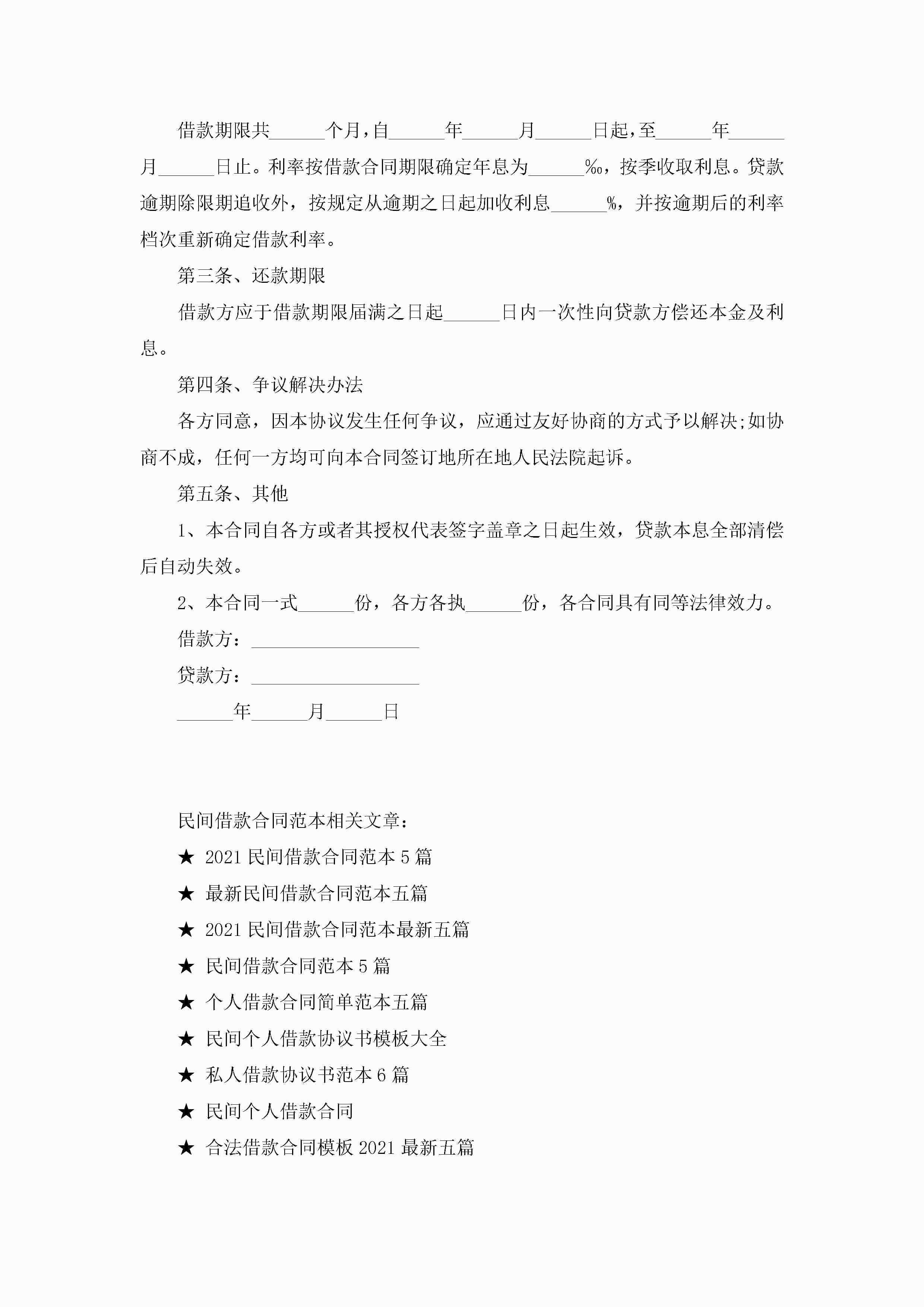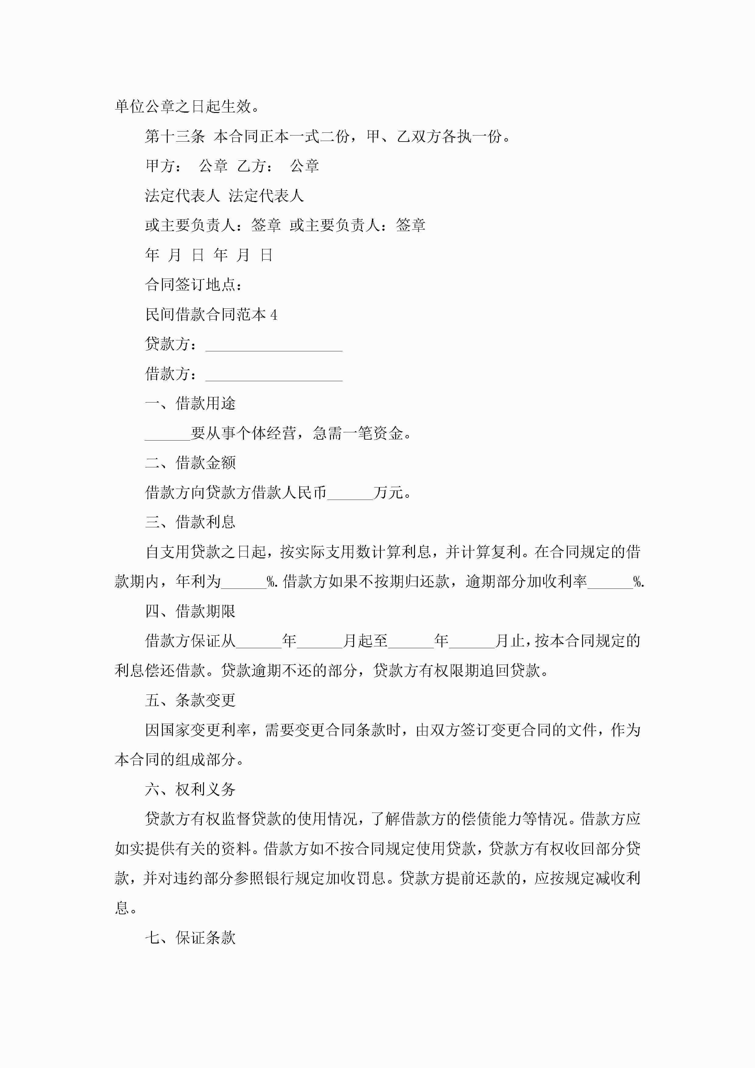 关于民间借款合同范本5篇jugei3月23日 01:41发布关注203 关于民间借款合同范本5篇此内容为付费资源,请付费后查看¥10.9 单篇文档限时特惠¥15个人会员开通企业会员开通立即下载无需登陆!可直接快捷下载单个模板付费资源© 版权声明THE ENDWord模板# 实用文档# 实用模板# 合同模板# 借款合同 如有问题,可点击最底部“联系我们”联系客服 分享QQ空间微博QQ好友海报分享复制链接收藏