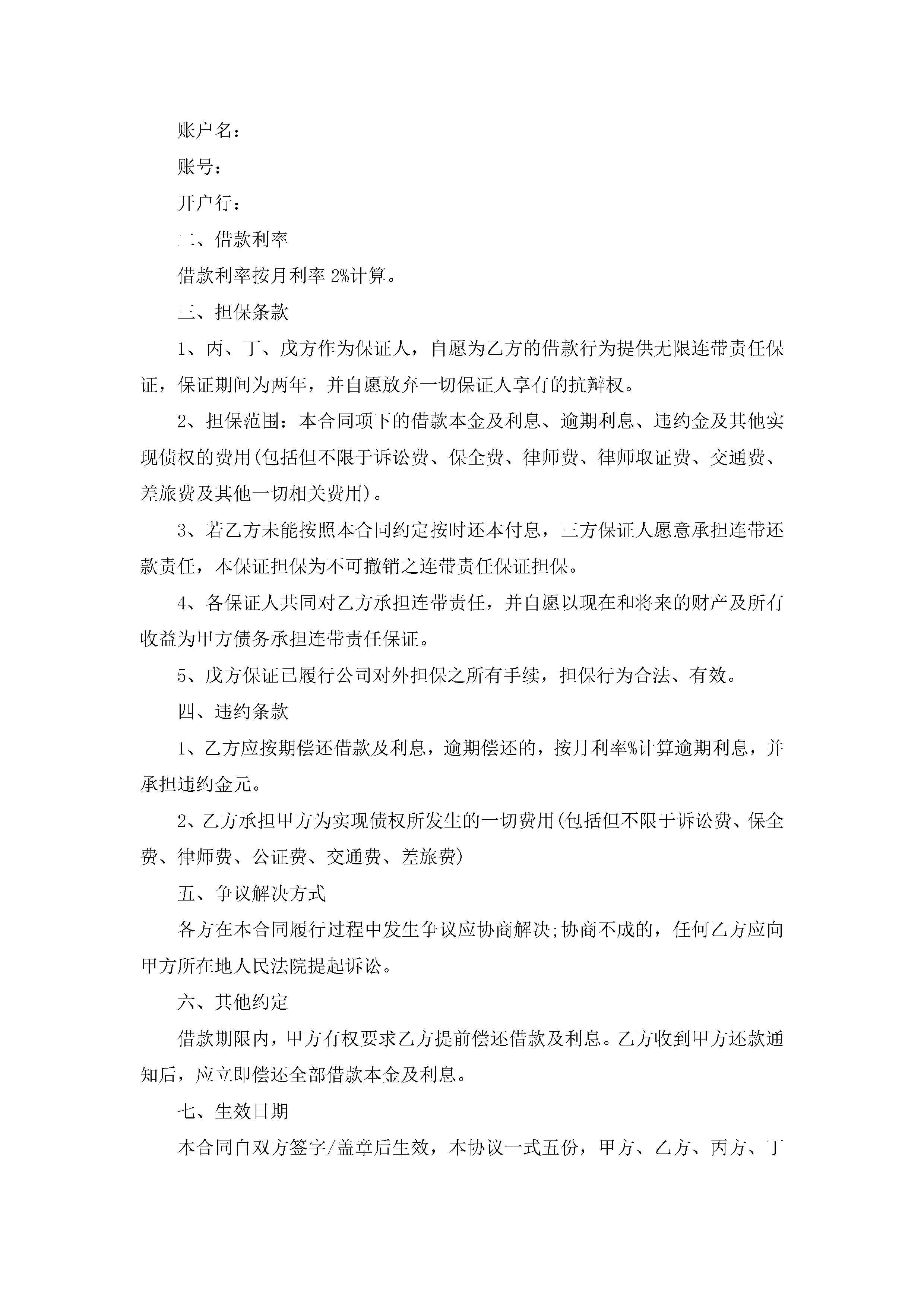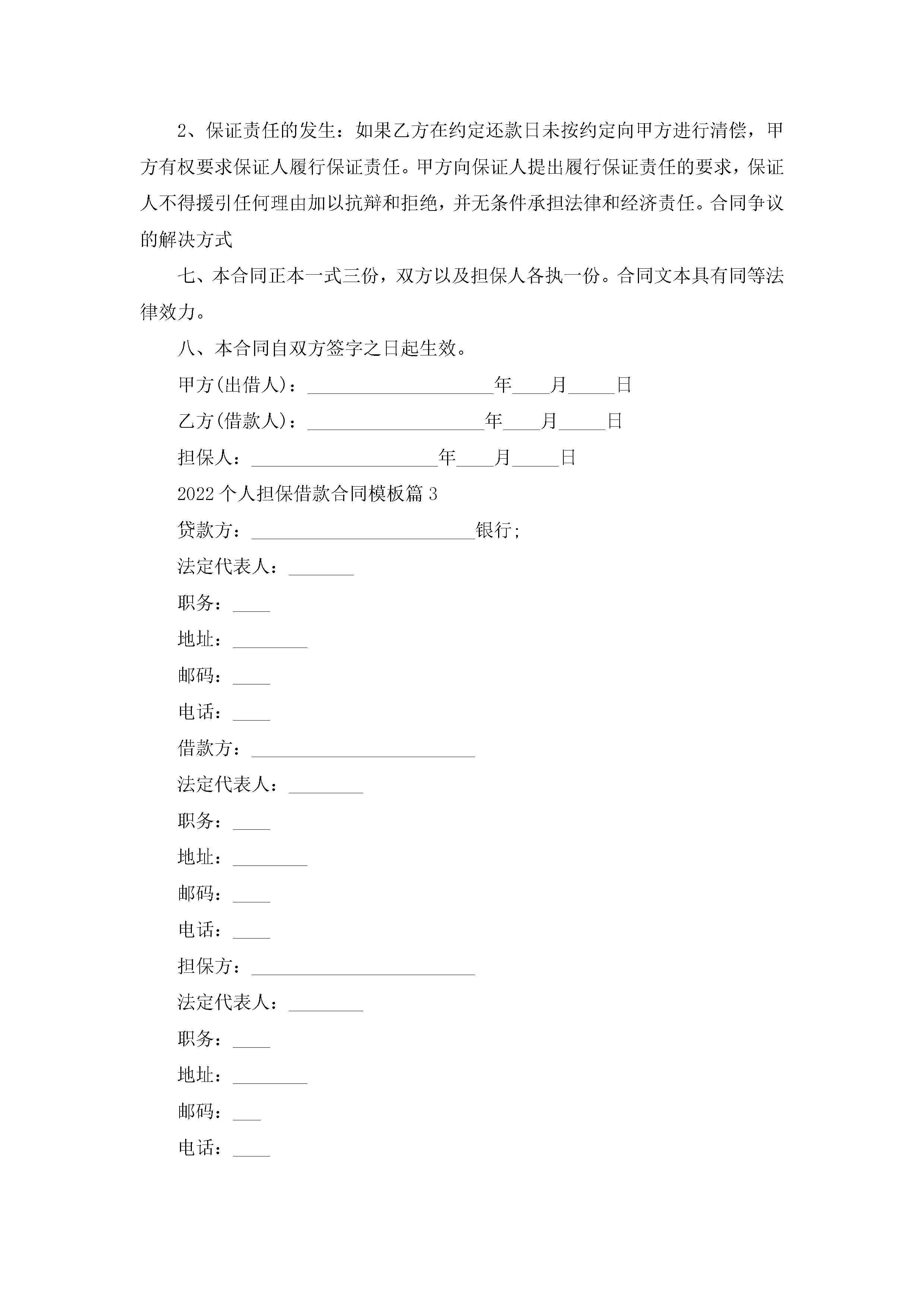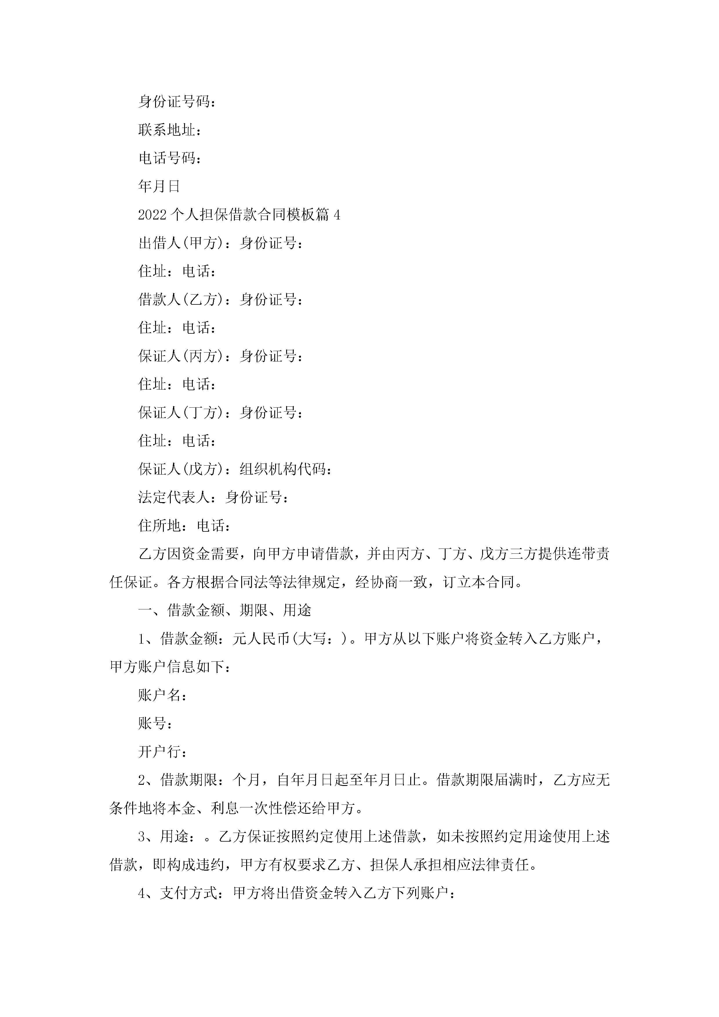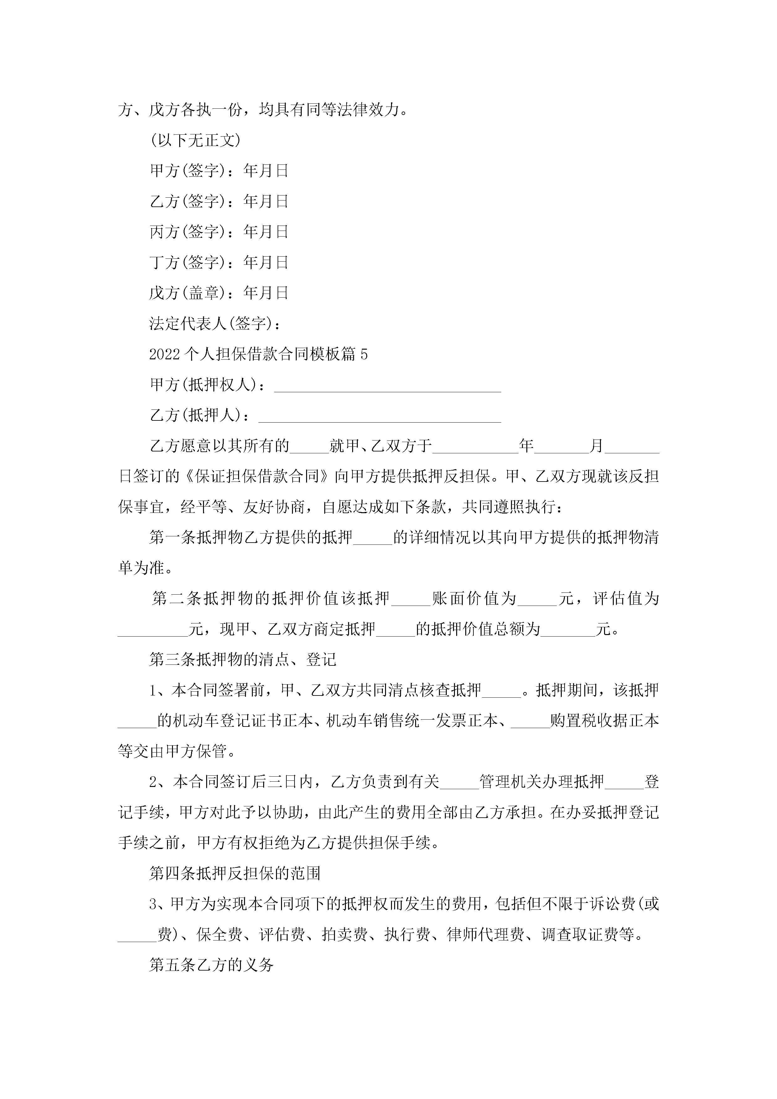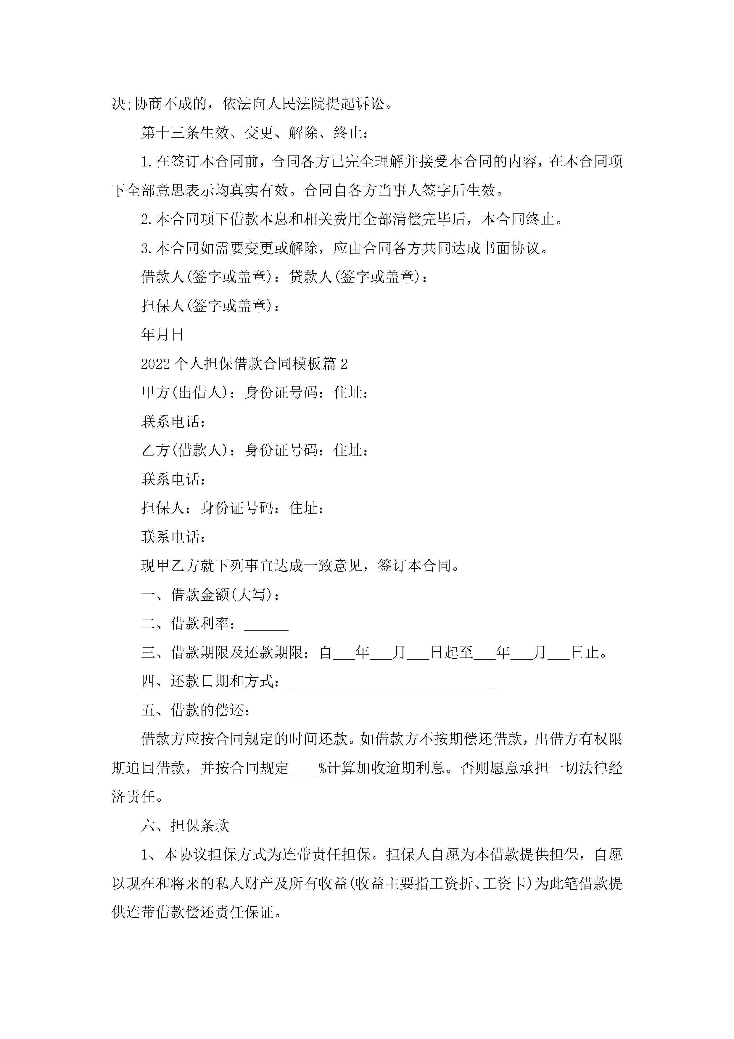 2022个人担保借款合同模板5篇(精选)jugei3月23日 01:41发布关注201 2022个人担保借款合同模板5篇(精选)此内容为付费资源,请付费后查看¥10.9 单篇文档限时特惠¥15个人会员开通企业会员开通立即下载无需登陆!可直接快捷下载单个模板付费资源© 版权声明THE ENDWord模板# 实用文档# 实用模板# 合同模板# 借款合同 如有问题,可点击最底部“联系我们”联系客服 分享QQ空间微博QQ好友海报分享复制链接收藏