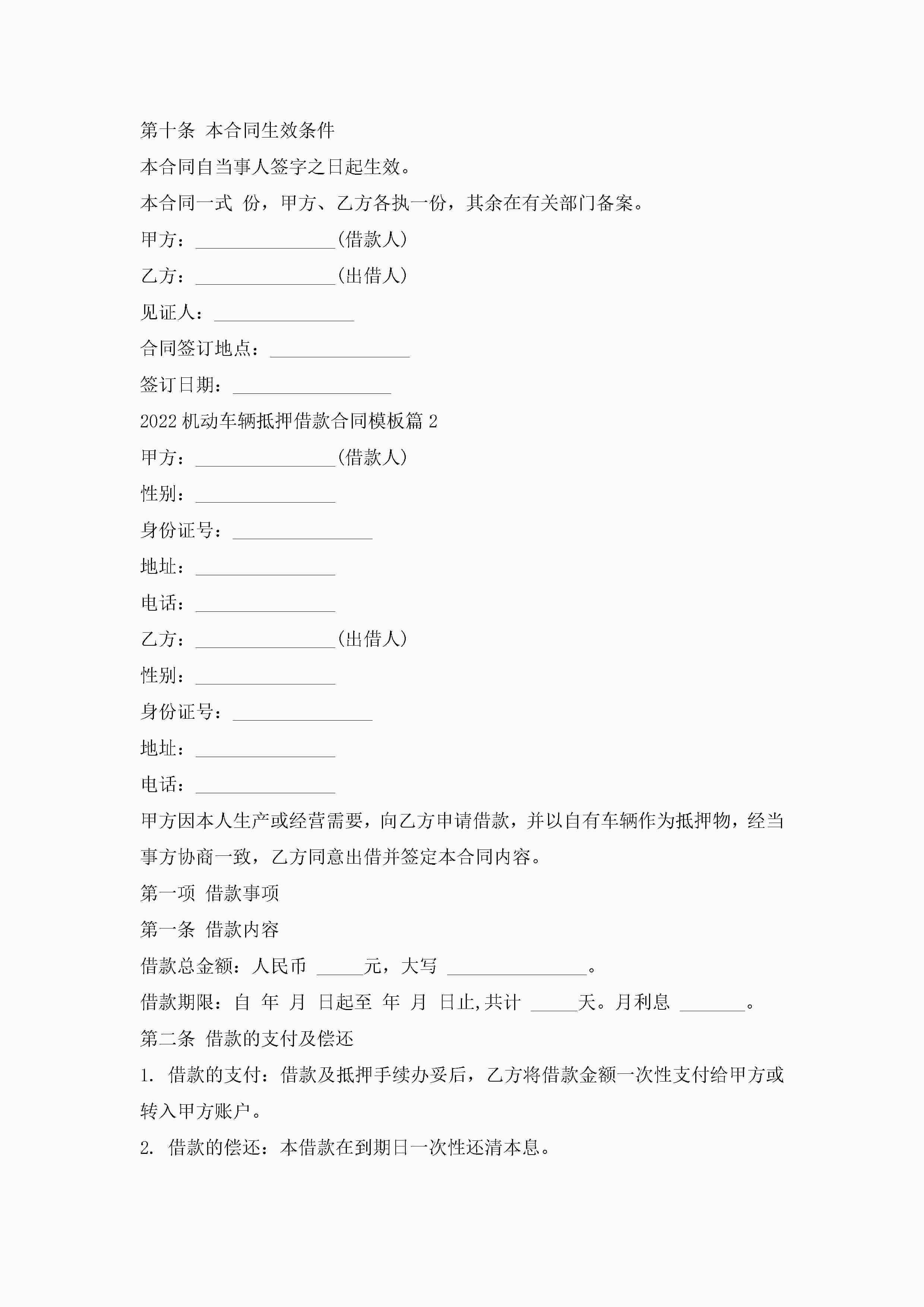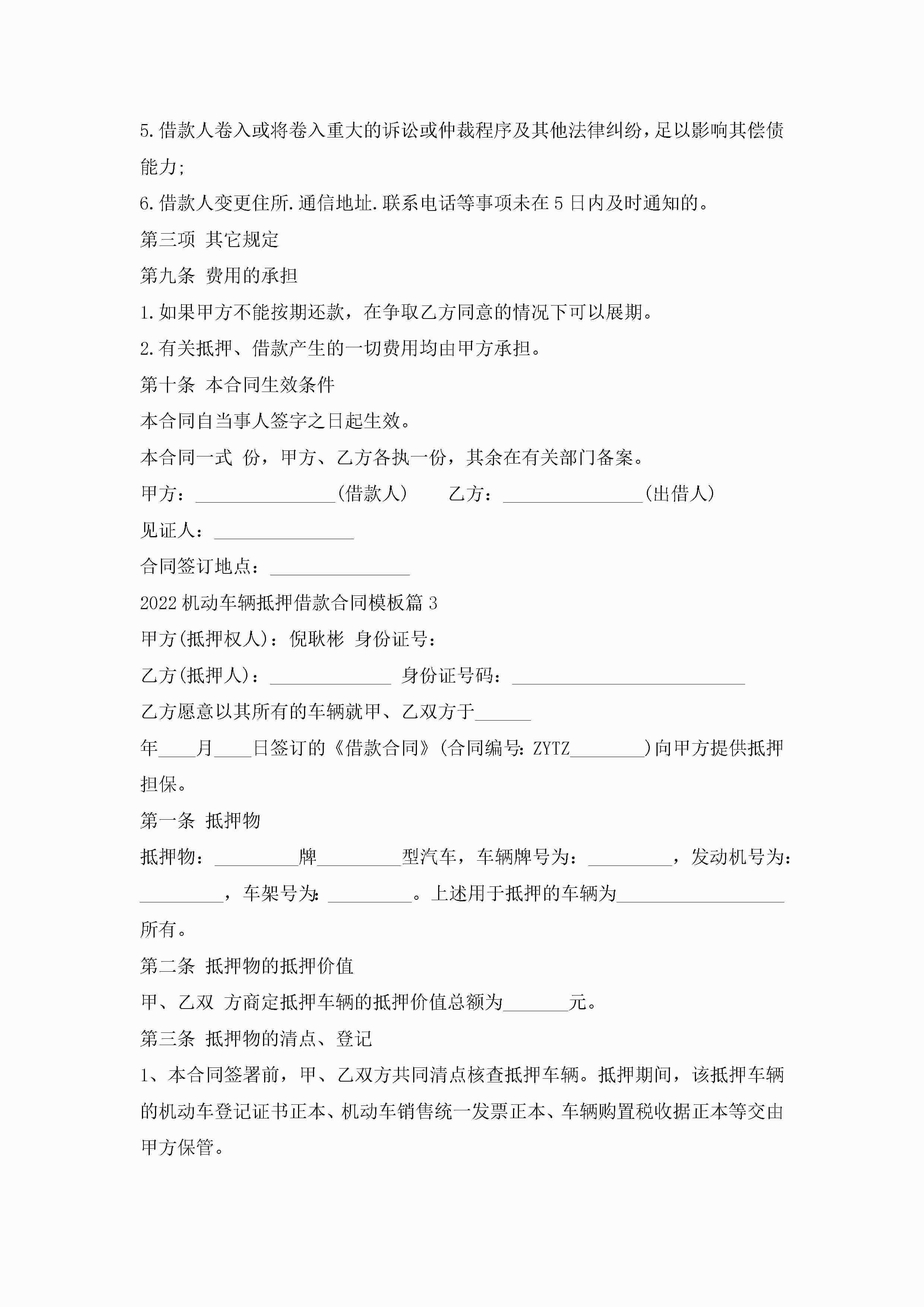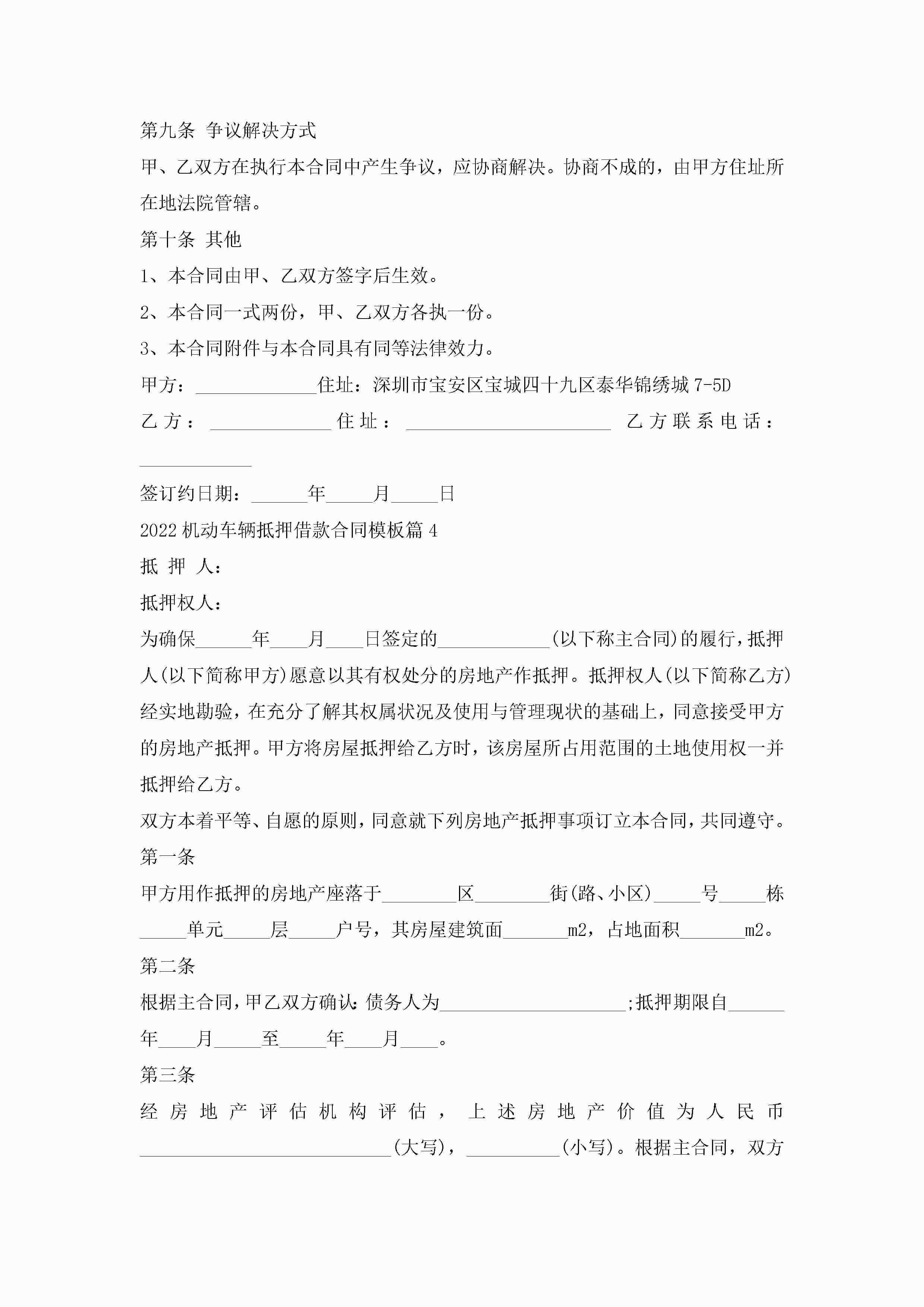 2022机动车辆抵押借款合同模板5篇jugei3月23日 01:41发布关注209 2022机动车辆抵押借款合同模板5篇此内容为付费资源,请付费后查看¥10.9 单篇文档限时特惠¥15个人会员开通企业会员开通立即下载无需登陆!可直接快捷下载单个模板付费资源© 版权声明THE ENDWord模板# 实用文档# 实用模板# 合同模板# 借款合同 如有问题,可点击最底部“联系我们”联系客服 分享QQ空间微博QQ好友海报分享复制链接收藏