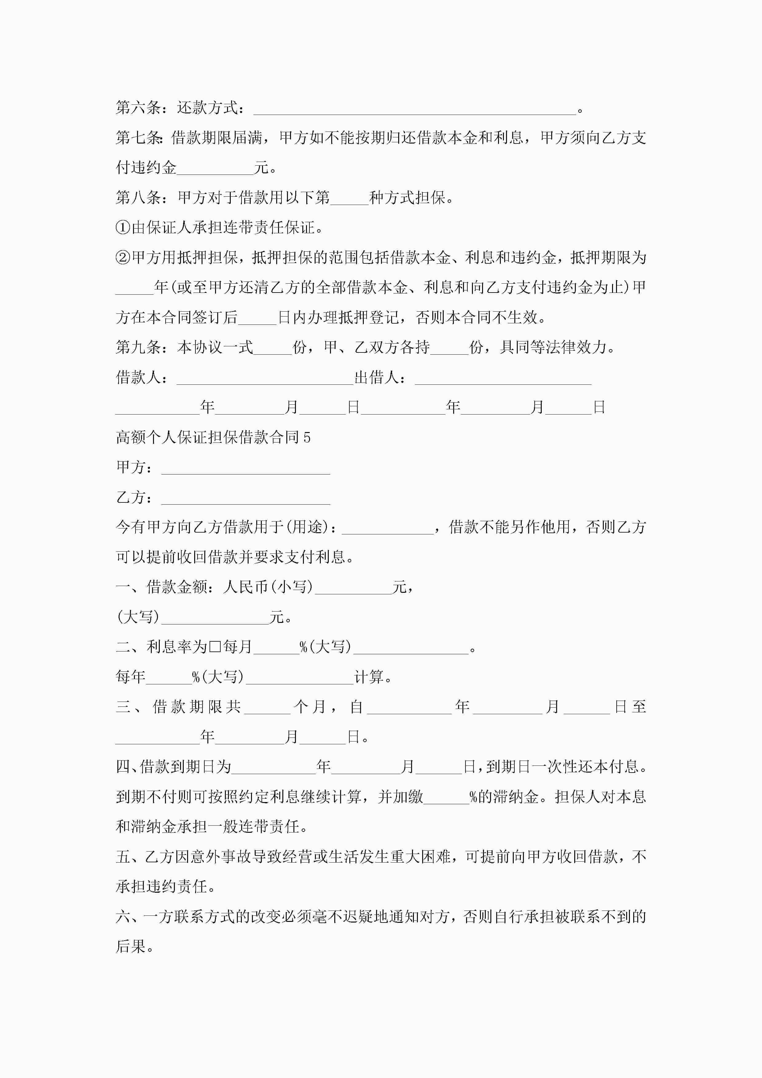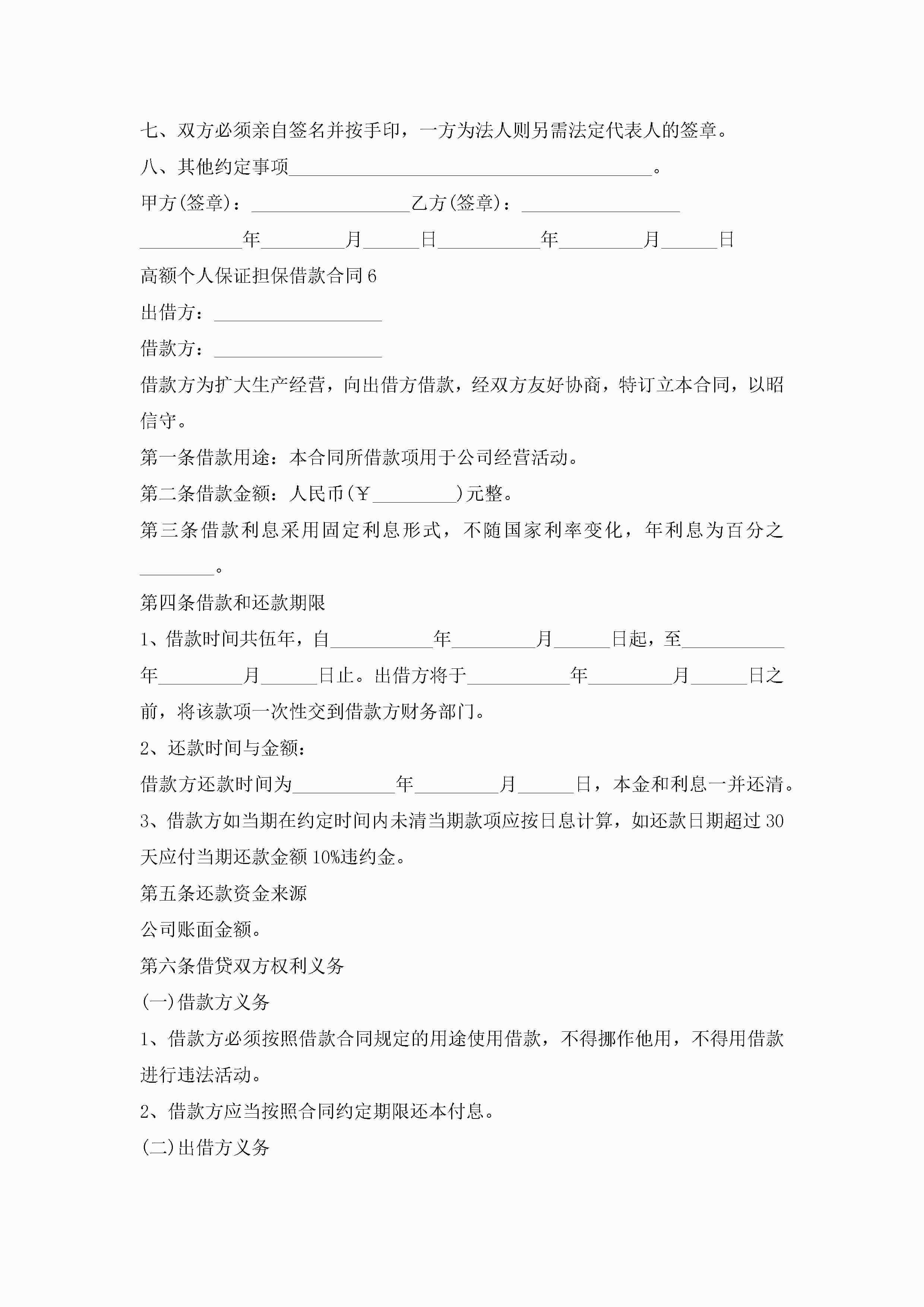 最高额个人保证担保借款合同6篇jugei3月23日 01:41发布关注257 最高额个人保证担保借款合同6篇此内容为付费资源,请付费后查看¥10.9 单篇文档限时特惠¥15个人会员开通企业会员开通立即下载无需登陆!可直接快捷下载单个模板付费资源© 版权声明THE ENDWord模板# 实用文档# 实用模板# 合同模板# 借款合同 如有问题,可点击最底部“联系我们”联系客服 分享QQ空间微博QQ好友海报分享复制链接收藏