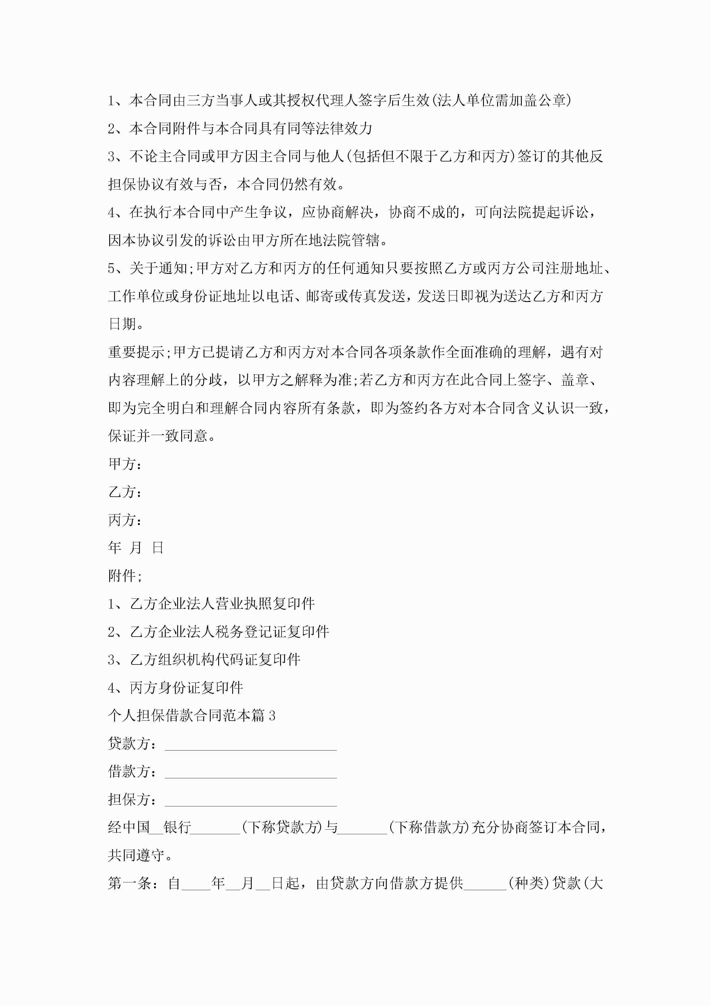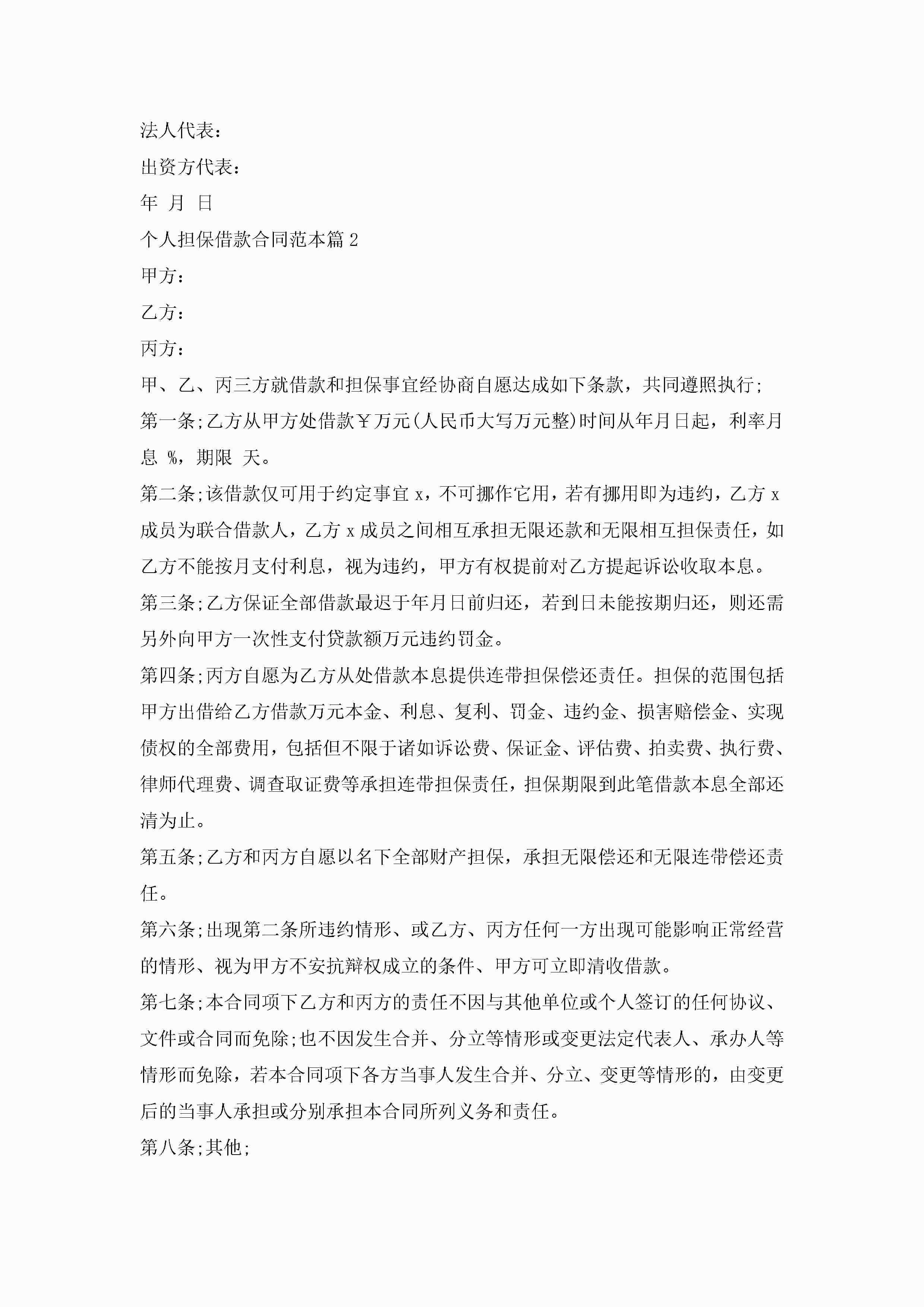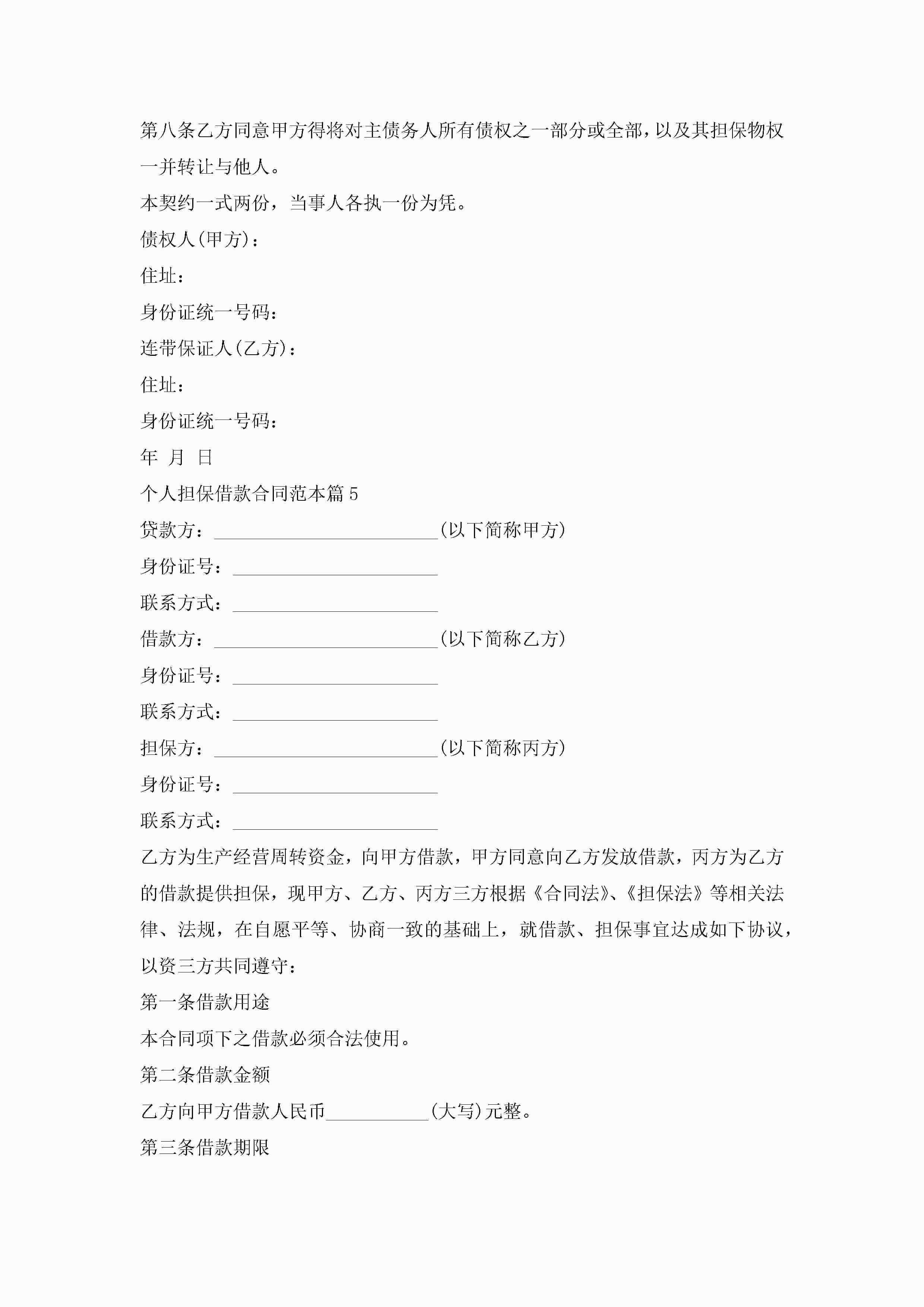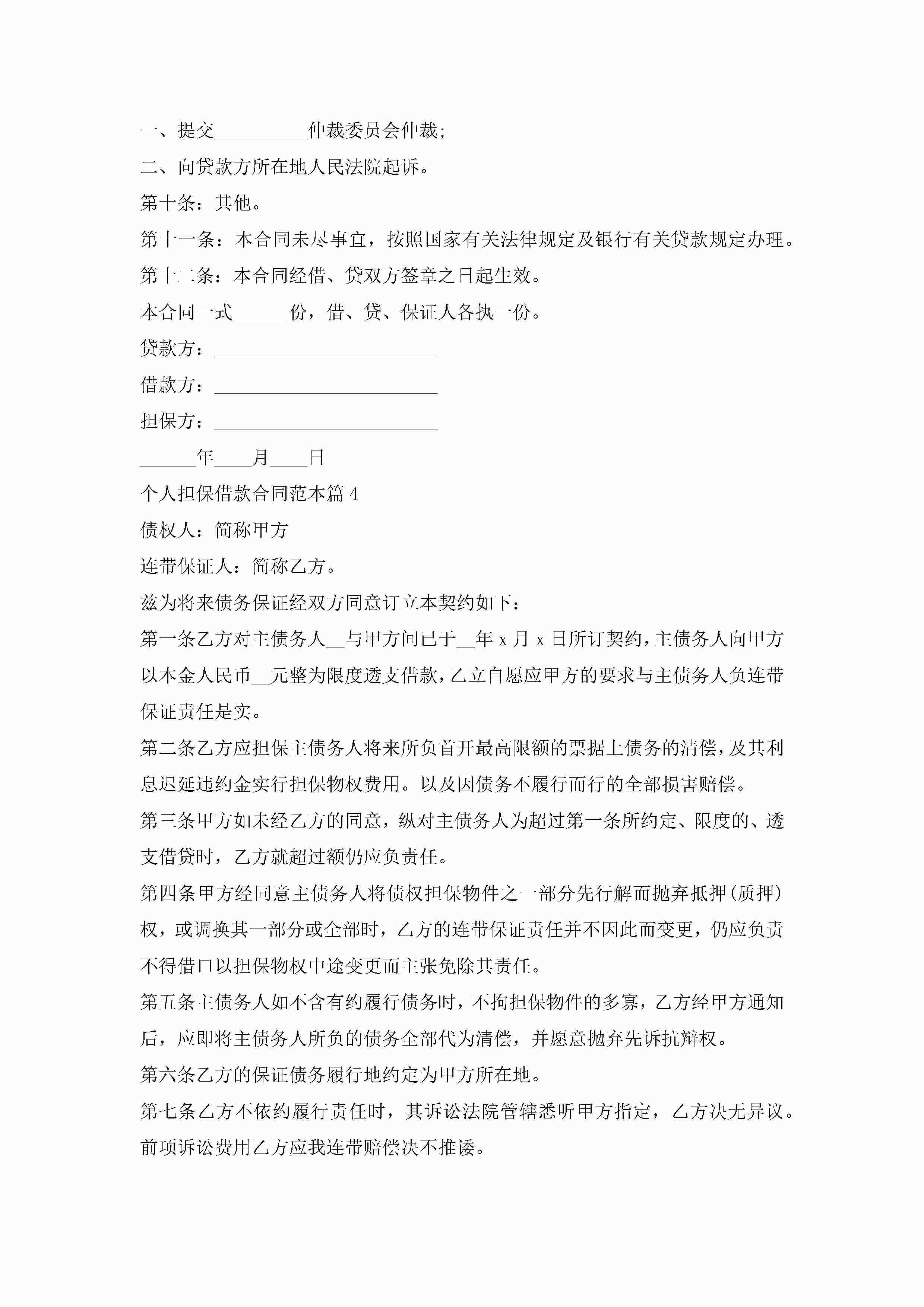 个人担保借款合同范本5篇jugei3月23日 01:41发布关注193 个人担保借款合同范本5篇此内容为付费资源,请付费后查看¥10.9 单篇文档限时特惠¥15个人会员开通企业会员开通立即下载无需登陆!可直接快捷下载单个模板付费资源© 版权声明THE ENDWord模板# 实用文档# 实用模板# 合同模板# 借款合同 如有问题,可点击最底部“联系我们”联系客服 分享QQ空间微博QQ好友海报分享复制链接收藏