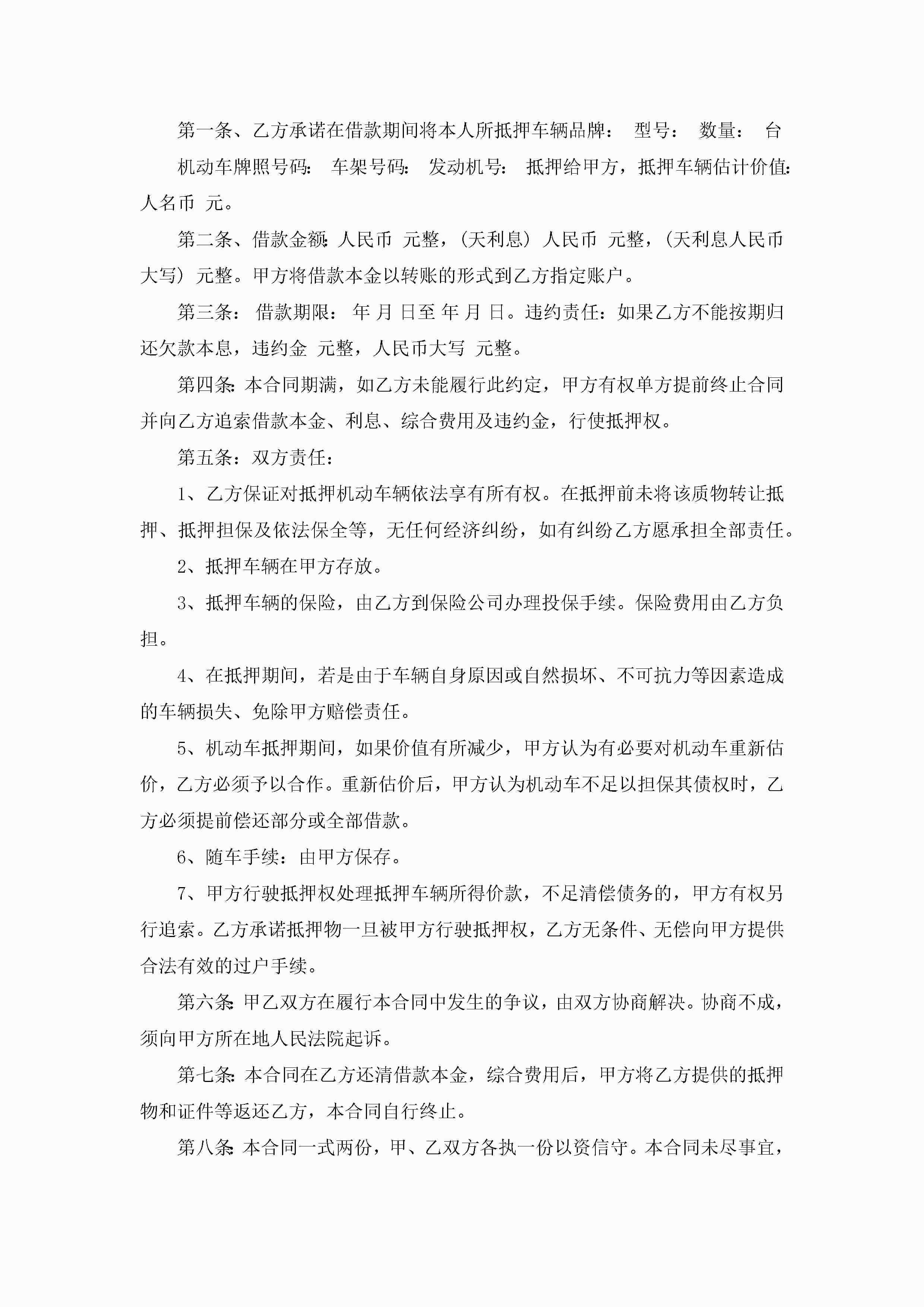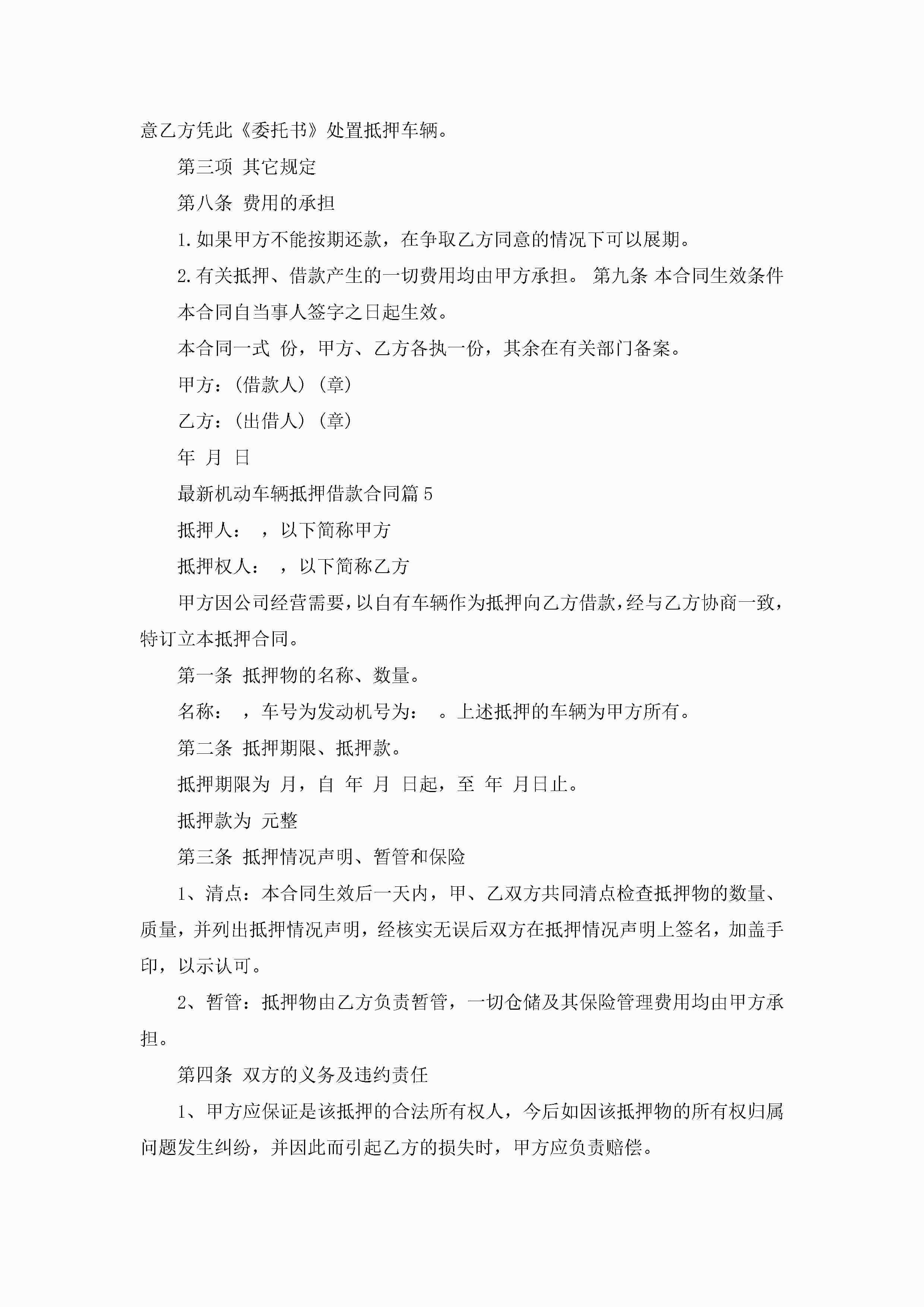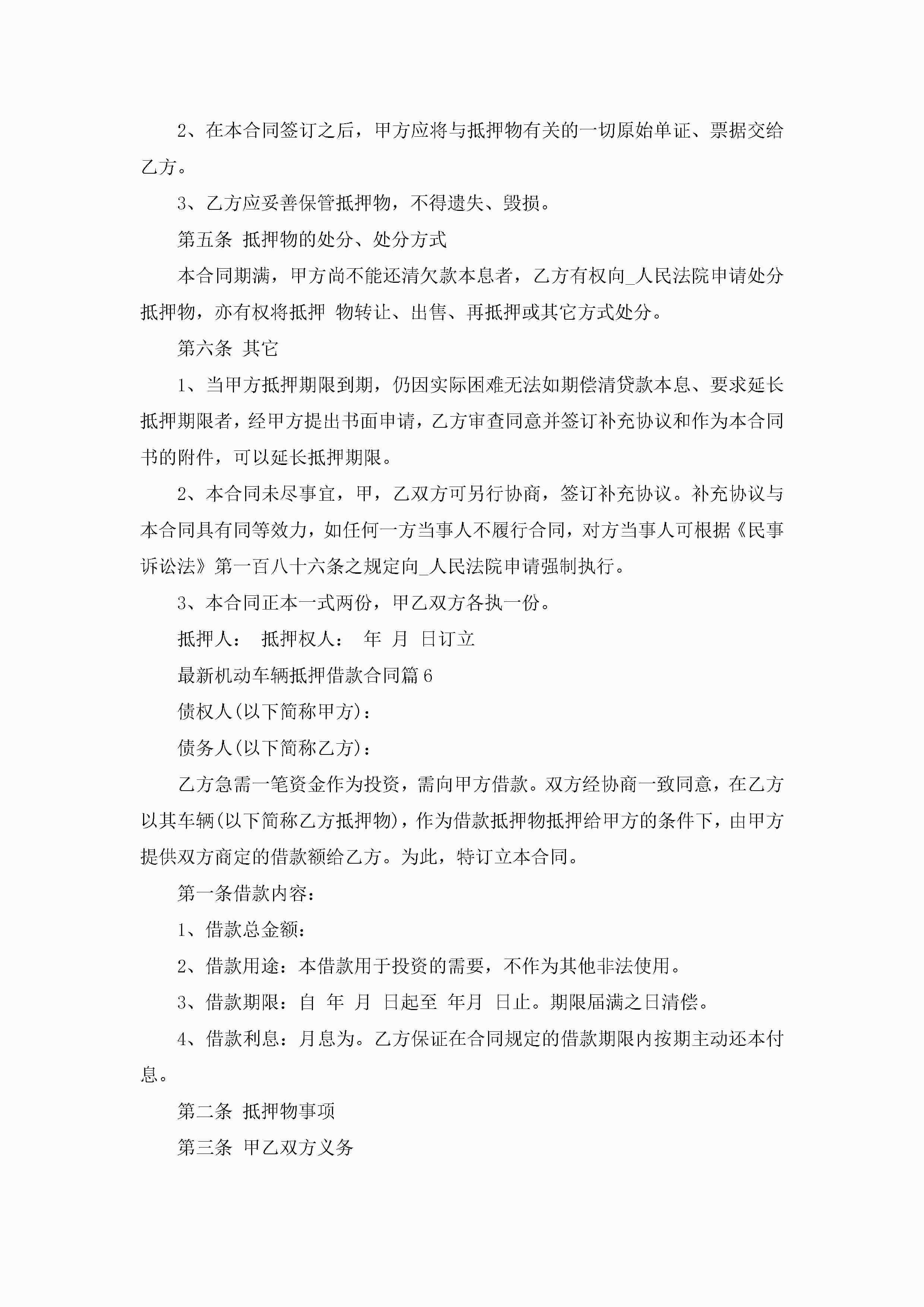 最新机动车辆抵押借款合同7篇(实用)jugei3月23日 01:41发布关注200 最新机动车辆抵押借款合同7篇(实用)此内容为付费资源,请付费后查看¥10.9 单篇文档限时特惠¥15个人会员开通企业会员开通立即下载无需登陆!可直接快捷下载单个模板付费资源© 版权声明THE ENDWord模板# 实用文档# 实用模板# 合同模板# 借款合同 如有问题,可点击最底部“联系我们”联系客服 分享QQ空间微博QQ好友海报分享复制链接收藏