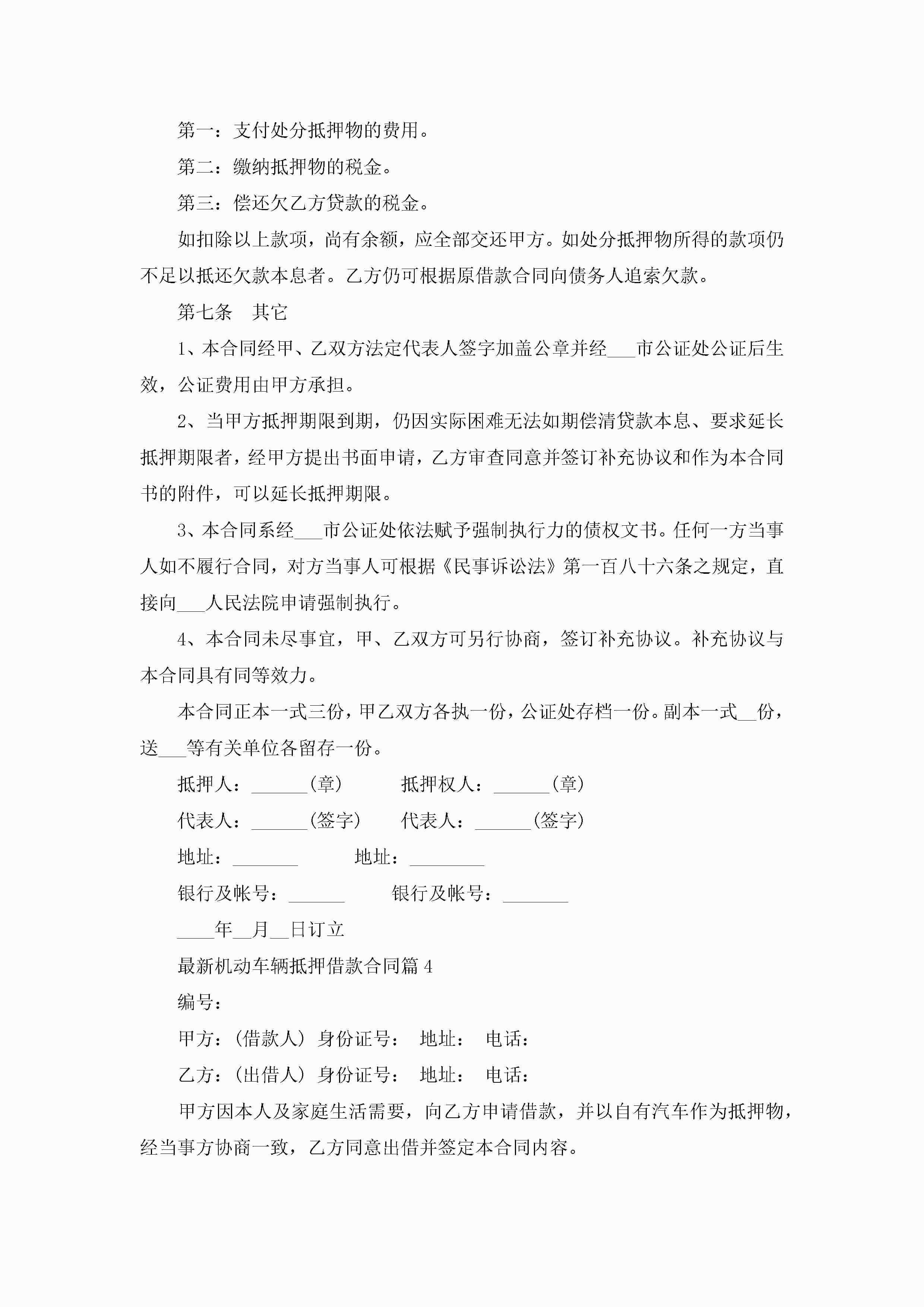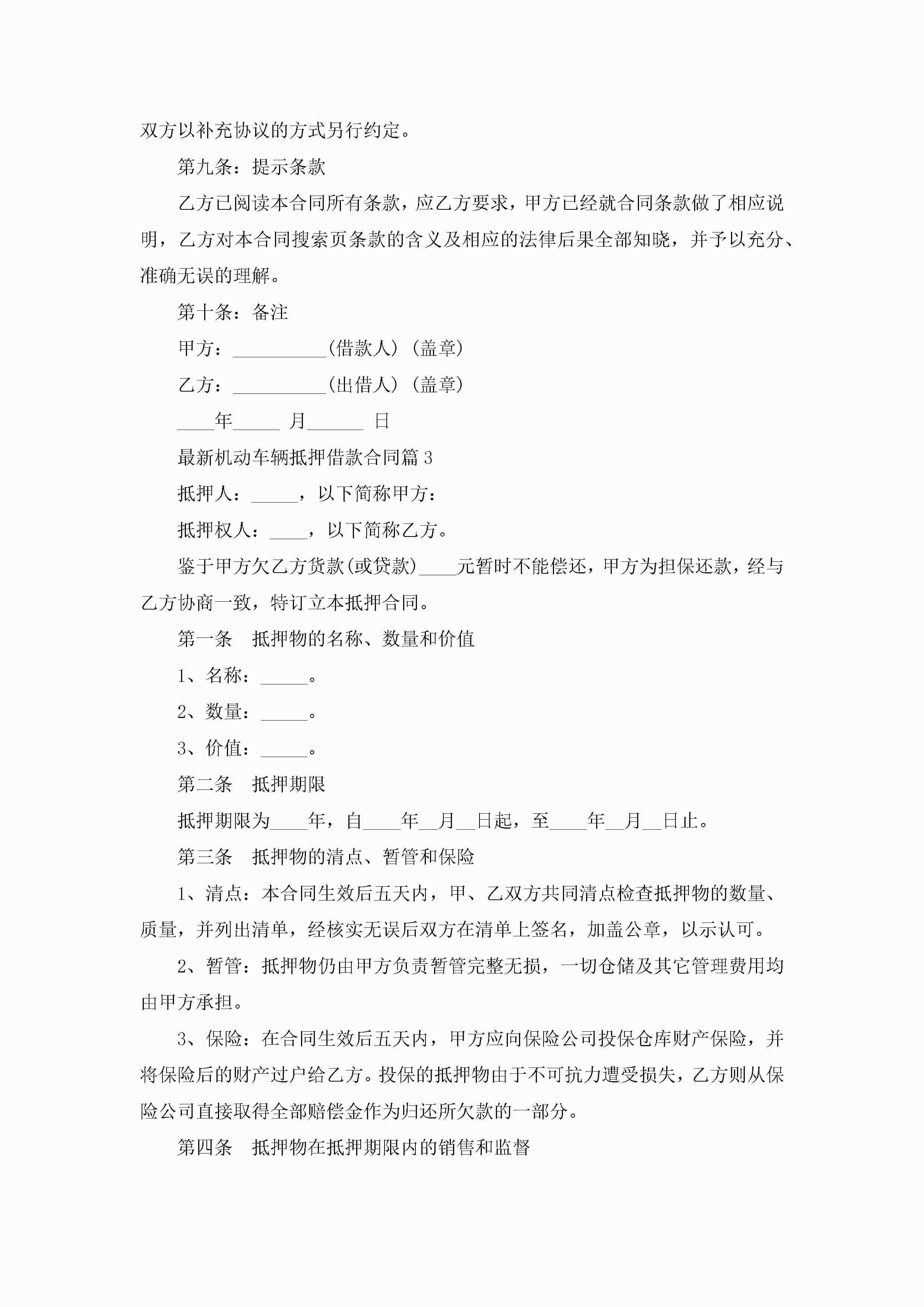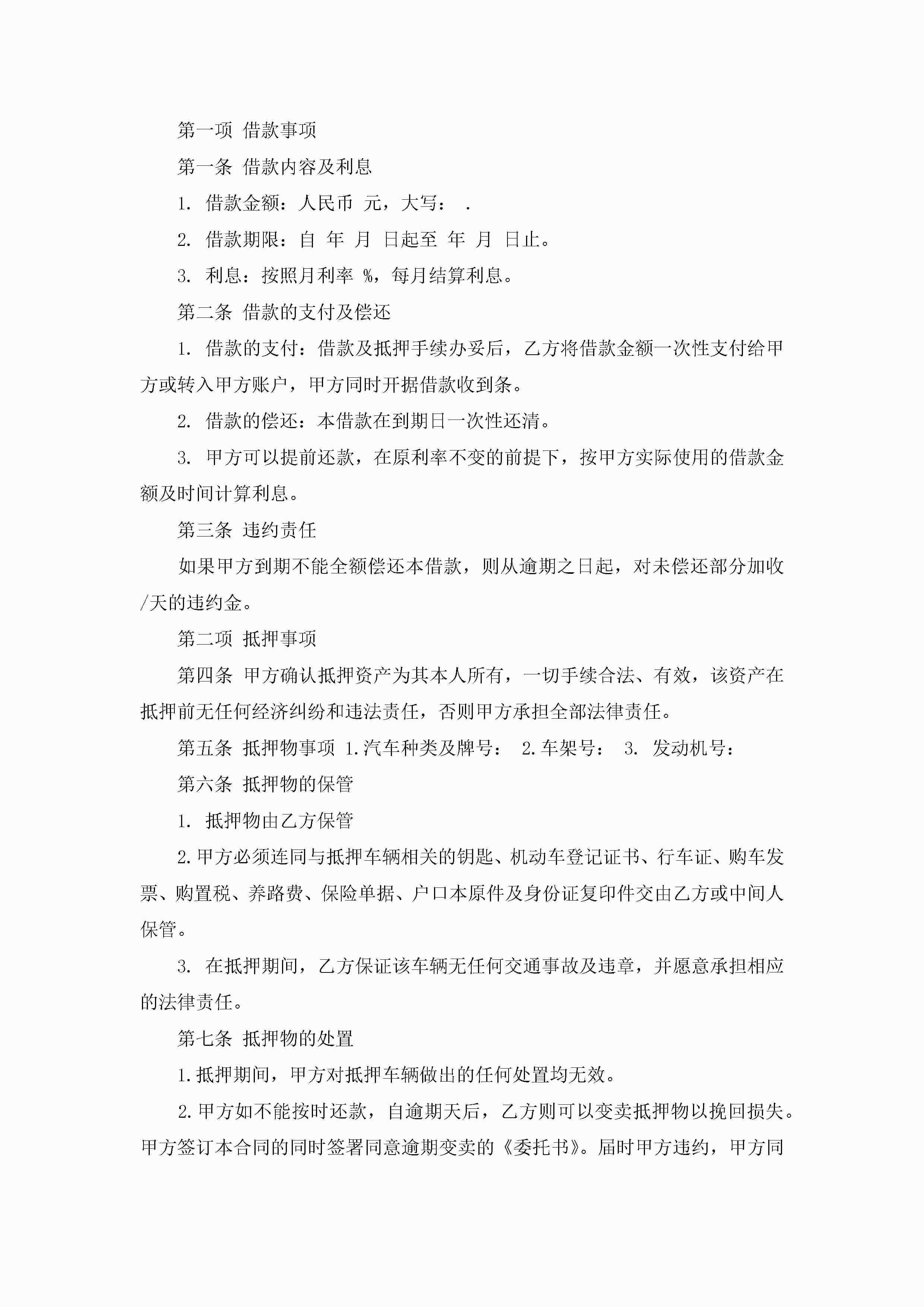 最新机动车辆抵押借款合同7篇(实用)jugei3月23日 01:41发布关注200 最新机动车辆抵押借款合同7篇(实用)此内容为付费资源,请付费后查看¥10.9 单篇文档限时特惠¥15个人会员开通企业会员开通立即下载无需登陆!可直接快捷下载单个模板付费资源© 版权声明THE ENDWord模板# 实用文档# 实用模板# 合同模板# 借款合同 如有问题,可点击最底部“联系我们”联系客服 分享QQ空间微博QQ好友海报分享复制链接收藏