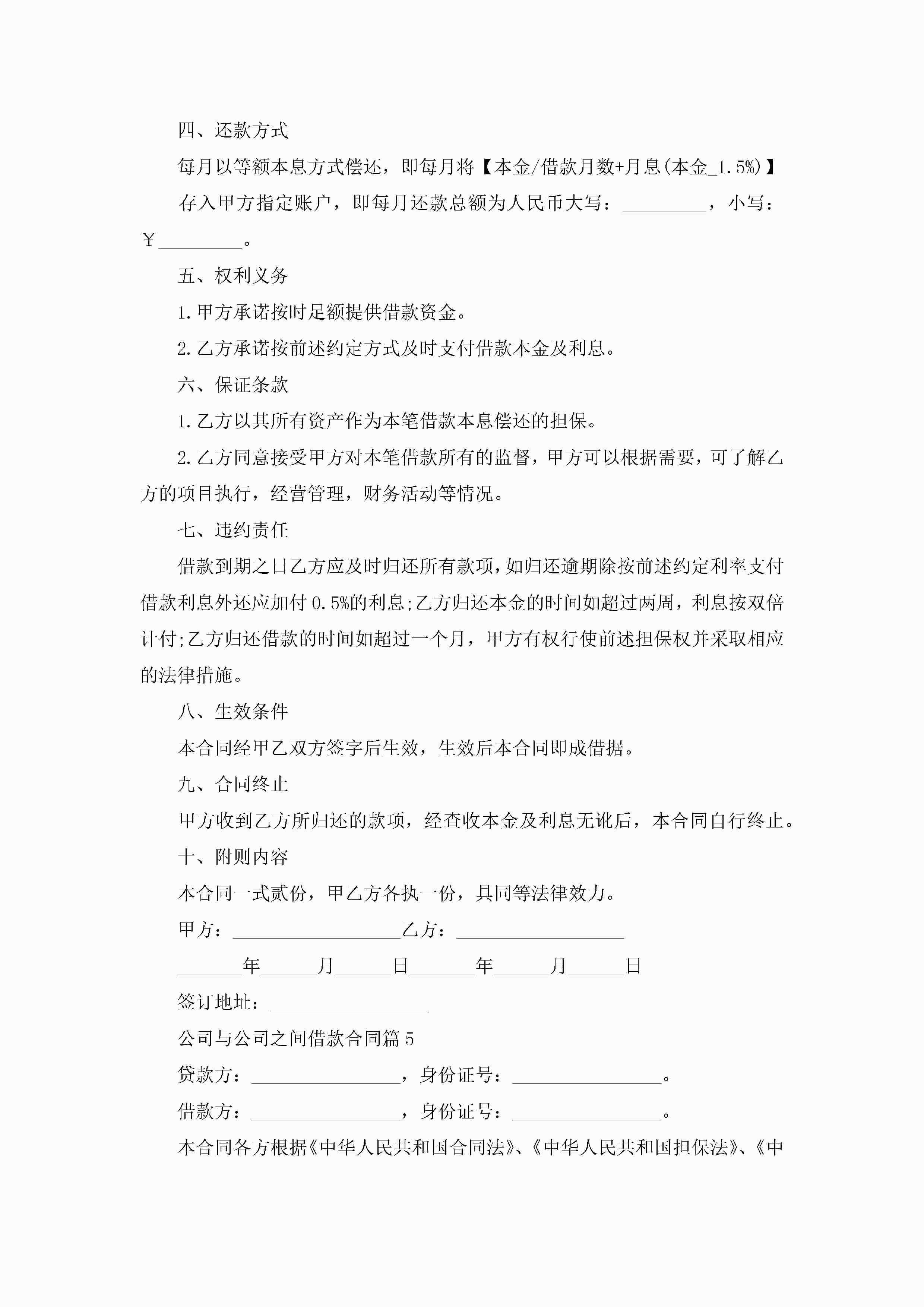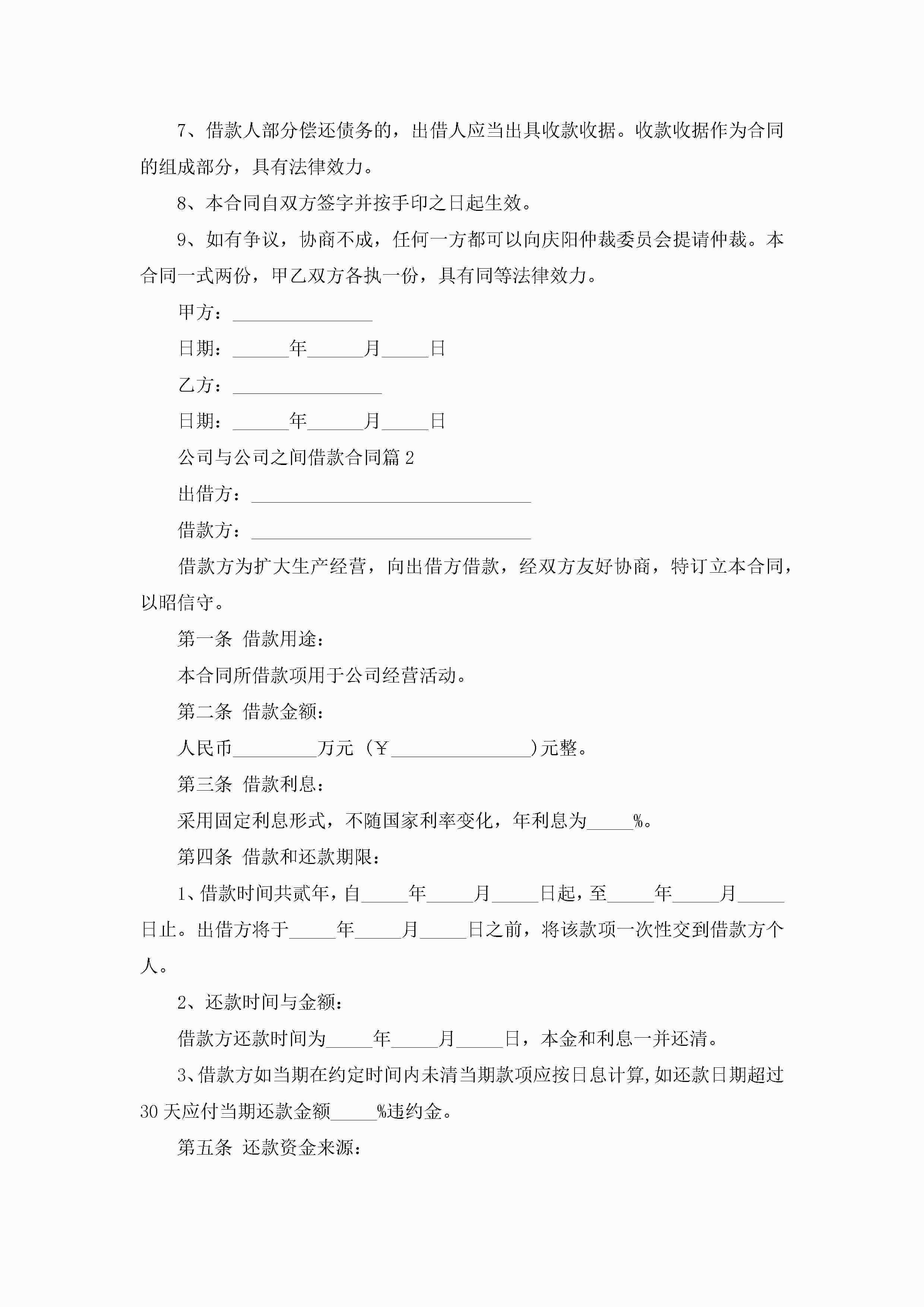 公司与公司之间借款合同9篇jugei3月23日 01:41发布关注199 公司与公司之间借款合同9篇此内容为付费资源,请付费后查看¥10.9 单篇文档限时特惠¥15个人会员开通企业会员开通立即下载无需登陆!可直接快捷下载单个模板付费资源© 版权声明THE ENDWord模板# 实用文档# 实用模板# 合同模板# 借款合同 如有问题,可点击最底部“联系我们”联系客服 分享QQ空间微博QQ好友海报分享复制链接收藏