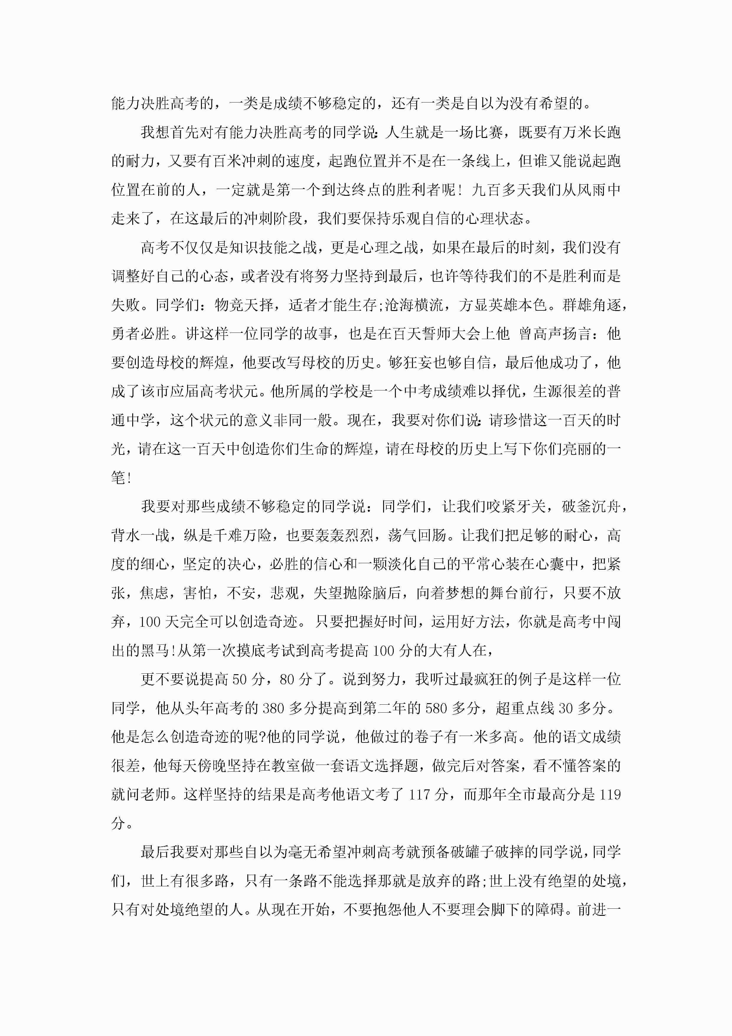 高考百日誓师励志演讲词(十篇)jugei3月23日 01:41发布关注203 高考百日誓师励志演讲词(十篇)此内容为付费资源,请付费后查看¥10.9 单篇文档限时特惠¥15个人会员开通企业会员开通立即下载无需登陆!可直接快捷下载单个模板付费资源© 版权声明THE ENDWord模板# 实用文档# 演讲稿# 经典演讲稿# 高考百日誓师励志演讲词十篇 如有问题,可点击最底部“联系我们”联系客服 分享QQ空间微博QQ好友海报分享复制链接收藏