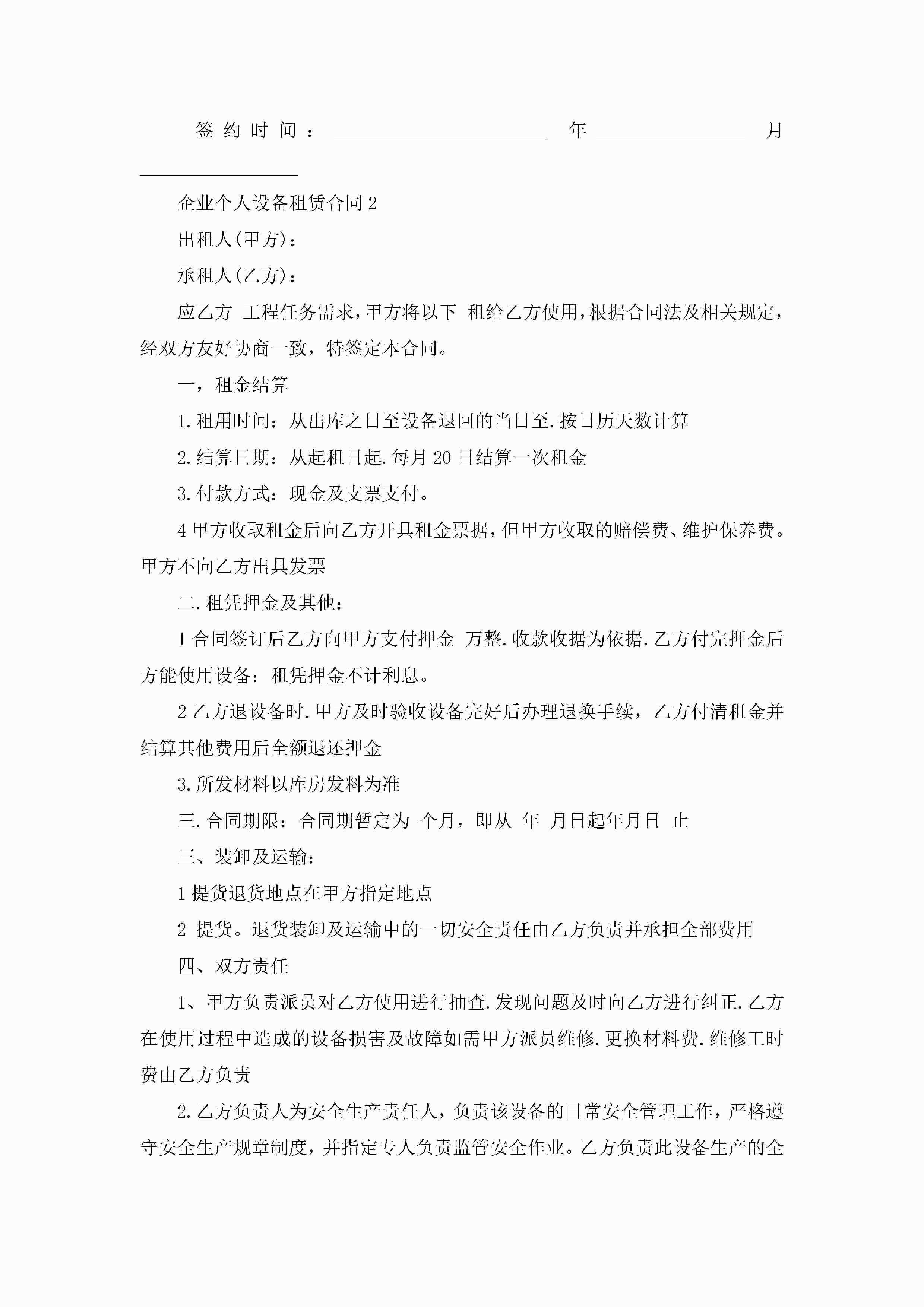 企业个人设备租赁合同5篇jugei3月23日 01:41发布关注216 企业个人设备租赁合同5篇此内容为付费资源,请付费后查看¥10.9 单篇文档限时特惠¥15个人会员开通企业会员开通立即下载无需登陆!可直接快捷下载单个模板付费资源© 版权声明THE ENDWord模板# 实用文档# 实用模板# 合同模板# 租赁合同 如有问题,可点击最底部“联系我们”联系客服 分享QQ空间微博QQ好友海报分享复制链接收藏