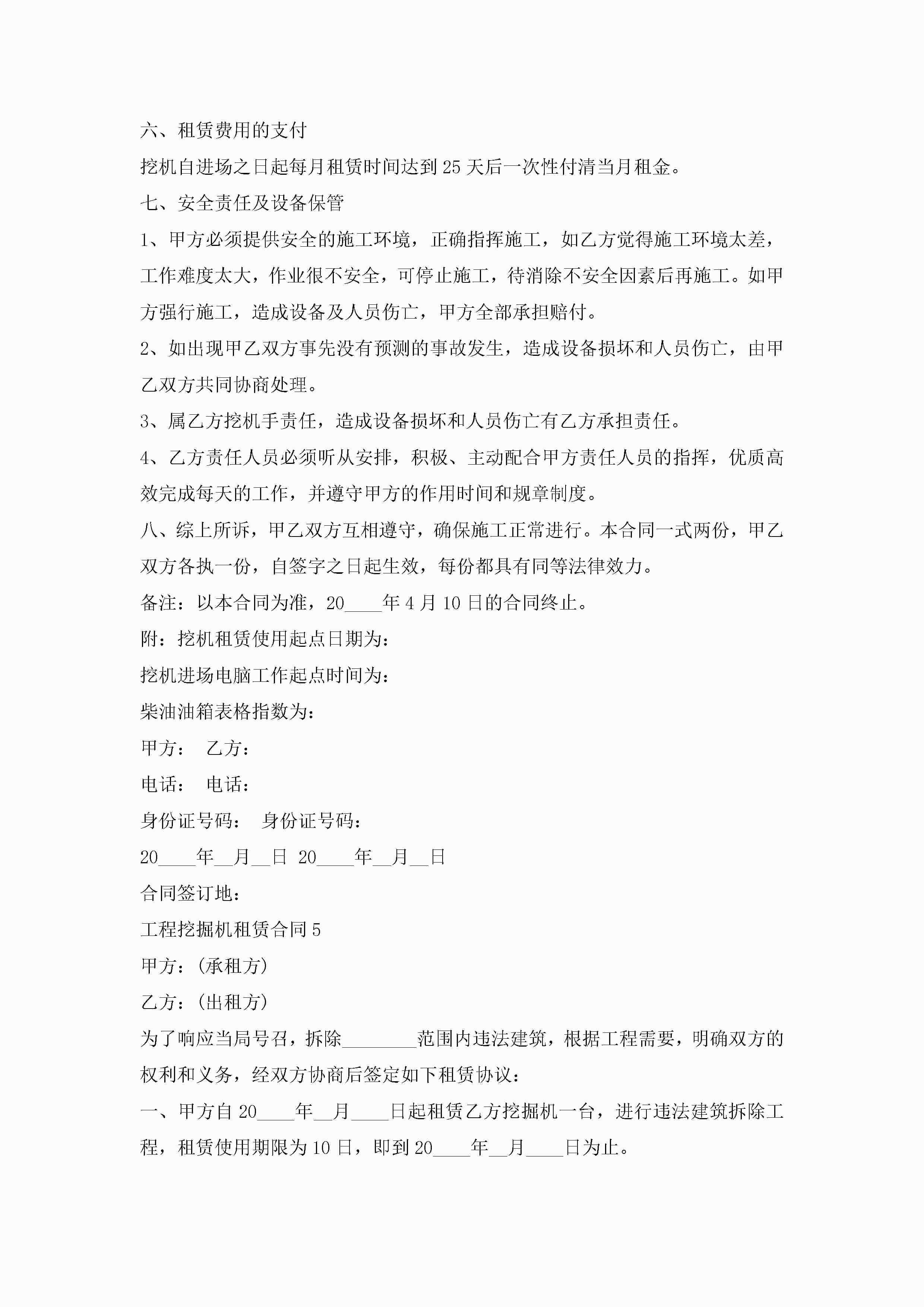 关于工程挖掘机租赁合同5篇jugei3月23日 01:41发布关注254 关于工程挖掘机租赁合同5篇此内容为付费资源,请付费后查看¥10.9 单篇文档限时特惠¥15个人会员开通企业会员开通立即下载无需登陆!可直接快捷下载单个模板付费资源© 版权声明THE ENDWord模板# 实用文档# 实用模板# 合同模板# 租赁合同 如有问题,可点击最底部“联系我们”联系客服 分享QQ空间微博QQ好友海报分享复制链接收藏