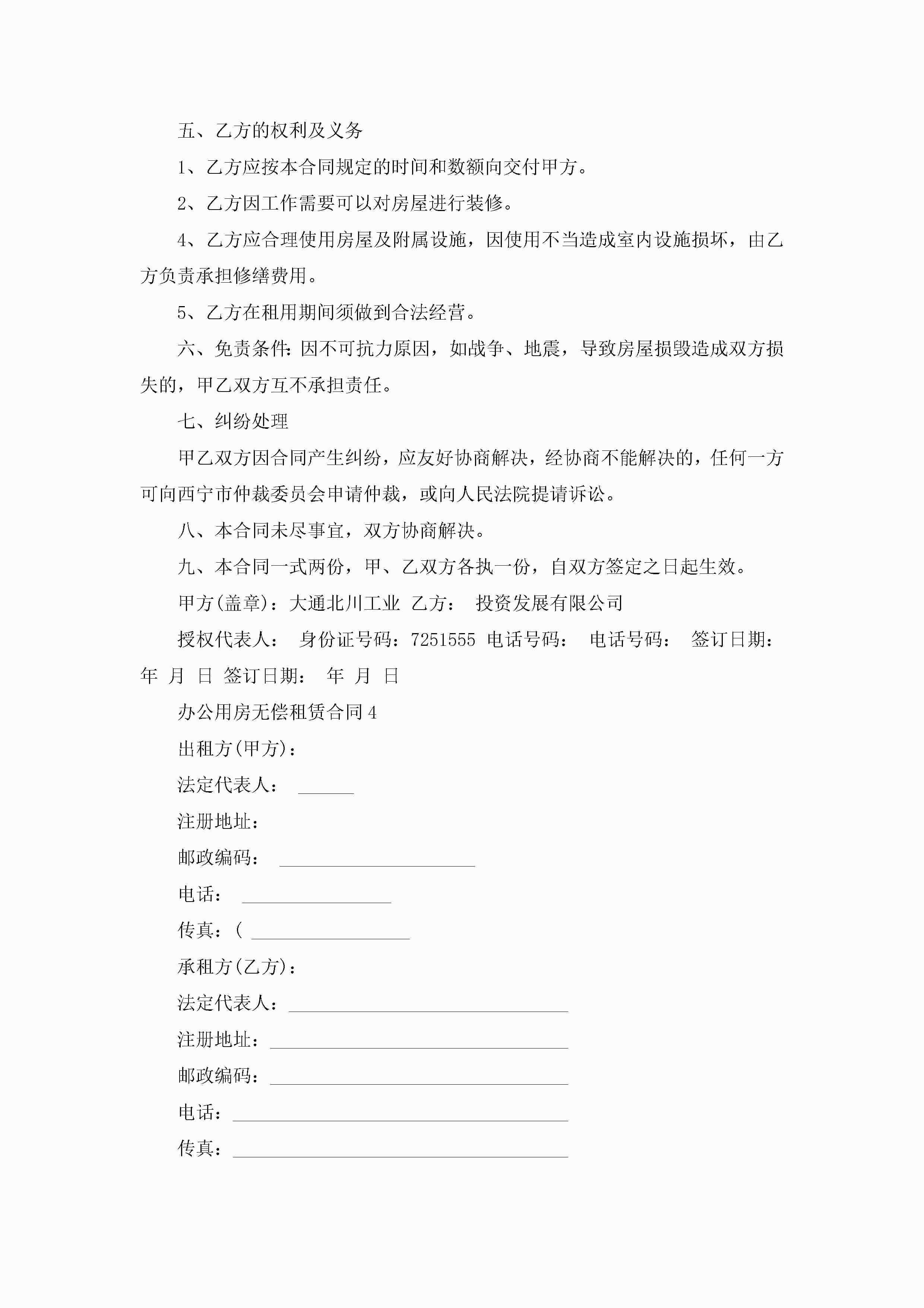 关于办公用房无偿租赁合同5篇jugei3月23日 01:41发布关注184 关于办公用房无偿租赁合同5篇此内容为付费资源,请付费后查看¥10.9 单篇文档限时特惠¥15个人会员开通企业会员开通立即下载无需登陆!可直接快捷下载单个模板付费资源© 版权声明THE ENDWord模板# 实用文档# 实用模板# 合同模板# 租赁合同 如有问题,可点击最底部“联系我们”联系客服 分享QQ空间微博QQ好友海报分享复制链接收藏