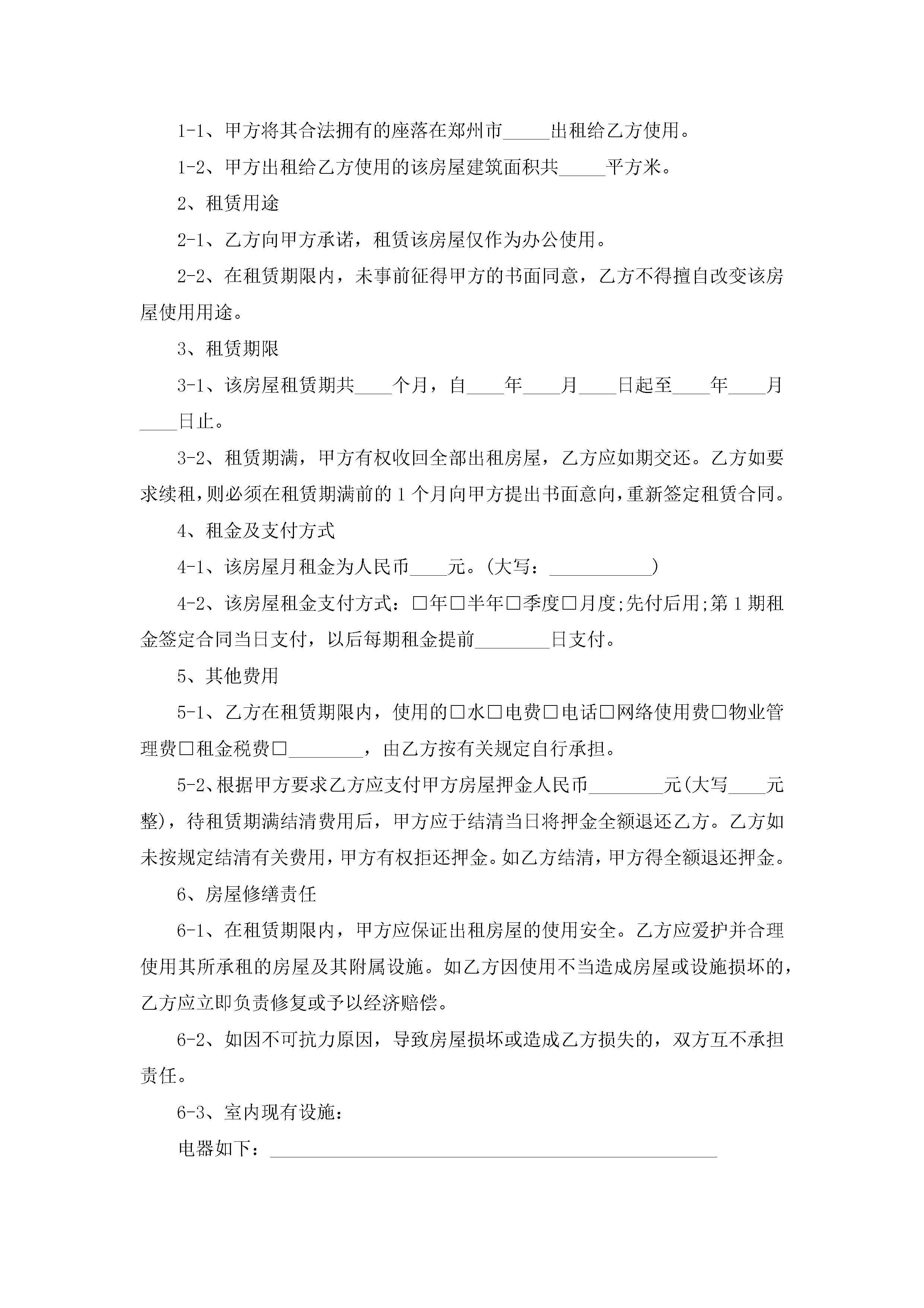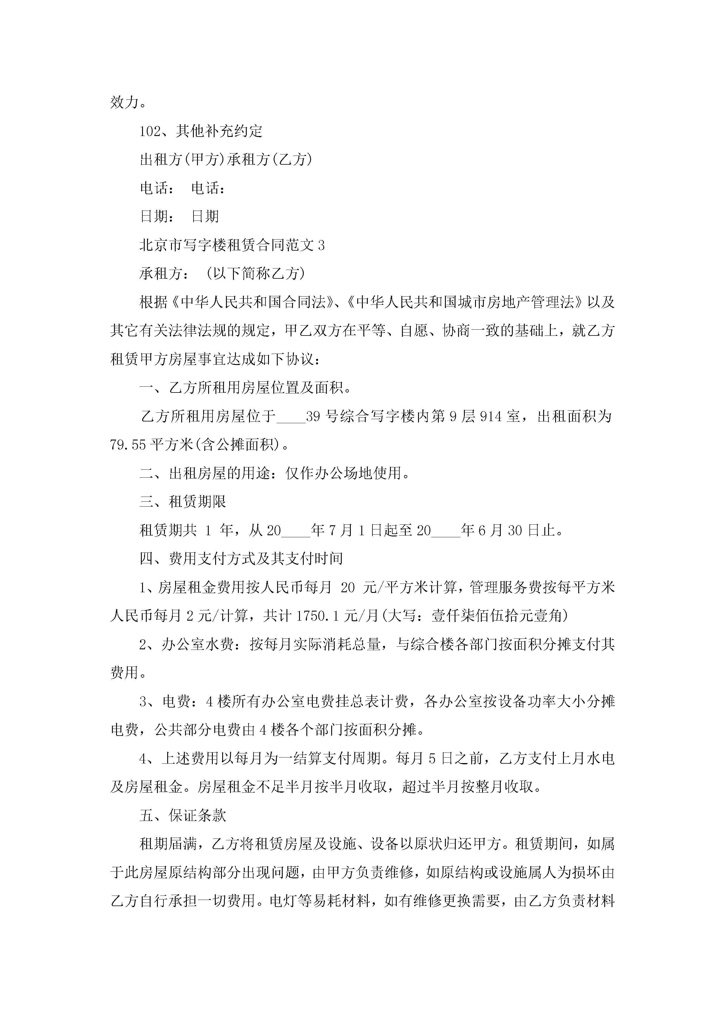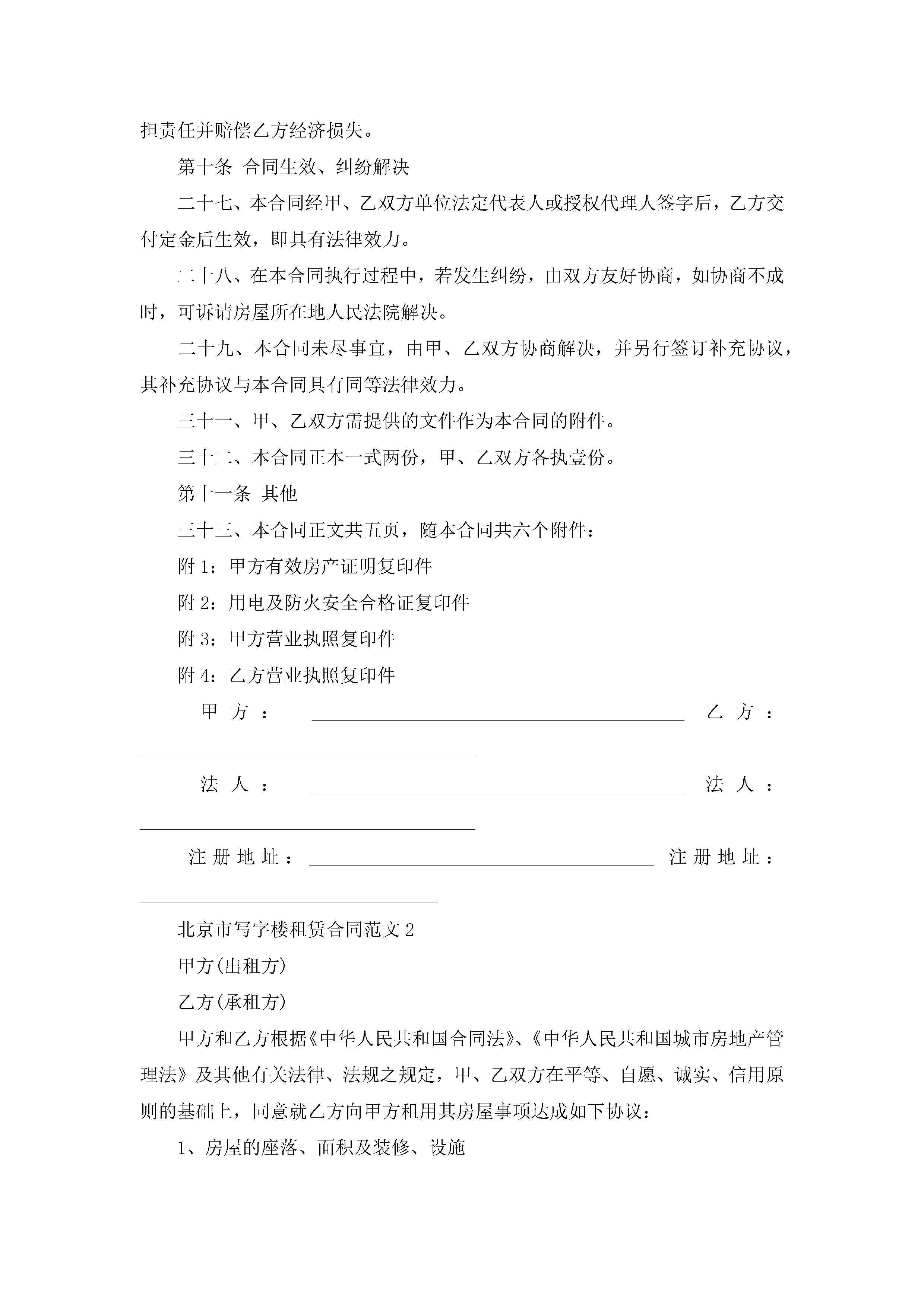 北京市写字楼租赁合同范文5篇jugei3月23日 01:41发布关注189 北京市写字楼租赁合同范文5篇此内容为付费资源,请付费后查看¥10.9 单篇文档限时特惠¥15个人会员开通企业会员开通立即下载无需登陆!可直接快捷下载单个模板付费资源© 版权声明THE ENDWord模板# 实用文档# 实用模板# 合同模板# 租赁合同 如有问题,可点击最底部“联系我们”联系客服 分享QQ空间微博QQ好友海报分享复制链接收藏