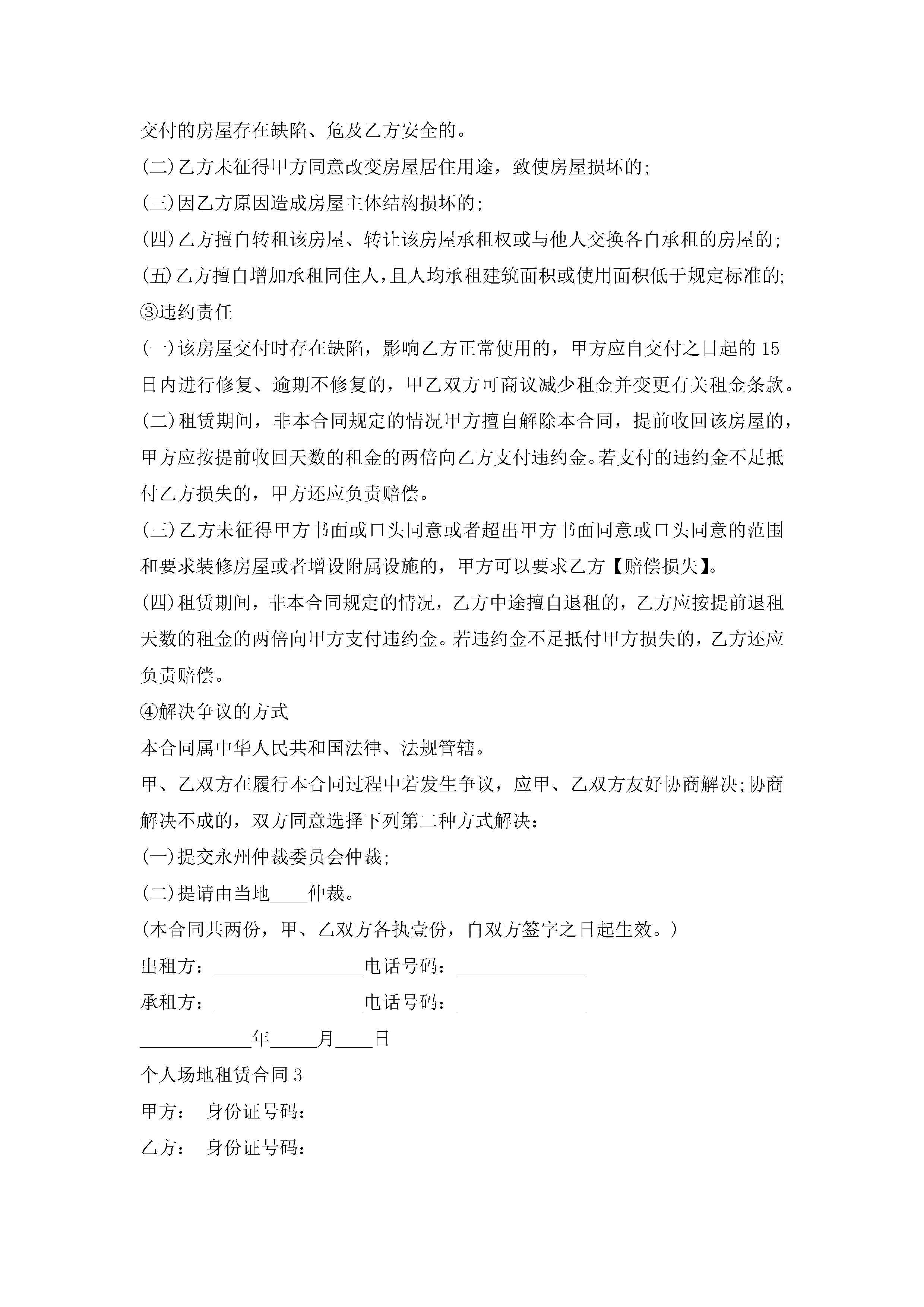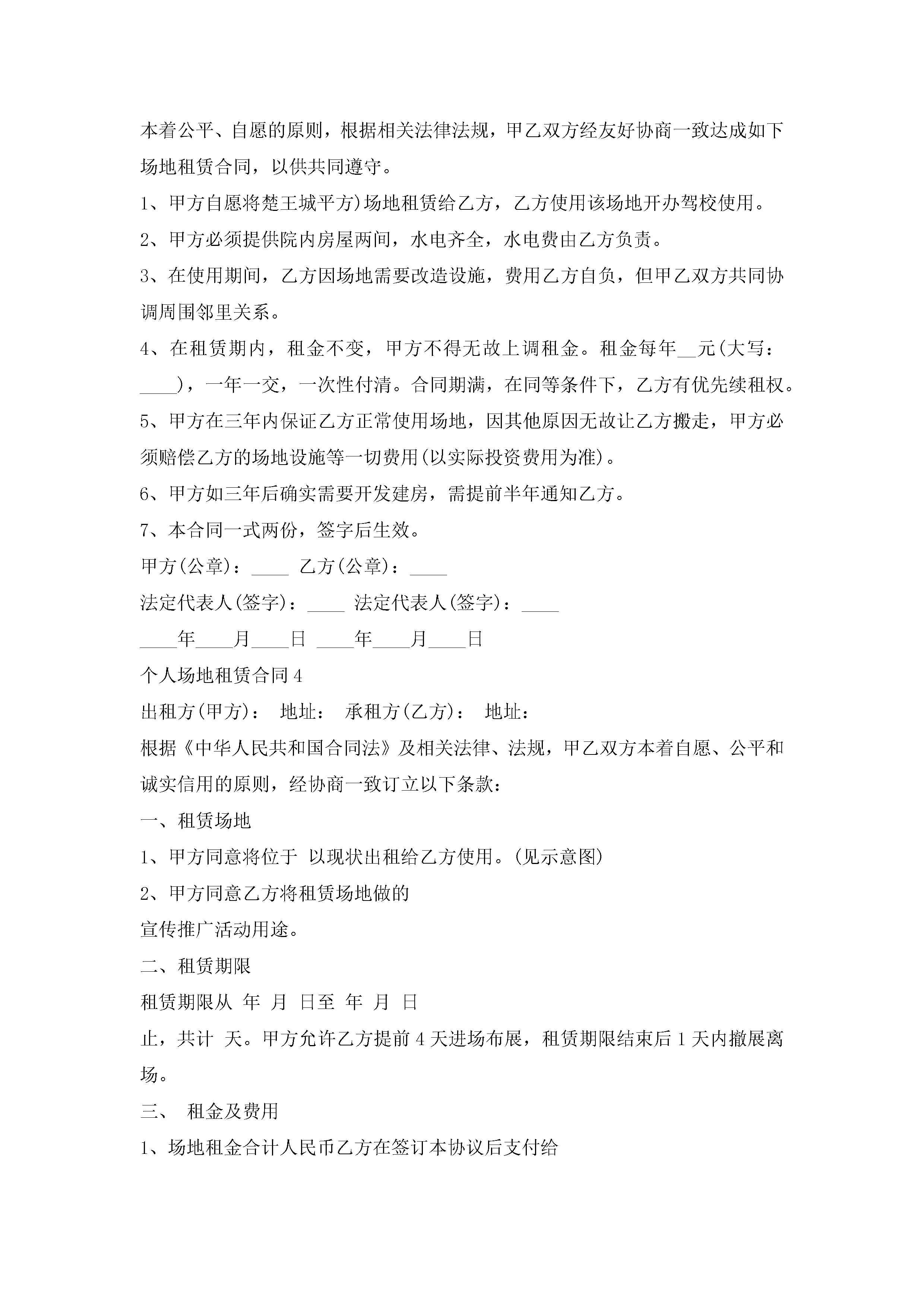 个人场地租赁合同5篇jugei3月23日 01:41发布关注233 个人场地租赁合同5篇此内容为付费资源,请付费后查看¥10.9 单篇文档限时特惠¥15个人会员开通企业会员开通立即下载无需登陆!可直接快捷下载单个模板付费资源© 版权声明THE ENDWord模板# 实用文档# 实用模板# 合同模板# 租赁合同 如有问题,可点击最底部“联系我们”联系客服 分享QQ空间微博QQ好友海报分享复制链接收藏
