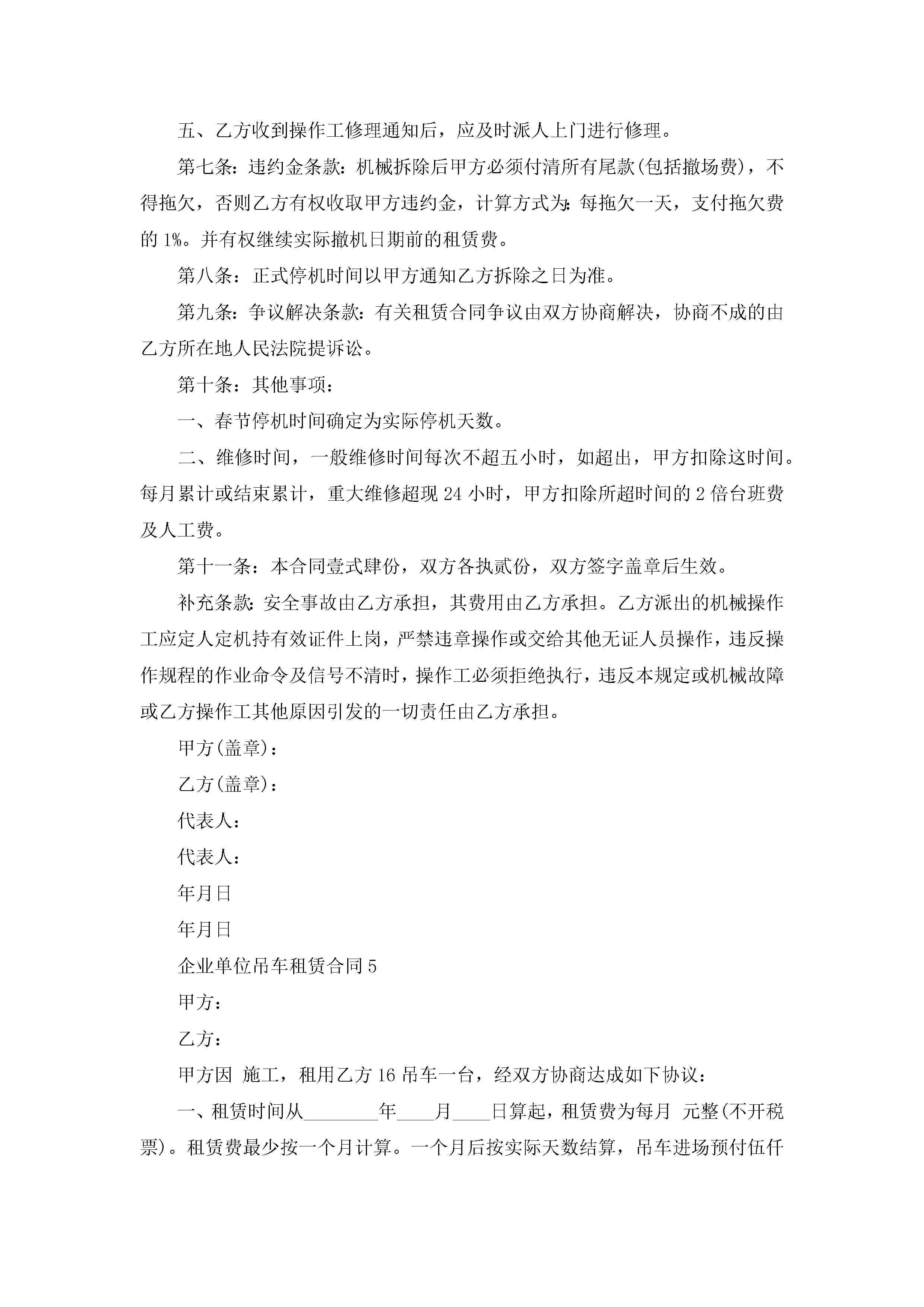 企业单位吊车租赁合同5篇jugei3月23日 01:41发布关注269 企业单位吊车租赁合同5篇此内容为付费资源,请付费后查看¥10.9 单篇文档限时特惠¥15个人会员开通企业会员开通立即下载无需登陆!可直接快捷下载单个模板付费资源© 版权声明THE ENDWord模板# 实用文档# 实用模板# 合同模板# 租赁合同 如有问题,可点击最底部“联系我们”联系客服 分享QQ空间微博QQ好友海报分享复制链接收藏