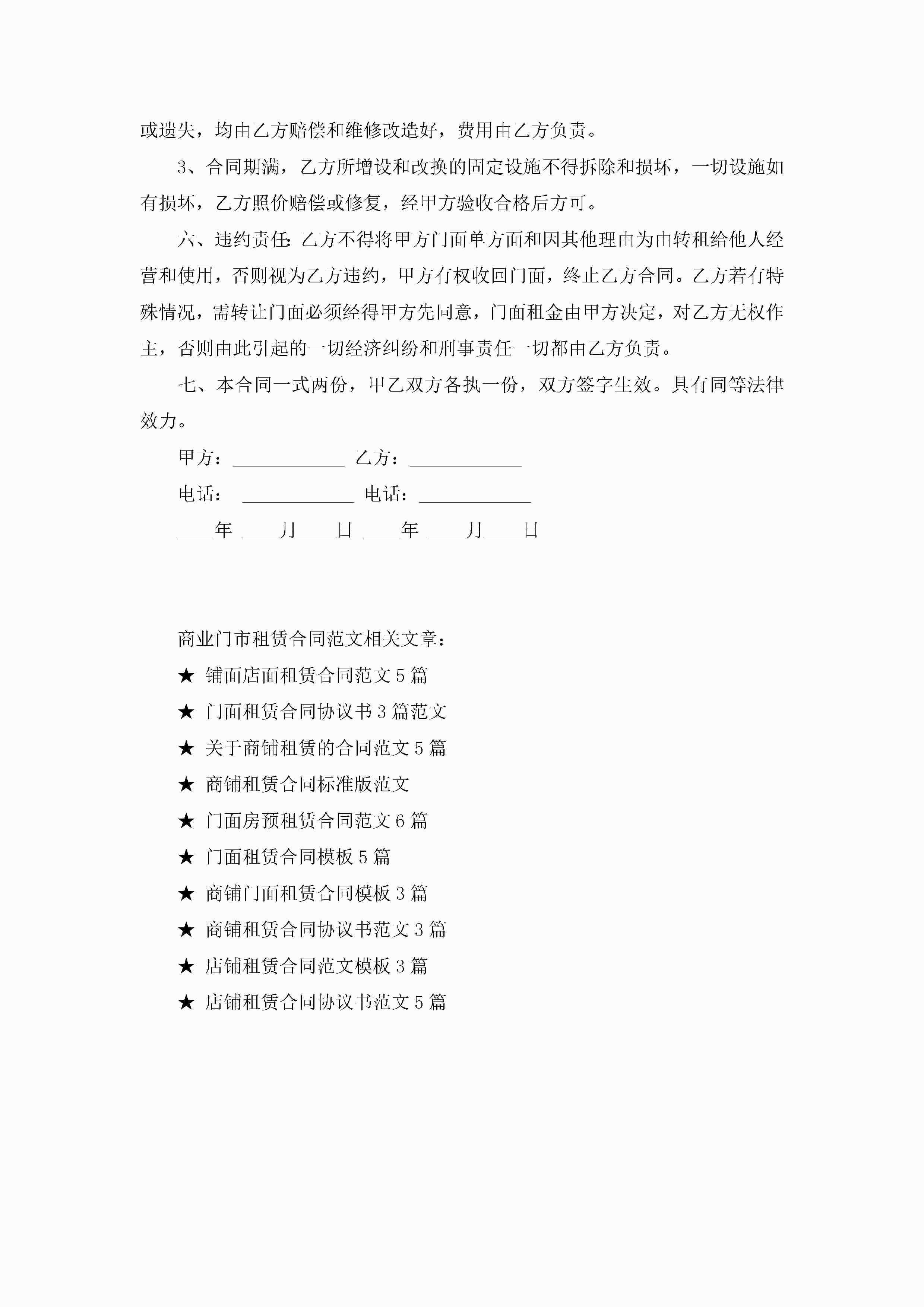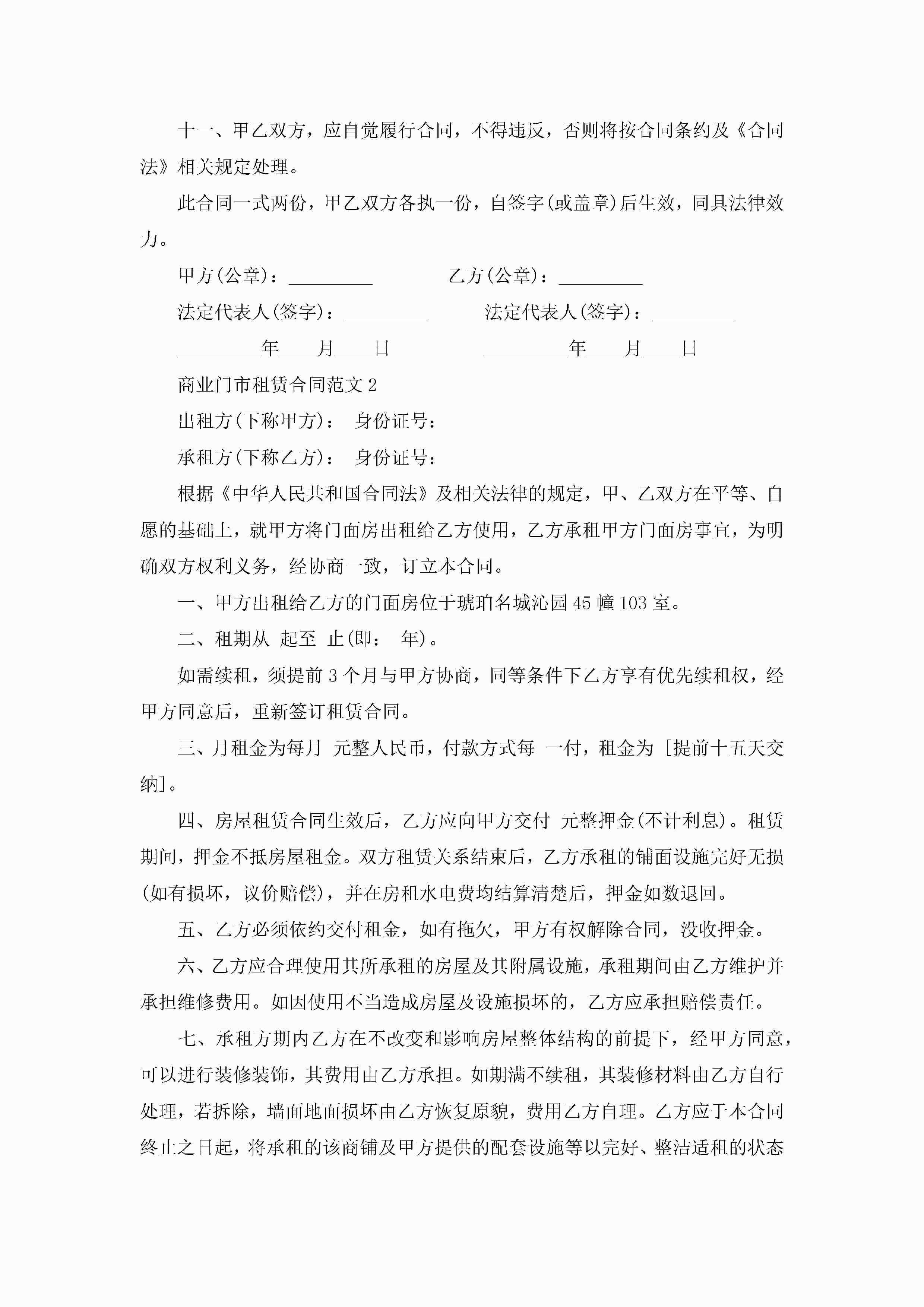 商业门市租赁合同范文5篇jugei3月23日 01:41发布关注211 商业门市租赁合同范文5篇此内容为付费资源,请付费后查看¥10.9 单篇文档限时特惠¥15个人会员开通企业会员开通立即下载无需登陆!可直接快捷下载单个模板付费资源© 版权声明THE ENDWord模板# 实用文档# 实用模板# 合同模板# 租赁合同 如有问题,可点击最底部“联系我们”联系客服 分享QQ空间微博QQ好友海报分享复制链接收藏