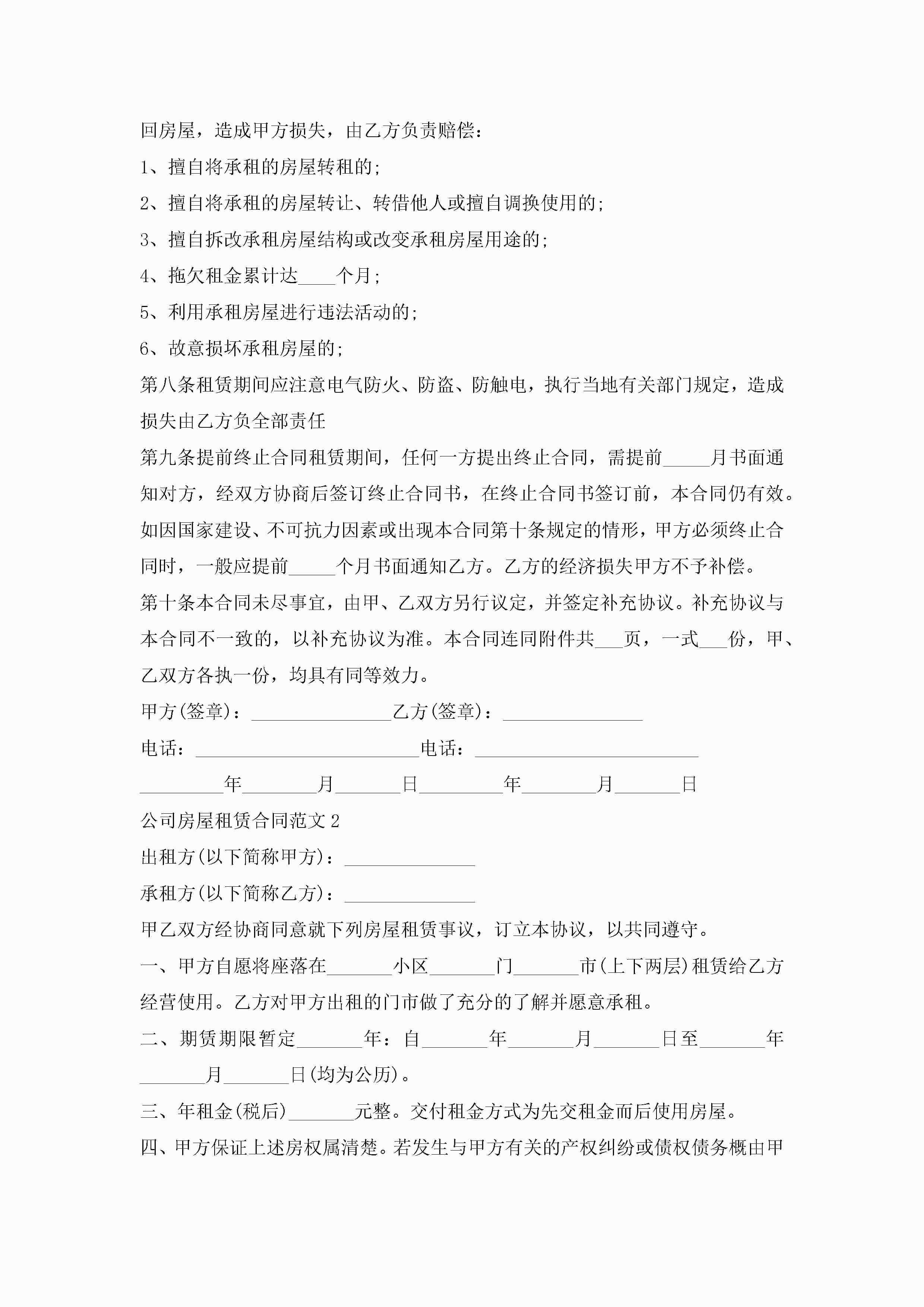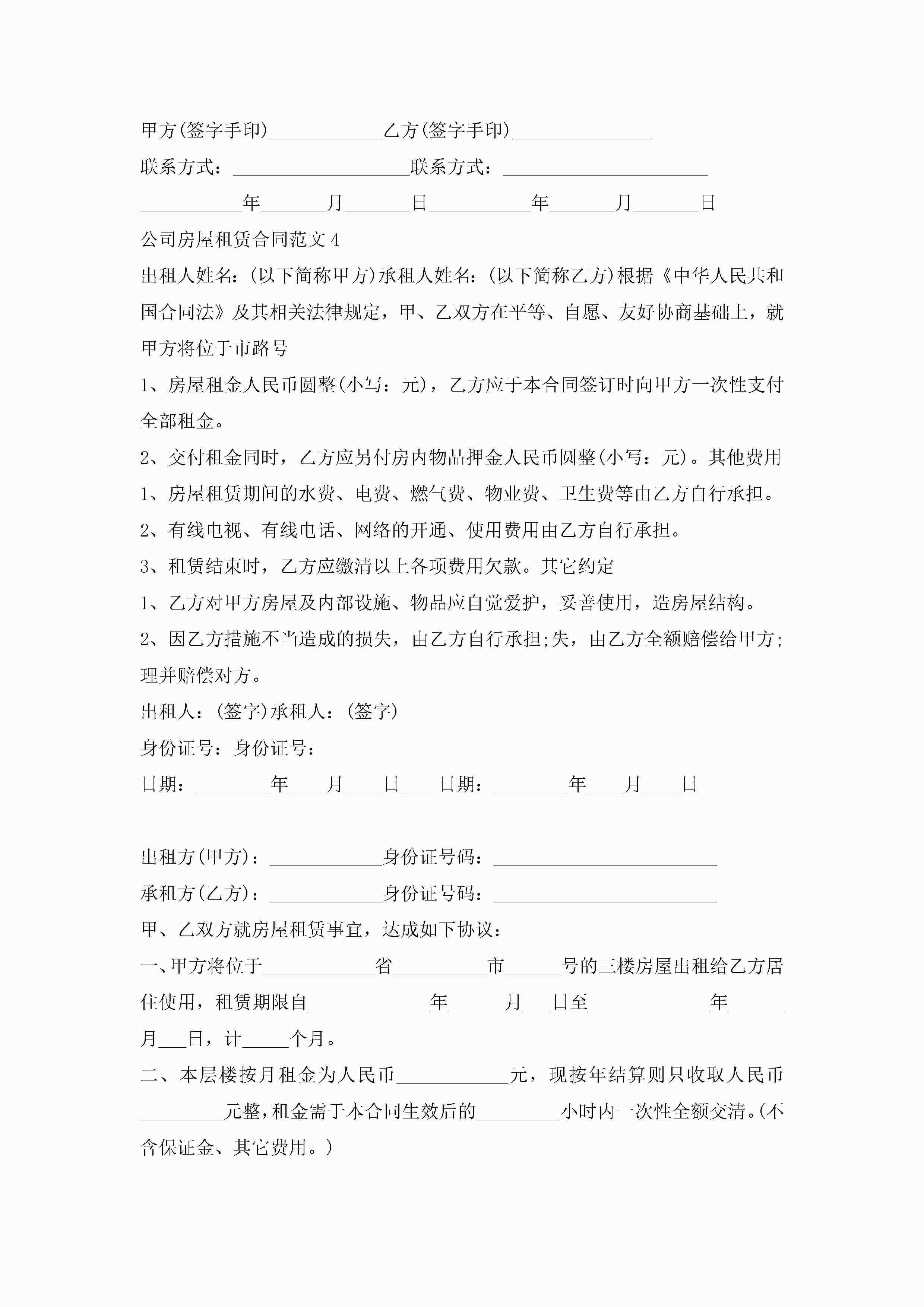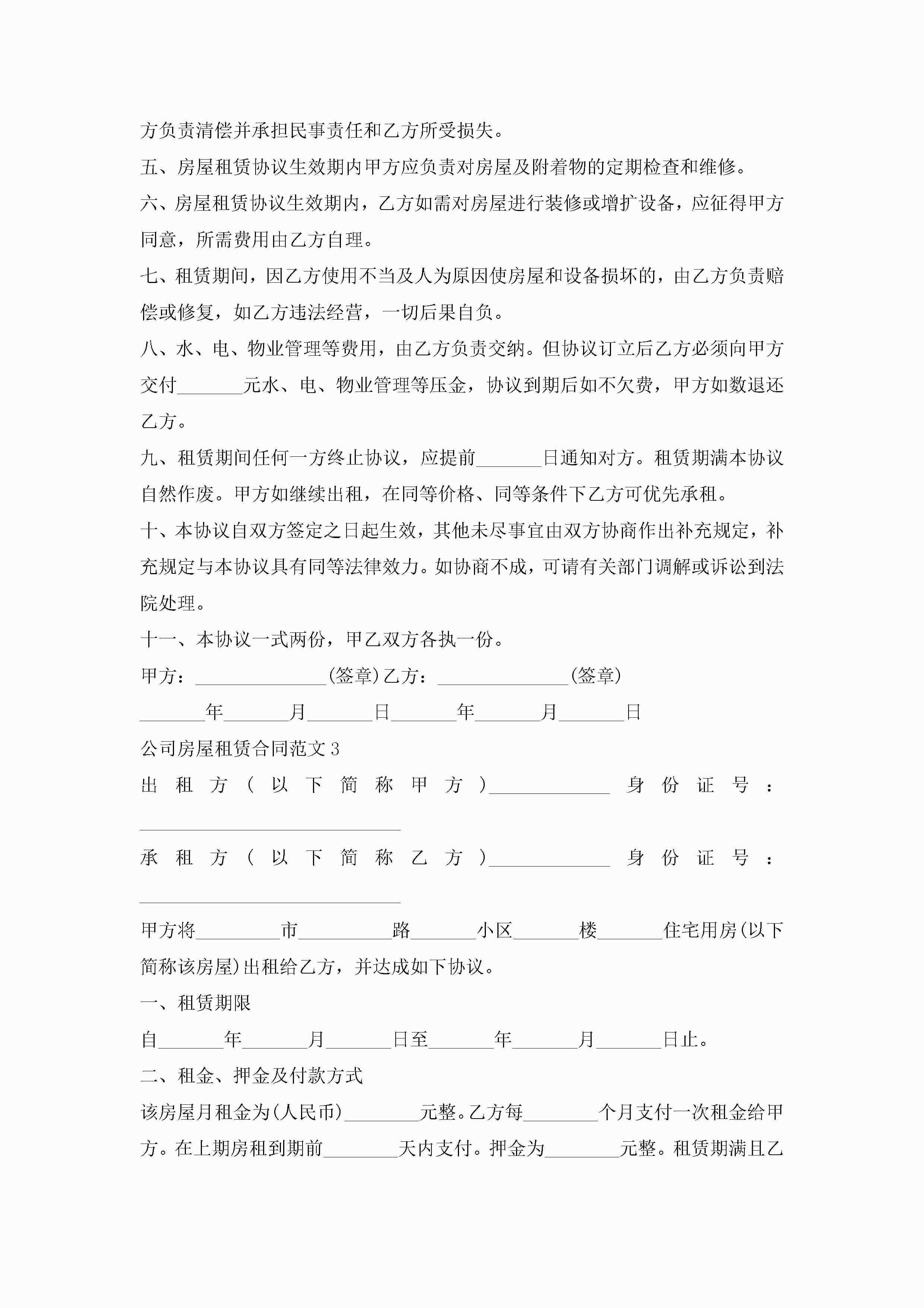 公司房屋租赁合同范文5篇jugei3月23日 01:41发布关注212 公司房屋租赁合同范文5篇此内容为付费资源,请付费后查看¥10.9 单篇文档限时特惠¥15个人会员开通企业会员开通立即下载无需登陆!可直接快捷下载单个模板付费资源© 版权声明THE ENDWord模板# 实用文档# 实用模板# 合同模板# 租赁合同 如有问题,可点击最底部“联系我们”联系客服 分享QQ空间微博QQ好友海报分享复制链接收藏