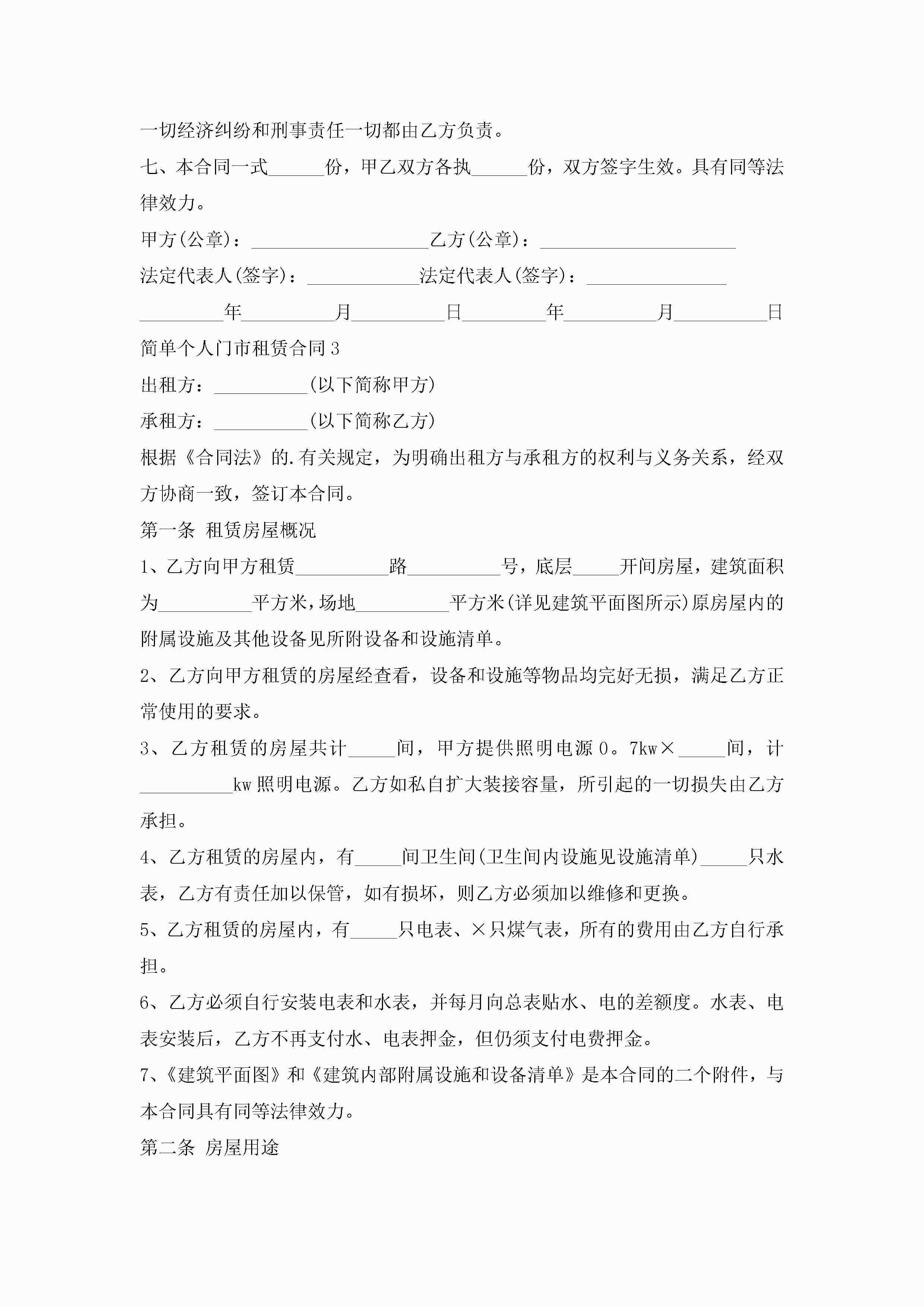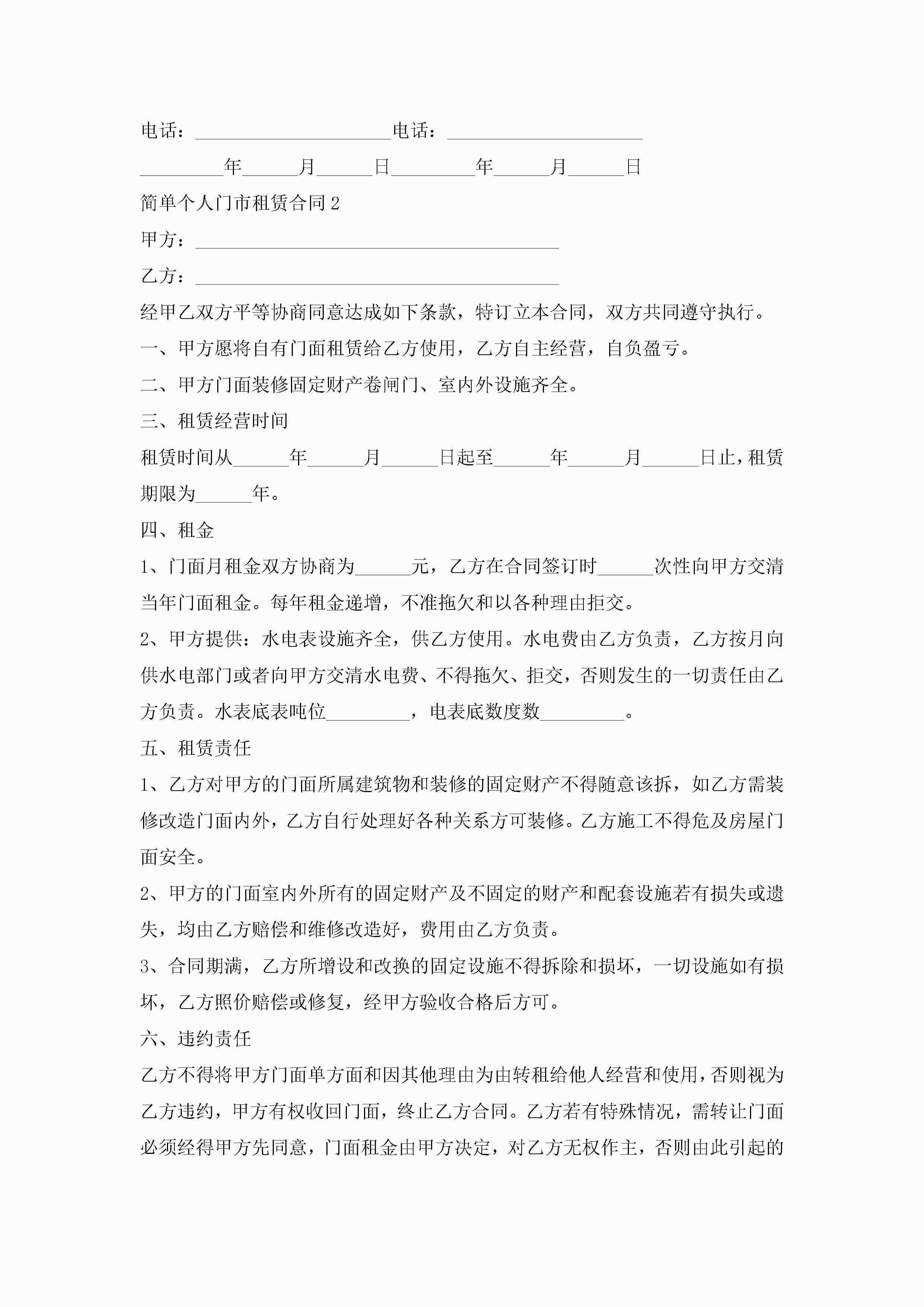简单个人门市租赁合同5篇jugei3月23日 01:41发布关注200 简单个人门市租赁合同5篇此内容为付费资源,请付费后查看¥10.9 单篇文档限时特惠¥15个人会员开通企业会员开通立即下载无需登陆!可直接快捷下载单个模板付费资源© 版权声明THE ENDWord模板# 实用文档# 实用模板# 合同模板# 租赁合同 如有问题,可点击最底部“联系我们”联系客服 分享QQ空间微博QQ好友海报分享复制链接收藏