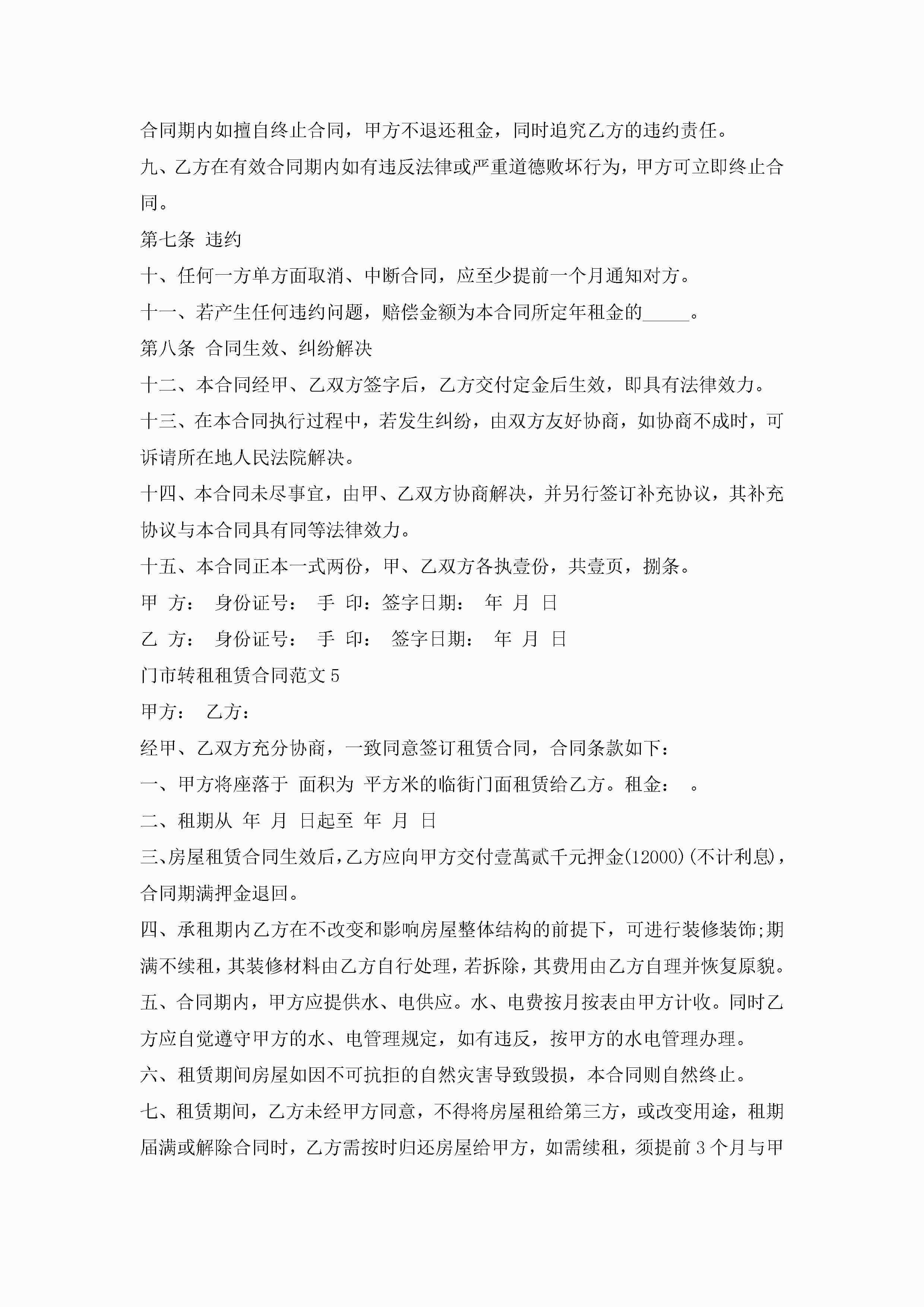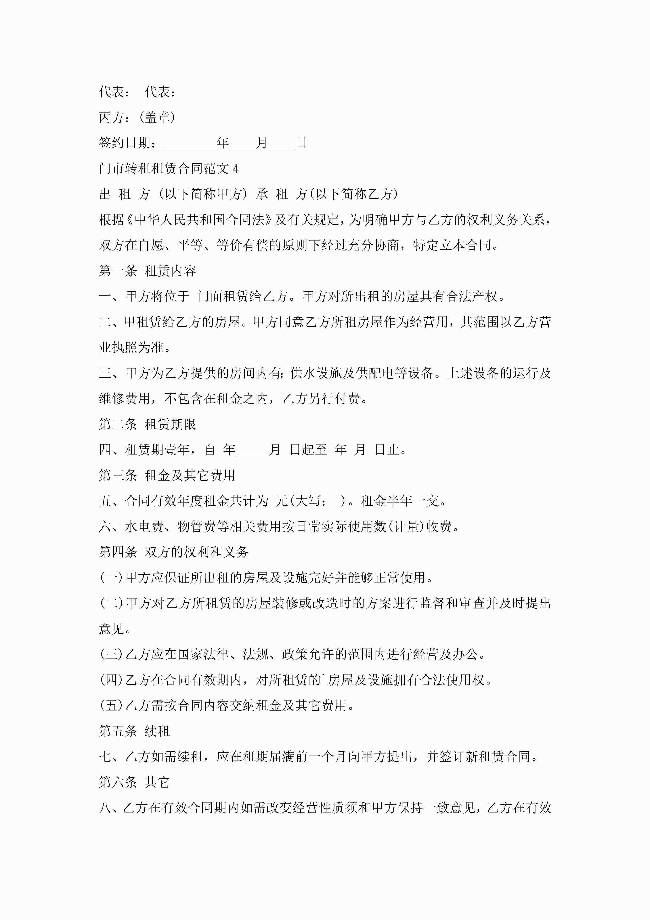 门市转租租赁合同范文5篇jugei3月23日 01:41发布关注186 门市转租租赁合同范文5篇此内容为付费资源,请付费后查看¥10.9 单篇文档限时特惠¥15个人会员开通企业会员开通立即下载无需登陆!可直接快捷下载单个模板付费资源© 版权声明THE ENDWord模板# 实用文档# 实用模板# 合同模板# 租赁合同 如有问题,可点击最底部“联系我们”联系客服 分享QQ空间微博QQ好友海报分享复制链接收藏