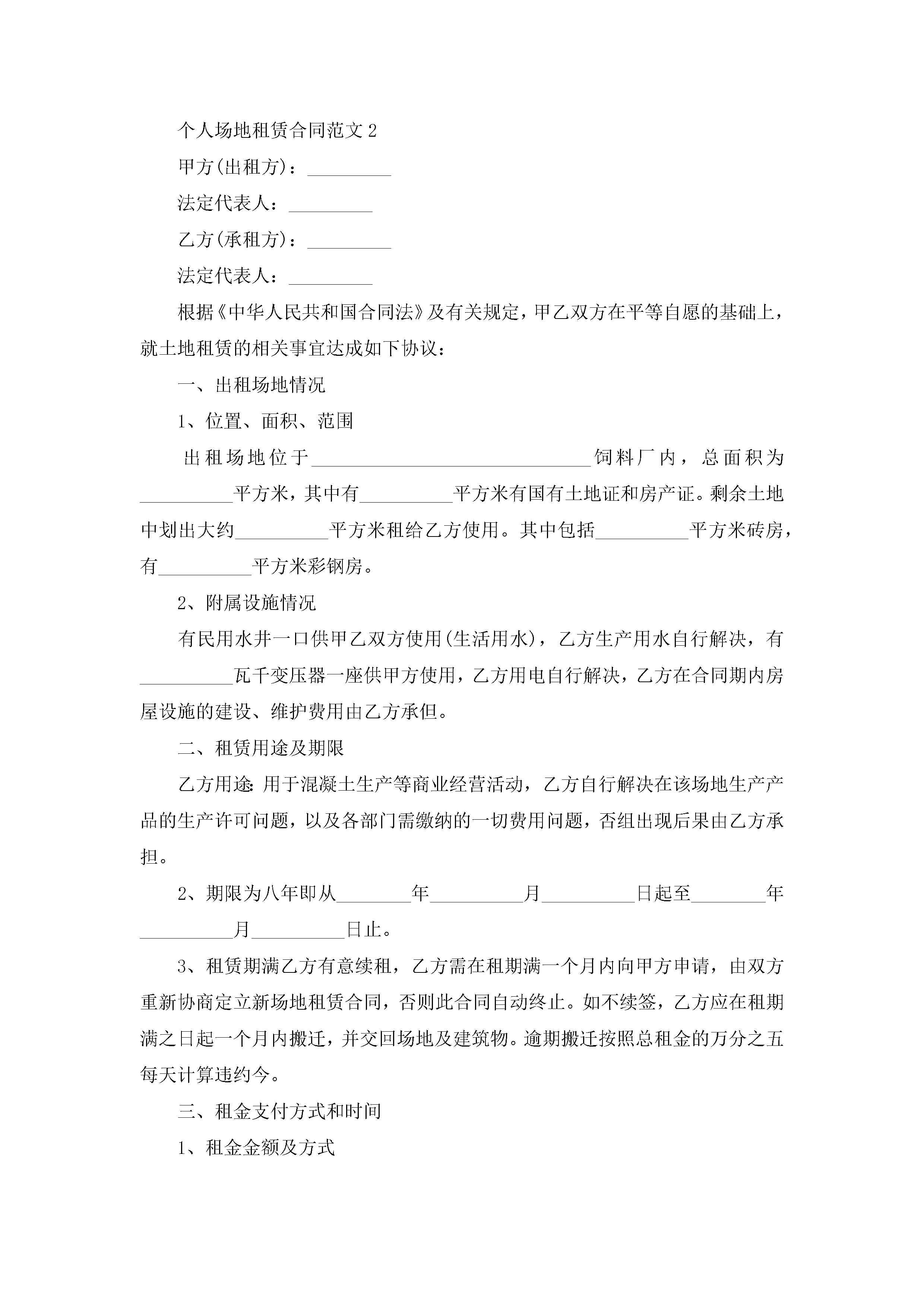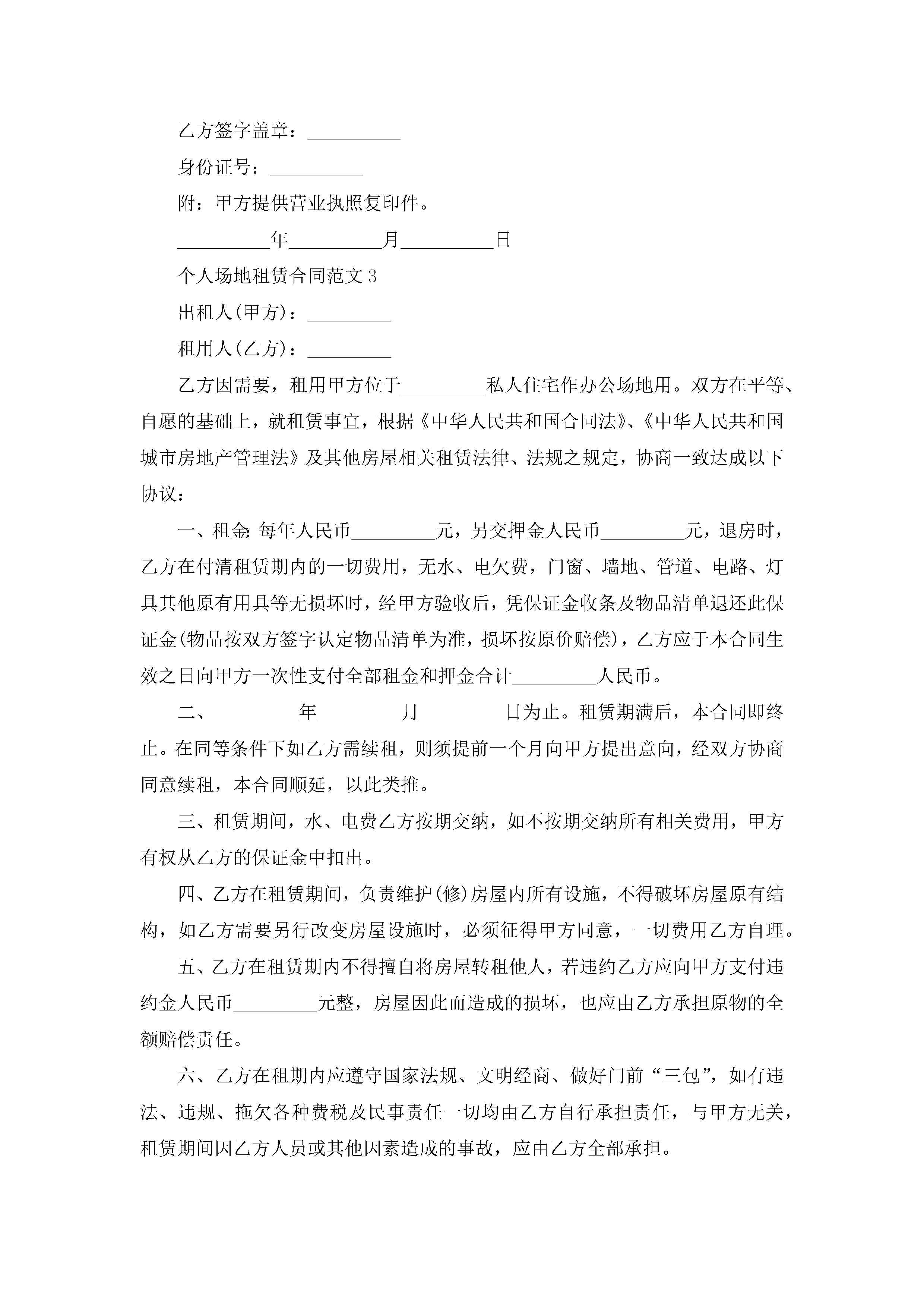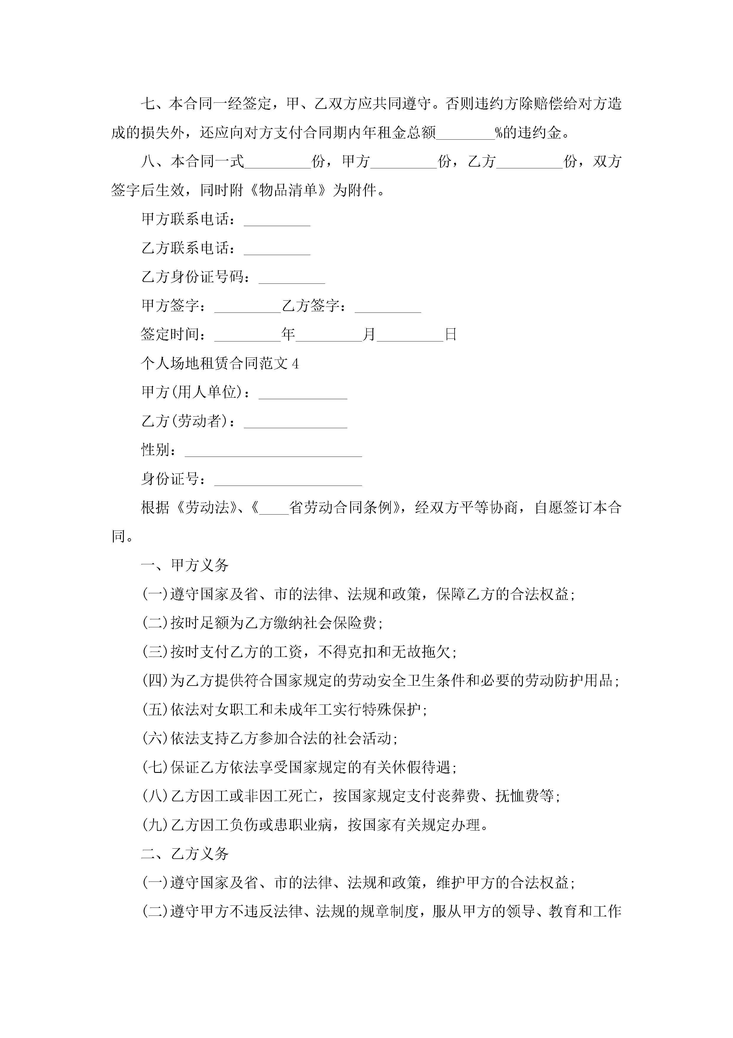 关于个人场地租赁合同范文5篇jugei3月23日 01:41发布关注185 关于个人场地租赁合同范文5篇此内容为付费资源,请付费后查看¥10.9 单篇文档限时特惠¥15个人会员开通企业会员开通立即下载无需登陆!可直接快捷下载单个模板付费资源© 版权声明THE ENDWord模板# 实用文档# 实用模板# 合同模板# 租赁合同 如有问题,可点击最底部“联系我们”联系客服 分享QQ空间微博QQ好友海报分享复制链接收藏