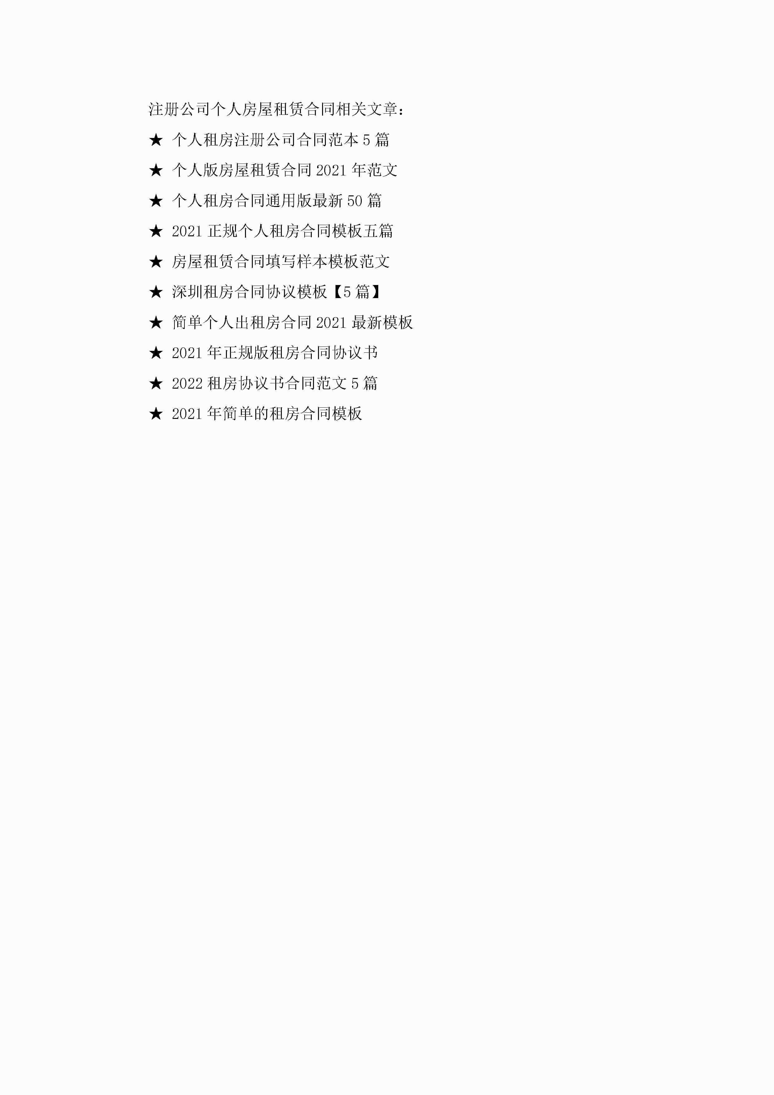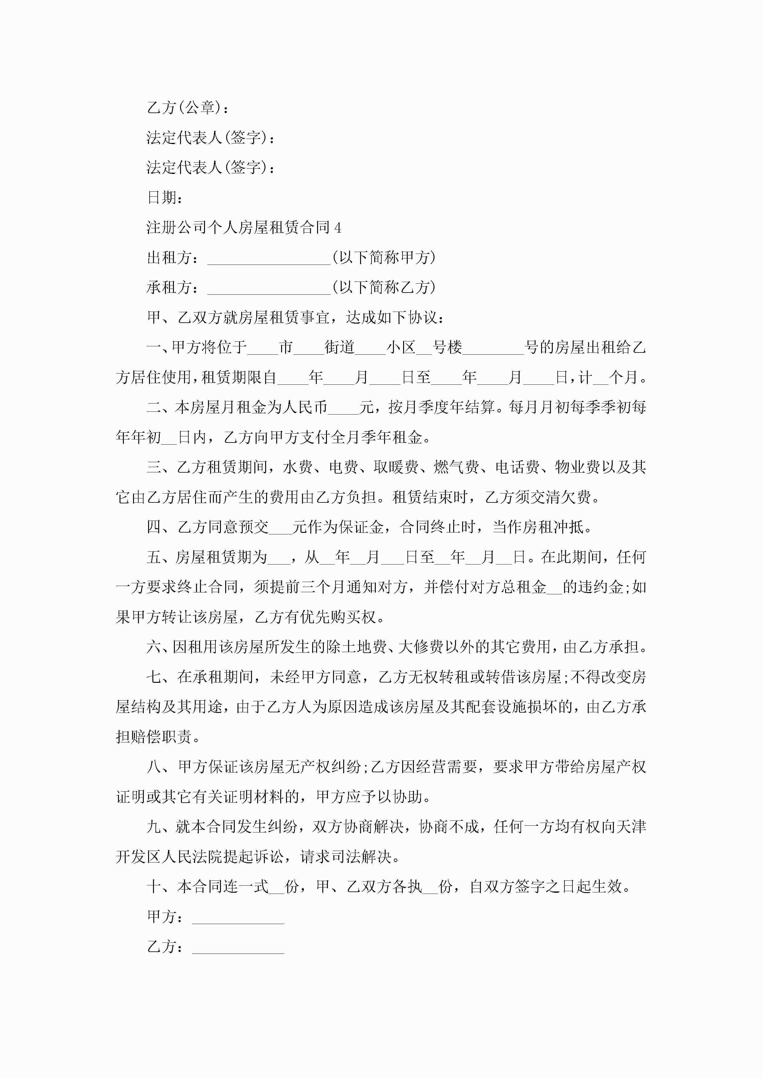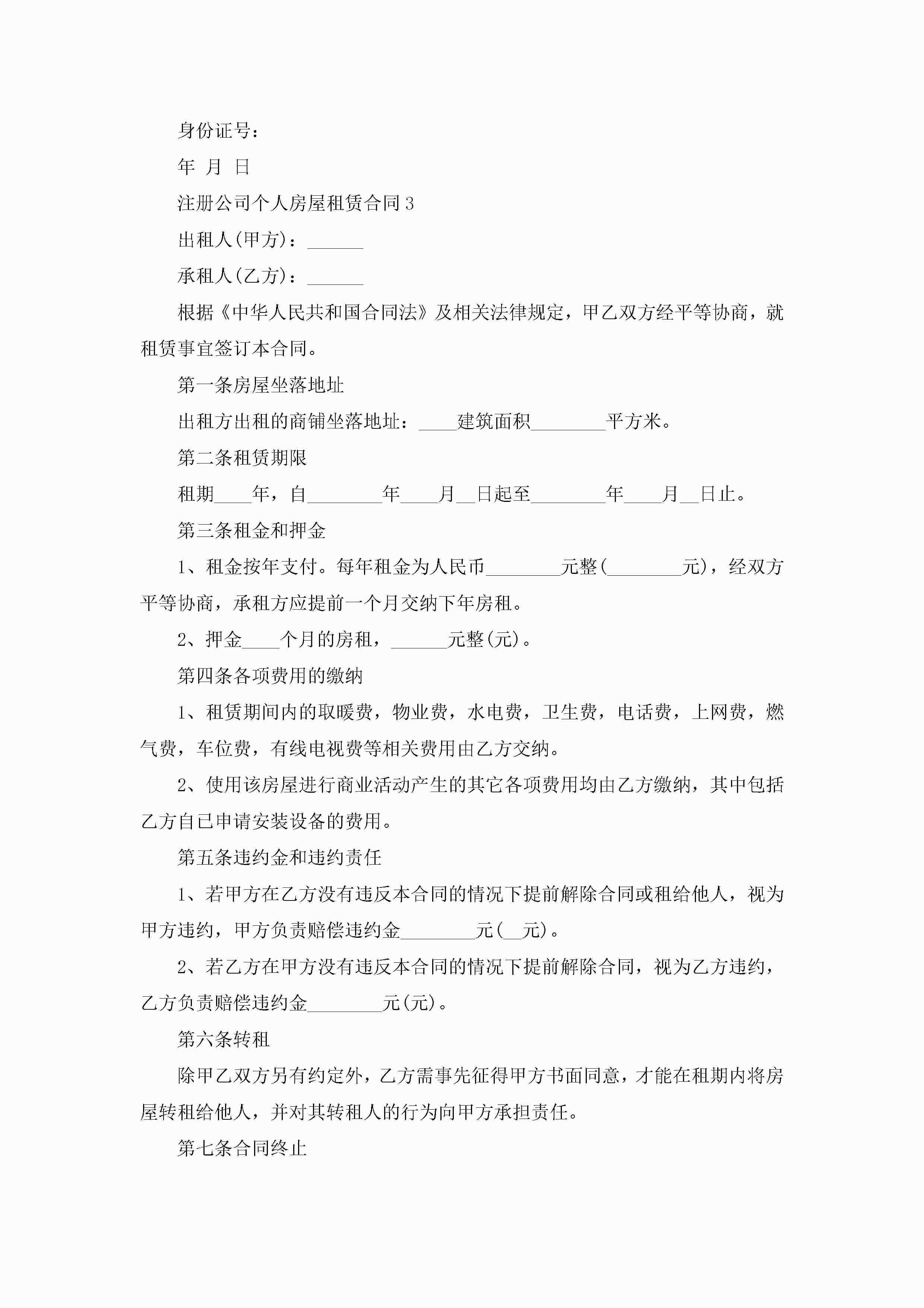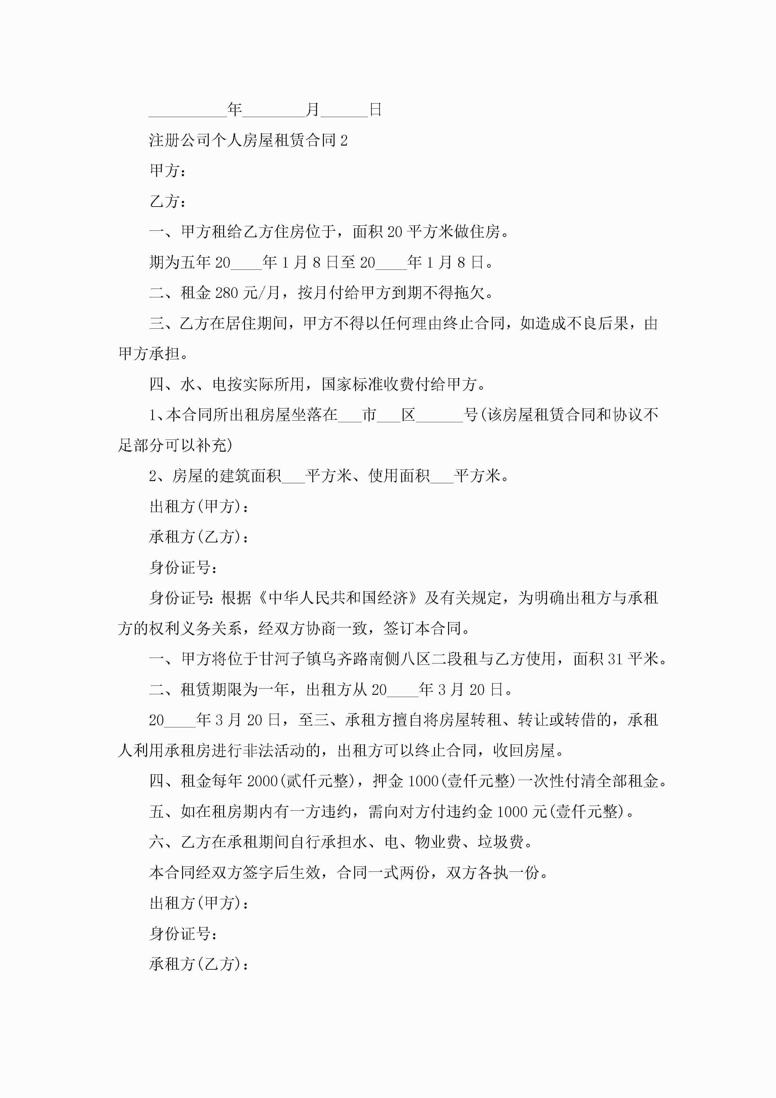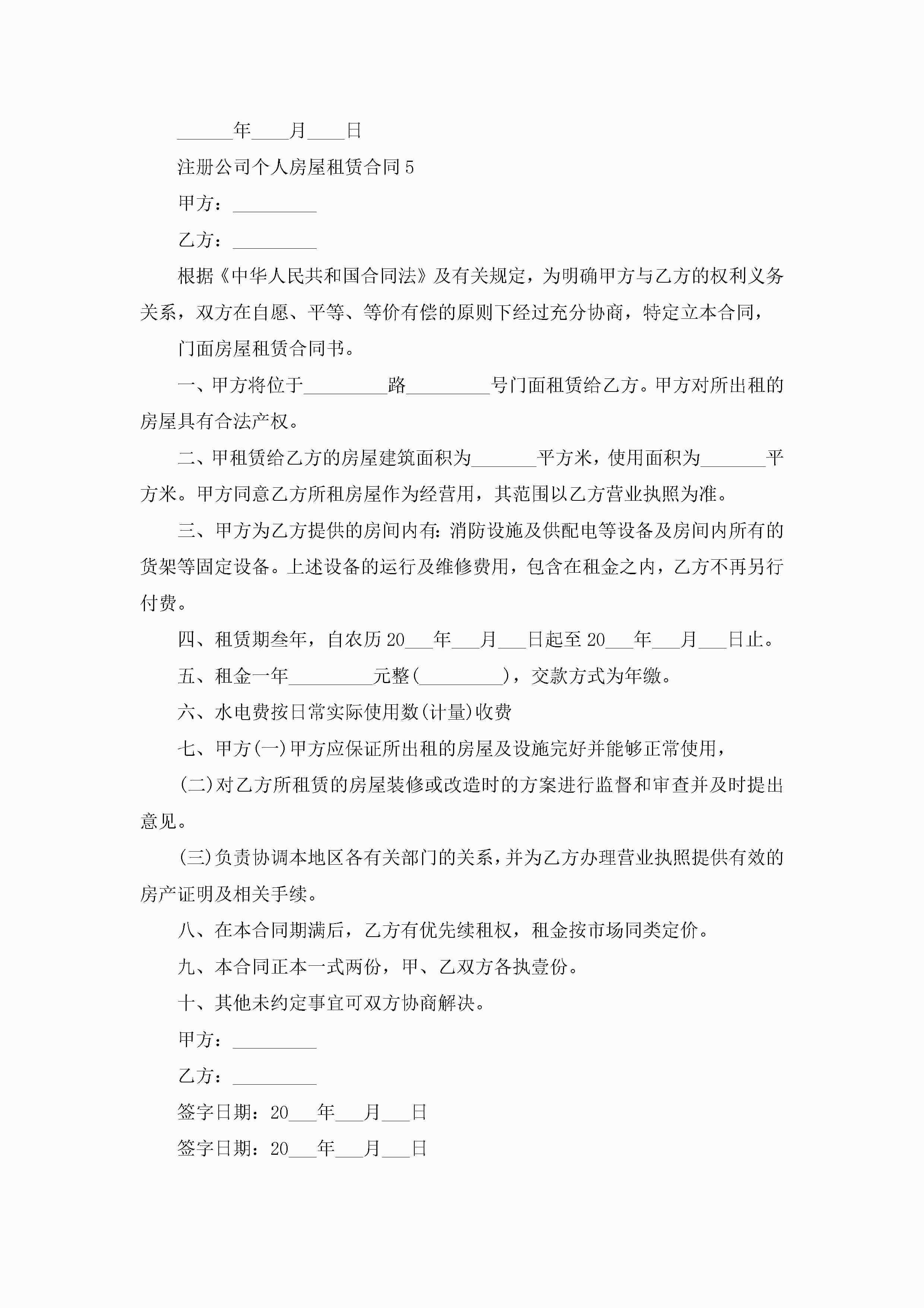 注册公司个人房屋租赁合同5篇jugei3月23日 01:41发布关注238 注册公司个人房屋租赁合同5篇此内容为付费资源,请付费后查看¥10.9 单篇文档限时特惠¥15个人会员开通企业会员开通立即下载无需登陆!可直接快捷下载单个模板付费资源© 版权声明THE ENDWord模板# 实用文档# 实用模板# 合同模板# 租赁合同 如有问题,可点击最底部“联系我们”联系客服 分享QQ空间微博QQ好友海报分享复制链接收藏