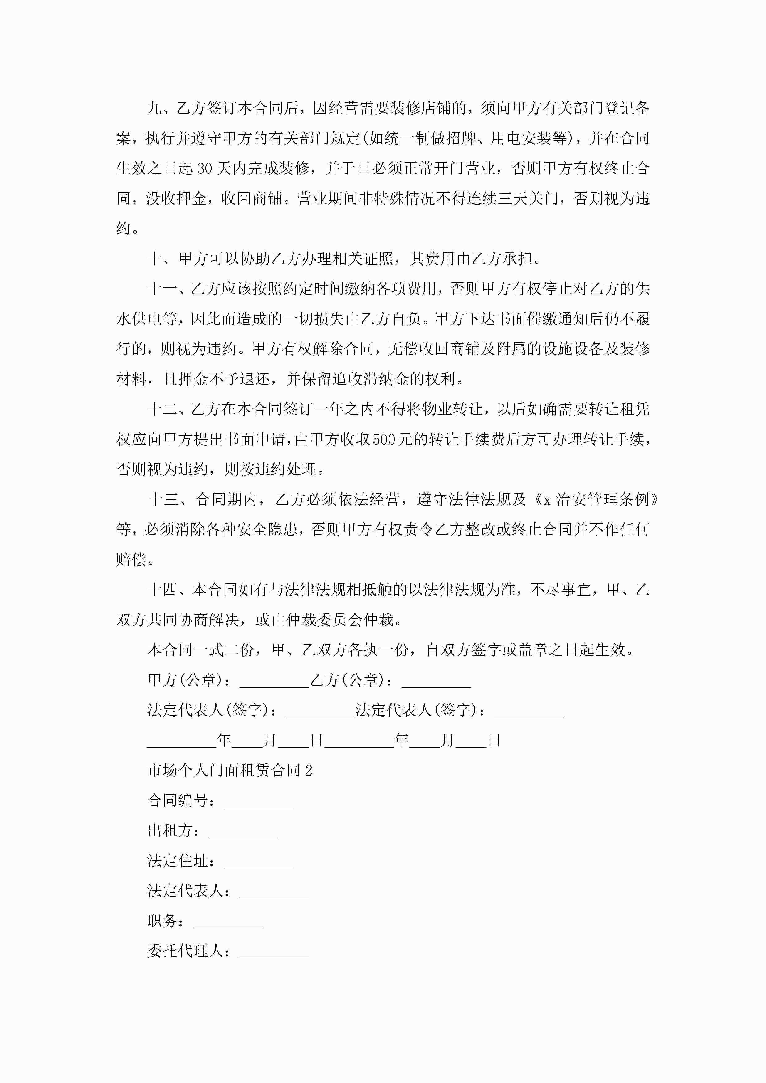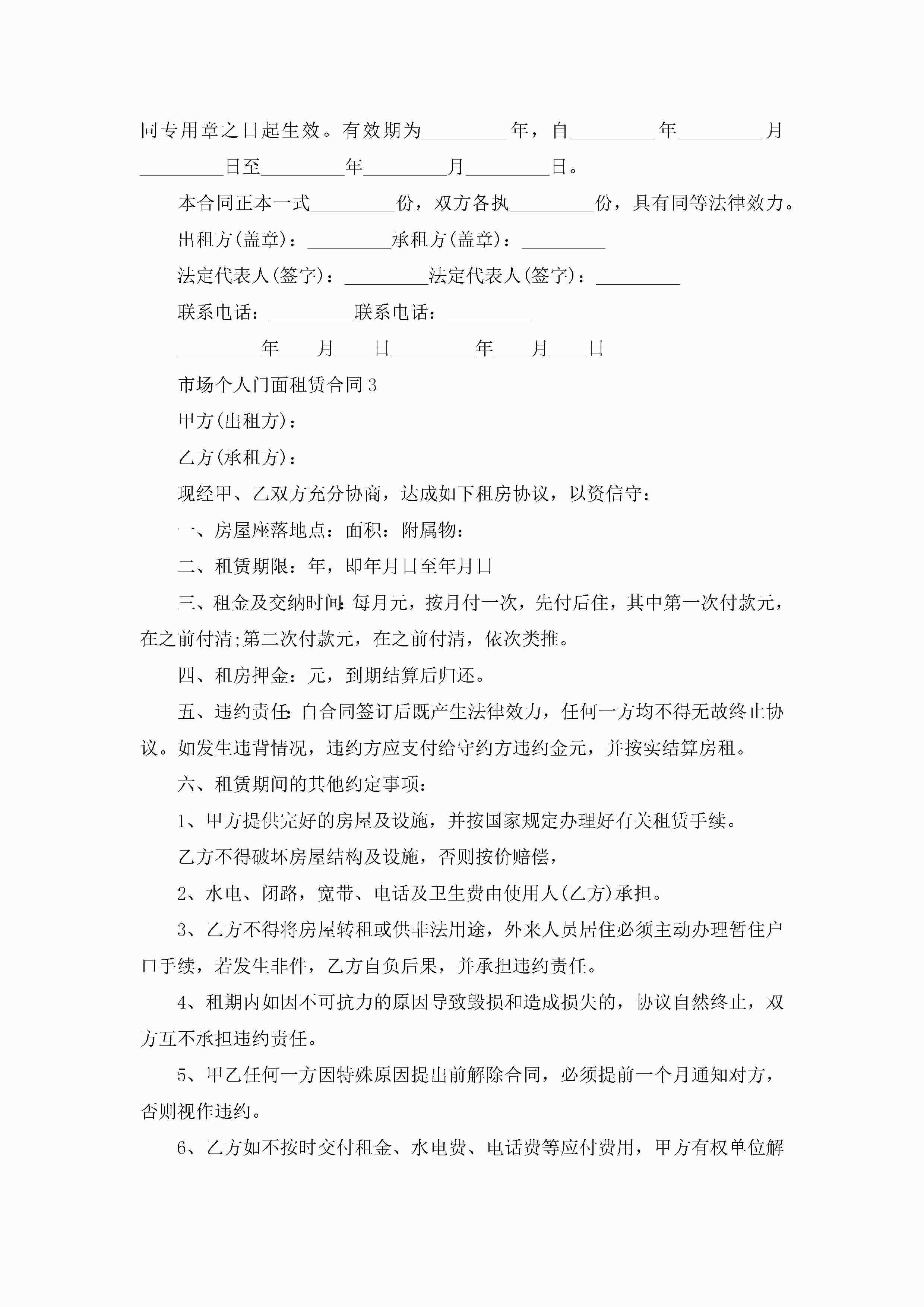 市场个人门面租赁合同5篇jugei3月23日 01:41发布关注185 市场个人门面租赁合同5篇此内容为付费资源,请付费后查看¥10.9 单篇文档限时特惠¥15个人会员开通企业会员开通立即下载无需登陆!可直接快捷下载单个模板付费资源© 版权声明THE ENDWord模板# 实用文档# 实用模板# 合同模板# 租赁合同 如有问题,可点击最底部“联系我们”联系客服 分享QQ空间微博QQ好友海报分享复制链接收藏