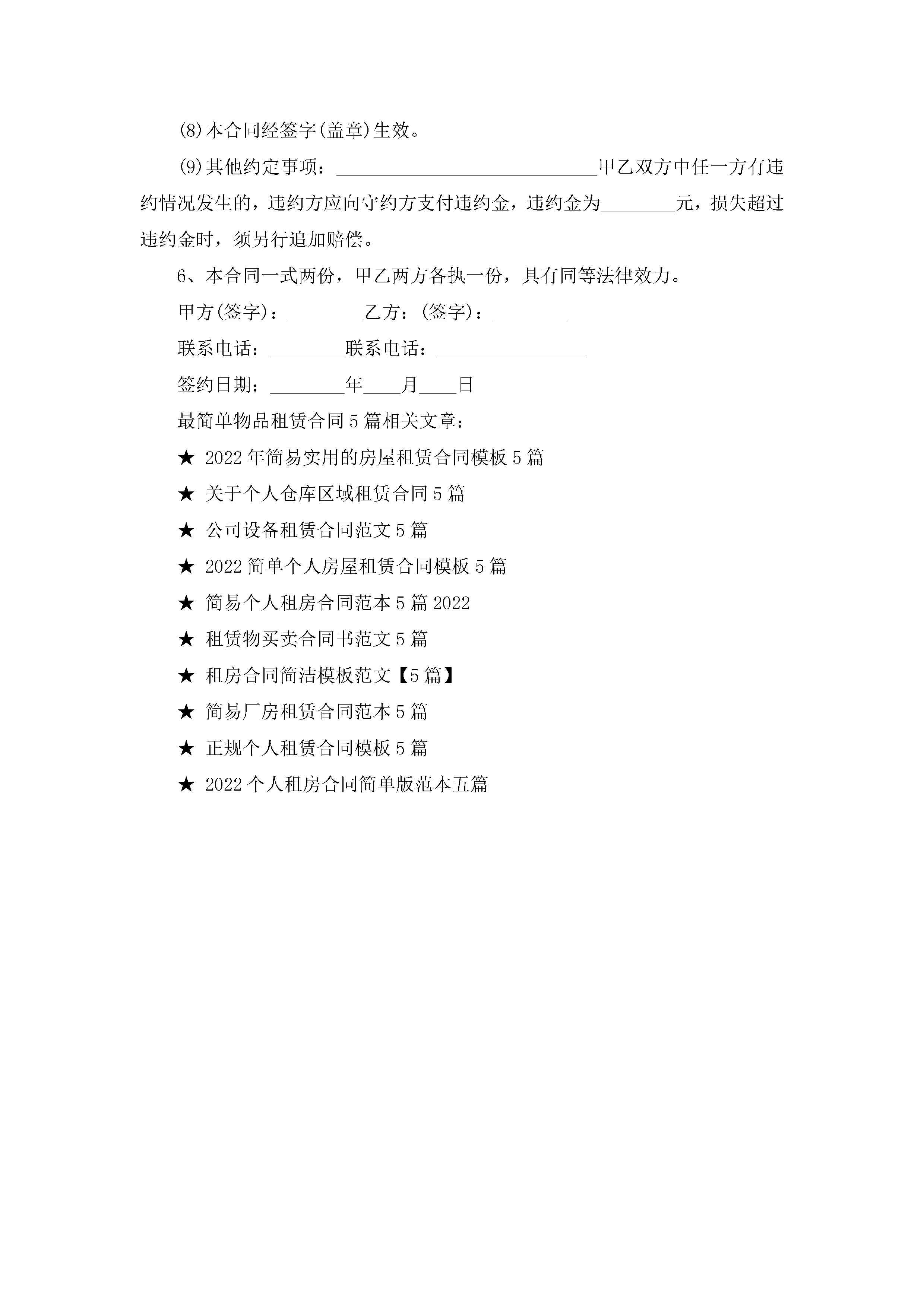 最简单物品租赁合同范文5篇jugei3月23日 01:41发布关注195 最简单物品租赁合同范文5篇此内容为付费资源,请付费后查看¥10.9 单篇文档限时特惠¥15个人会员开通企业会员开通立即下载无需登陆!可直接快捷下载单个模板付费资源© 版权声明THE ENDWord模板# 实用文档# 实用模板# 合同模板# 租赁合同 如有问题,可点击最底部“联系我们”联系客服 分享QQ空间微博QQ好友海报分享复制链接收藏