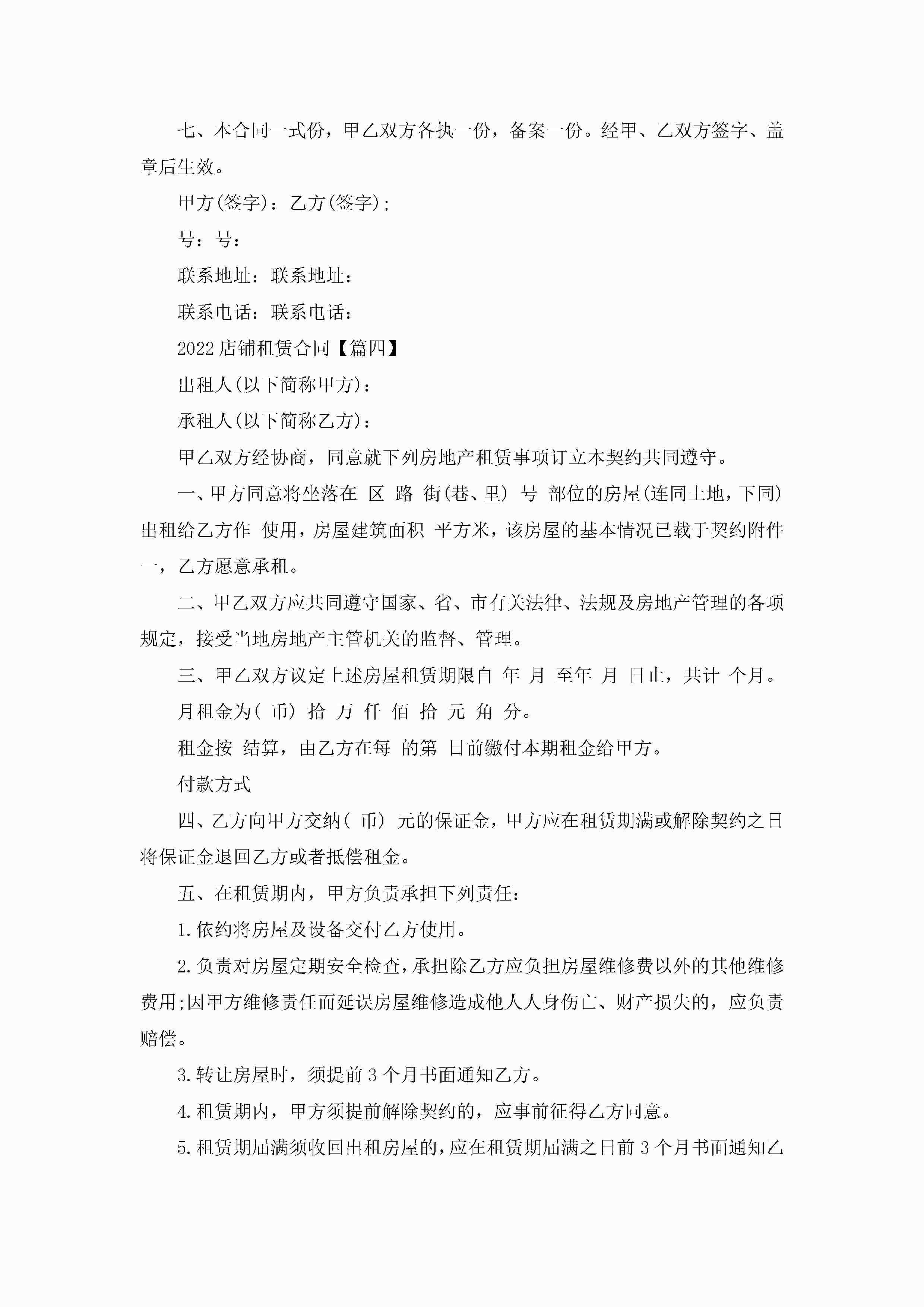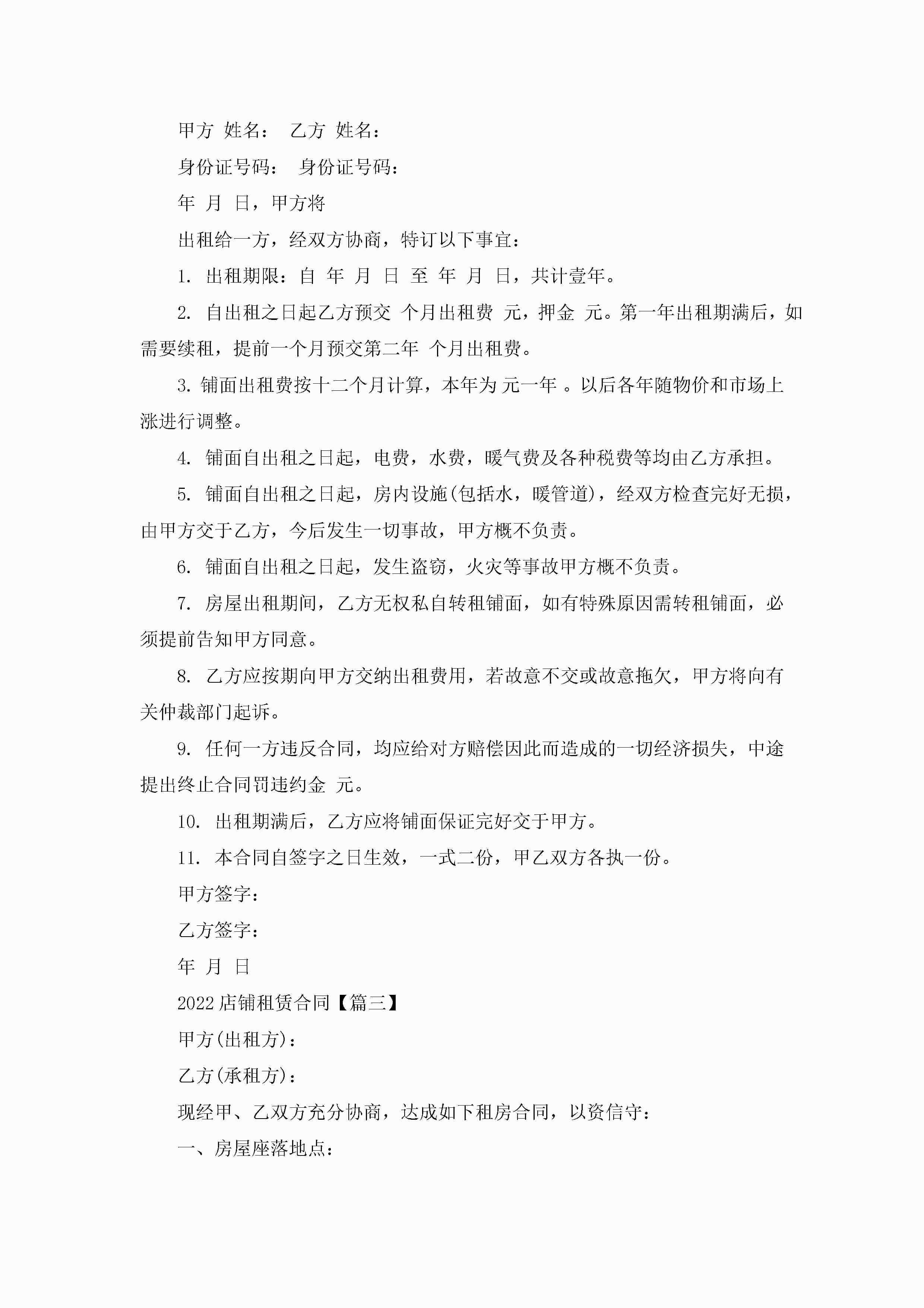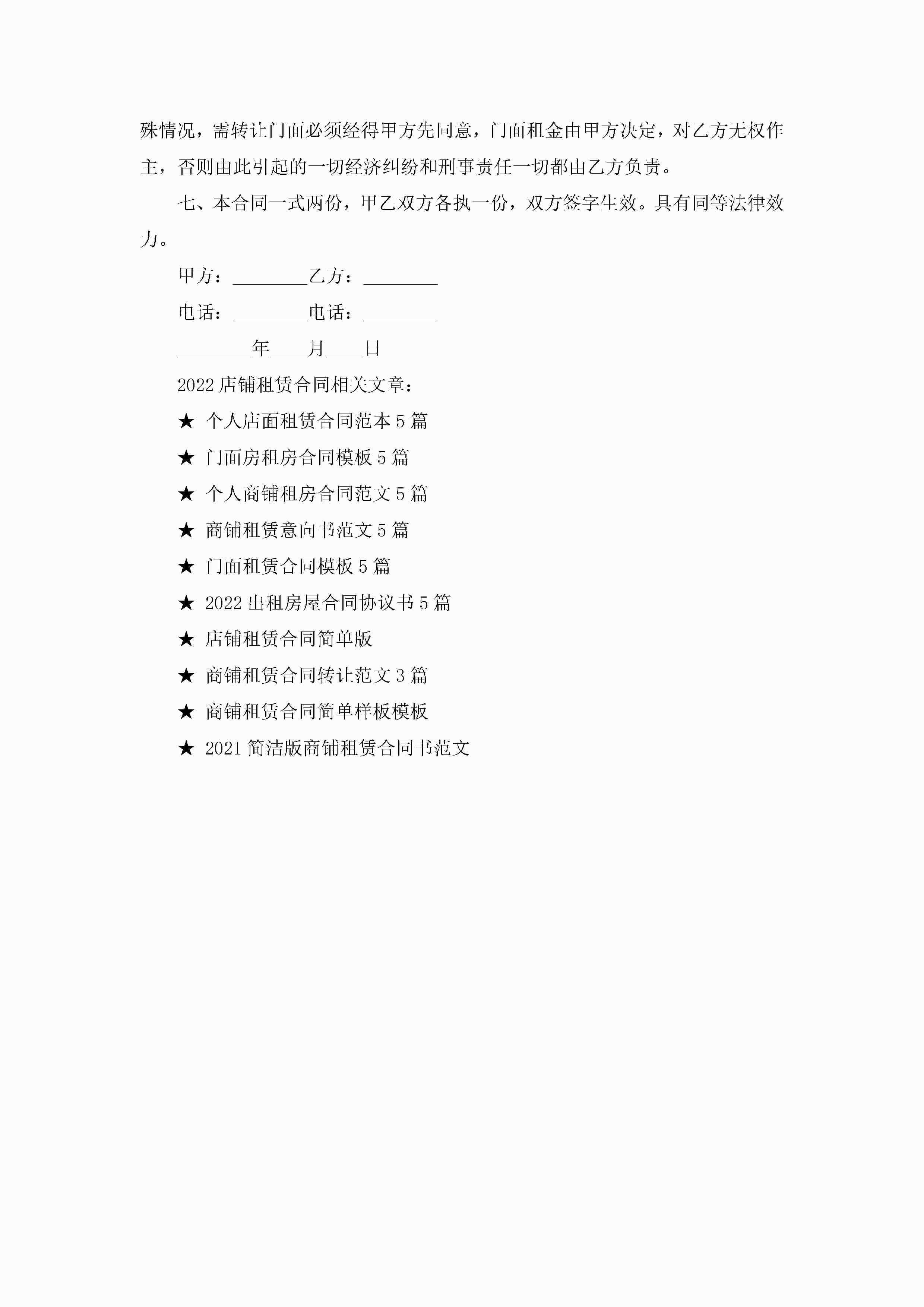 2022店铺租赁合同范本jugei3月23日 01:41发布关注189 2022店铺租赁合同范本此内容为付费资源,请付费后查看¥10.9 单篇文档限时特惠¥15个人会员开通企业会员开通立即下载无需登陆!可直接快捷下载单个模板付费资源© 版权声明THE ENDWord模板# 实用文档# 实用模板# 合同模板# 租赁合同 如有问题,可点击最底部“联系我们”联系客服 分享QQ空间微博QQ好友海报分享复制链接收藏