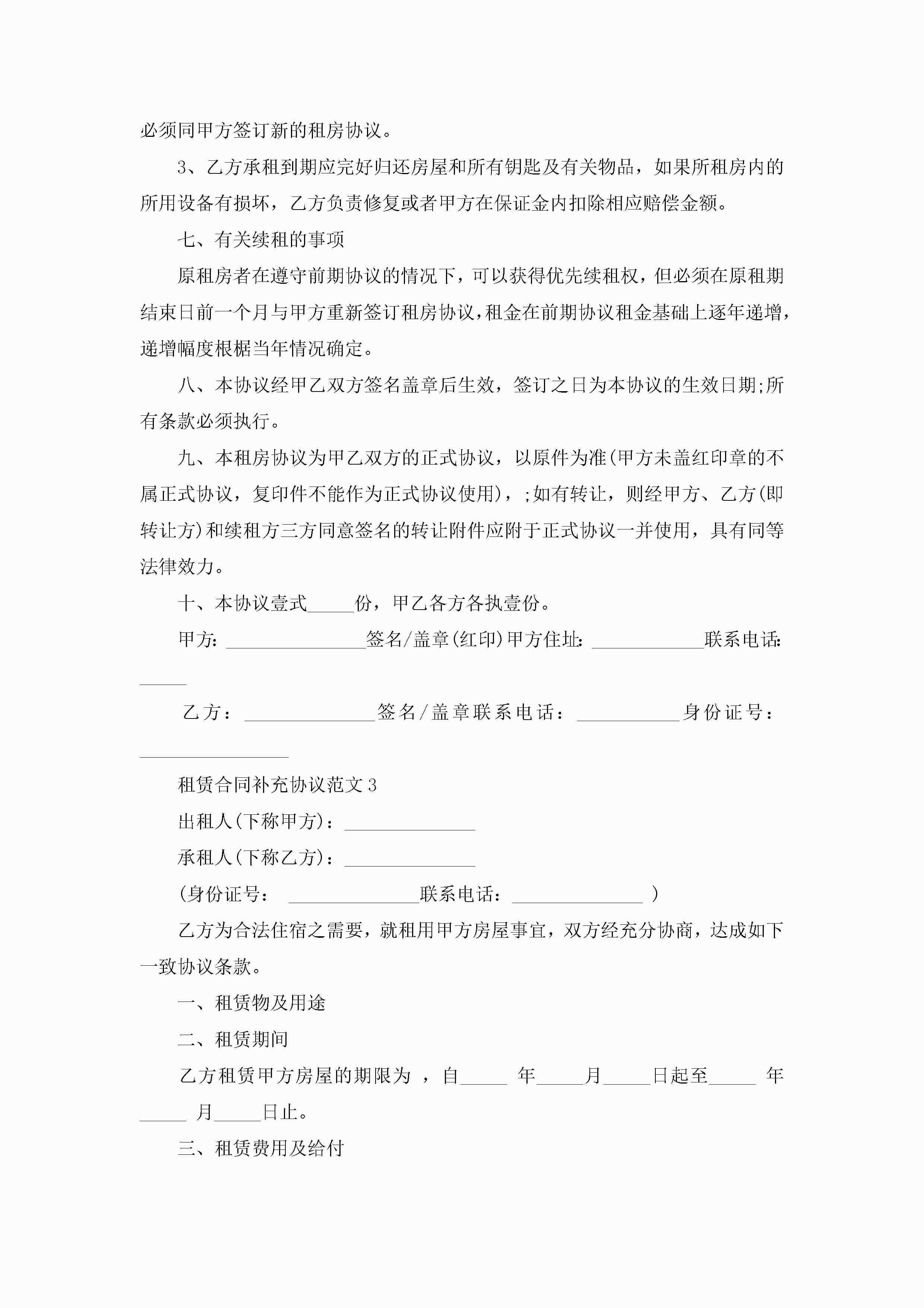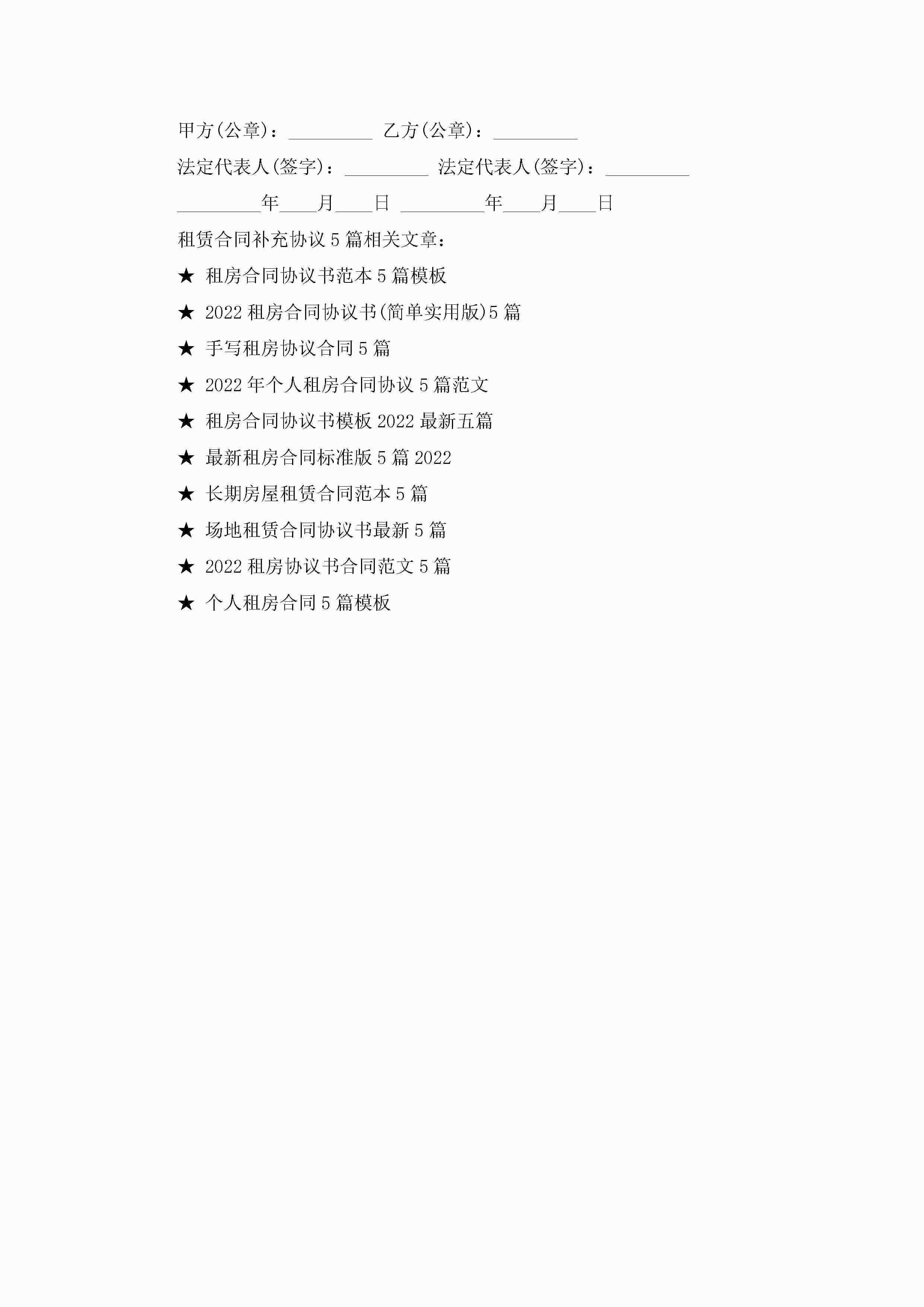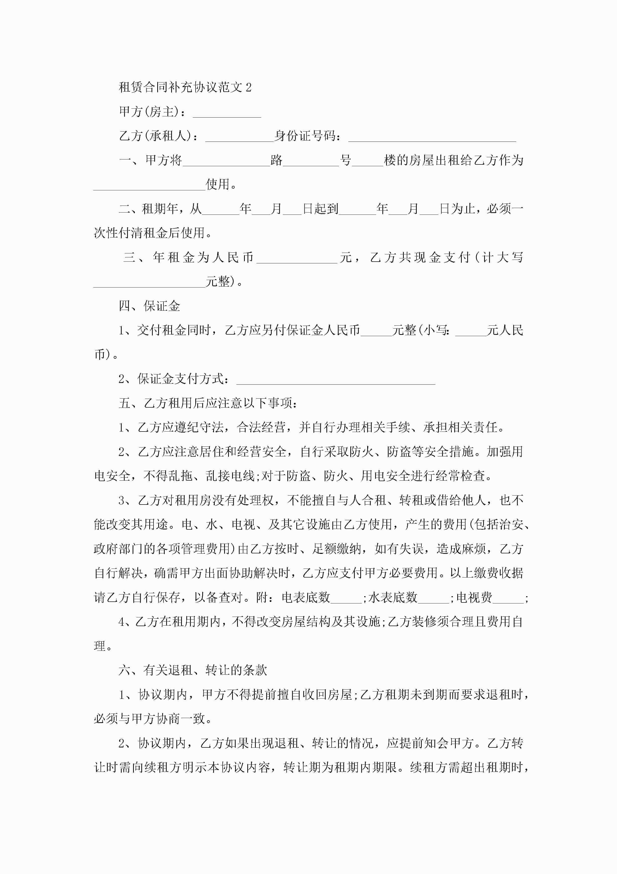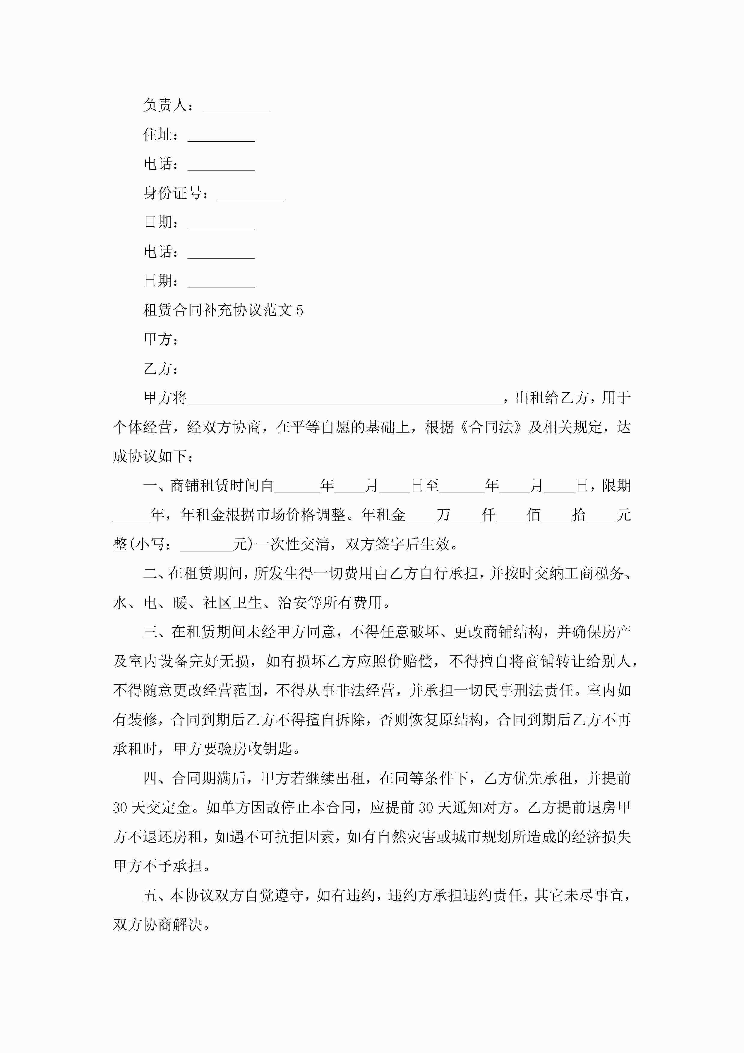 租赁合同补充协议范文5篇jugei3月23日 01:41发布关注258 租赁合同补充协议范文5篇此内容为付费资源,请付费后查看¥10.9 单篇文档限时特惠¥15个人会员开通企业会员开通立即下载无需登陆!可直接快捷下载单个模板付费资源© 版权声明THE ENDWord模板# 实用文档# 实用模板# 合同模板# 租赁合同 如有问题,可点击最底部“联系我们”联系客服 分享QQ空间微博QQ好友海报分享复制链接收藏