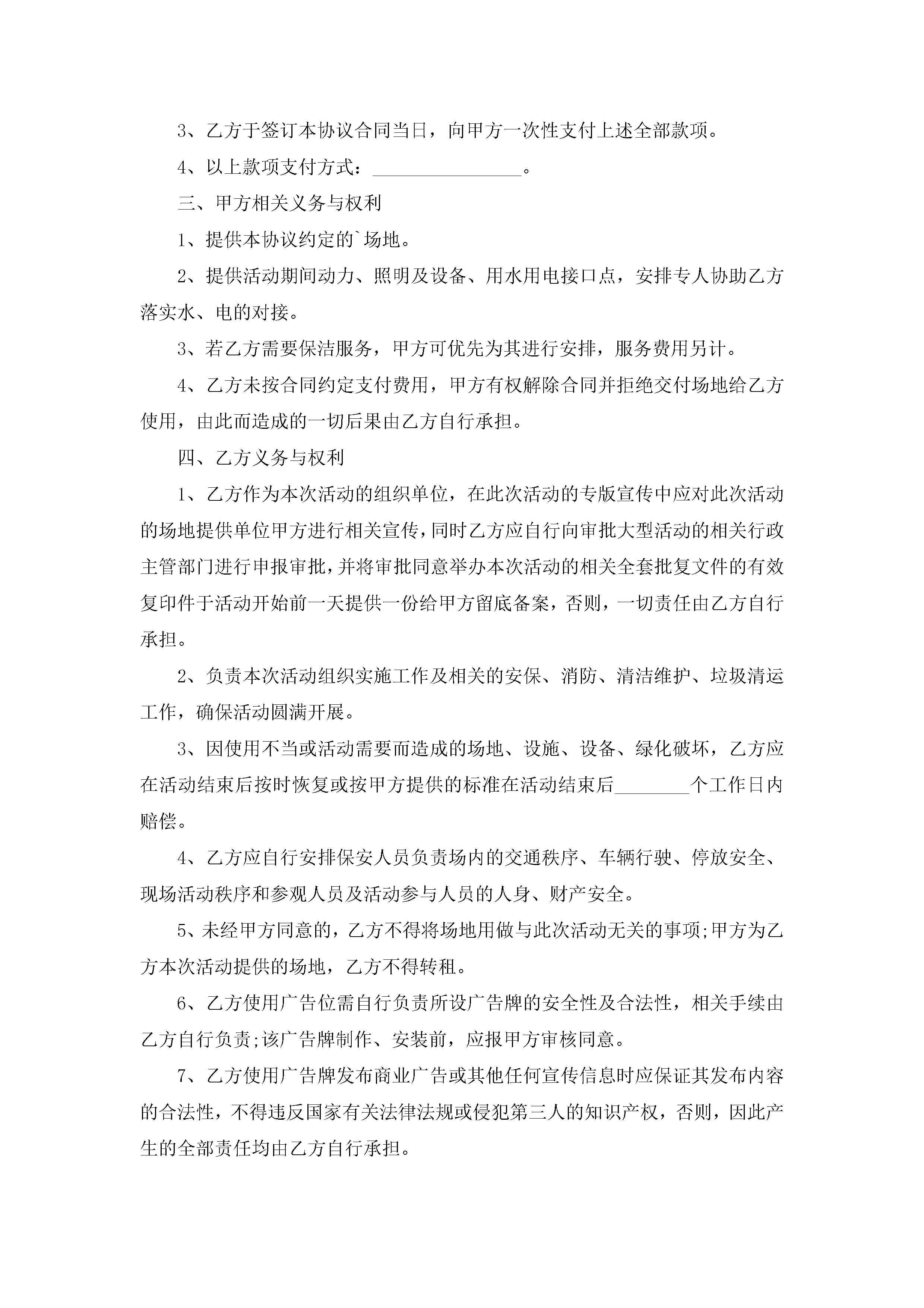 关于单位场地租赁合同范文jugei3月23日 01:41发布关注186 关于单位场地租赁合同范文此内容为付费资源,请付费后查看¥10.9 单篇文档限时特惠¥15个人会员开通企业会员开通立即下载无需登陆!可直接快捷下载单个模板付费资源© 版权声明THE ENDWord模板# 实用文档# 实用模板# 合同模板# 租赁合同 如有问题,可点击最底部“联系我们”联系客服 分享QQ空间微博QQ好友海报分享复制链接收藏