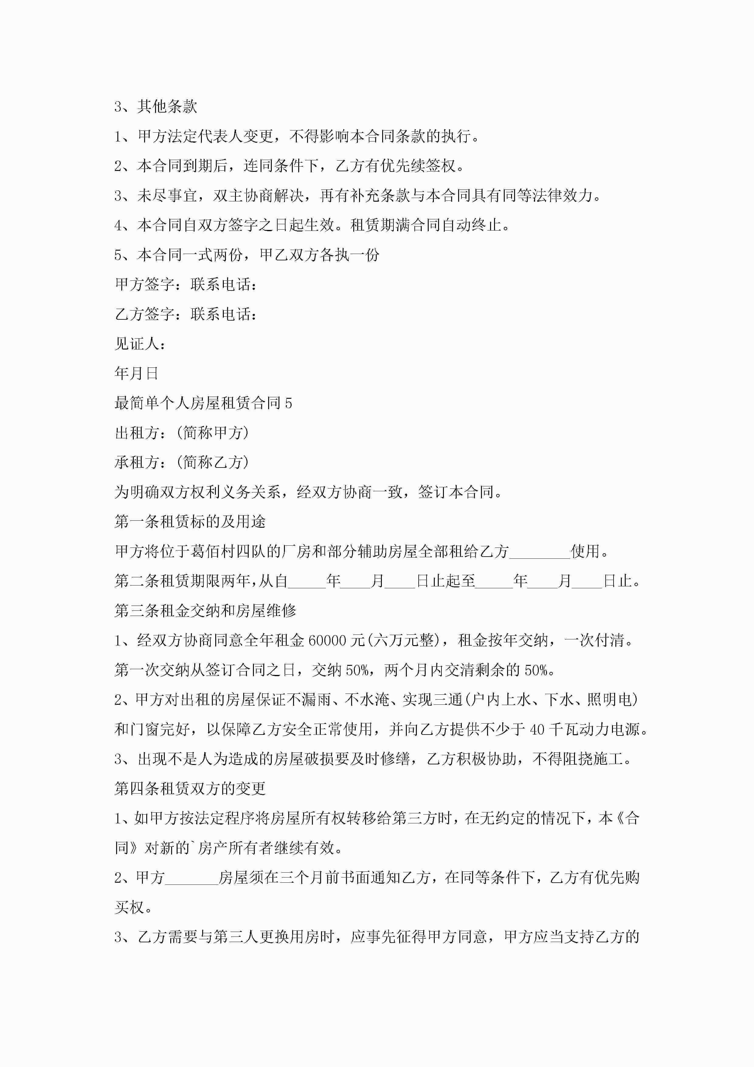 最简单个人房屋租赁合同5篇jugei3月23日 01:41发布关注203 最简单个人房屋租赁合同5篇此内容为付费资源,请付费后查看¥10.9 单篇文档限时特惠¥15个人会员开通企业会员开通立即下载无需登陆!可直接快捷下载单个模板付费资源© 版权声明THE ENDWord模板# 实用文档# 实用模板# 合同模板# 租赁合同 如有问题,可点击最底部“联系我们”联系客服 分享QQ空间微博QQ好友海报分享复制链接收藏