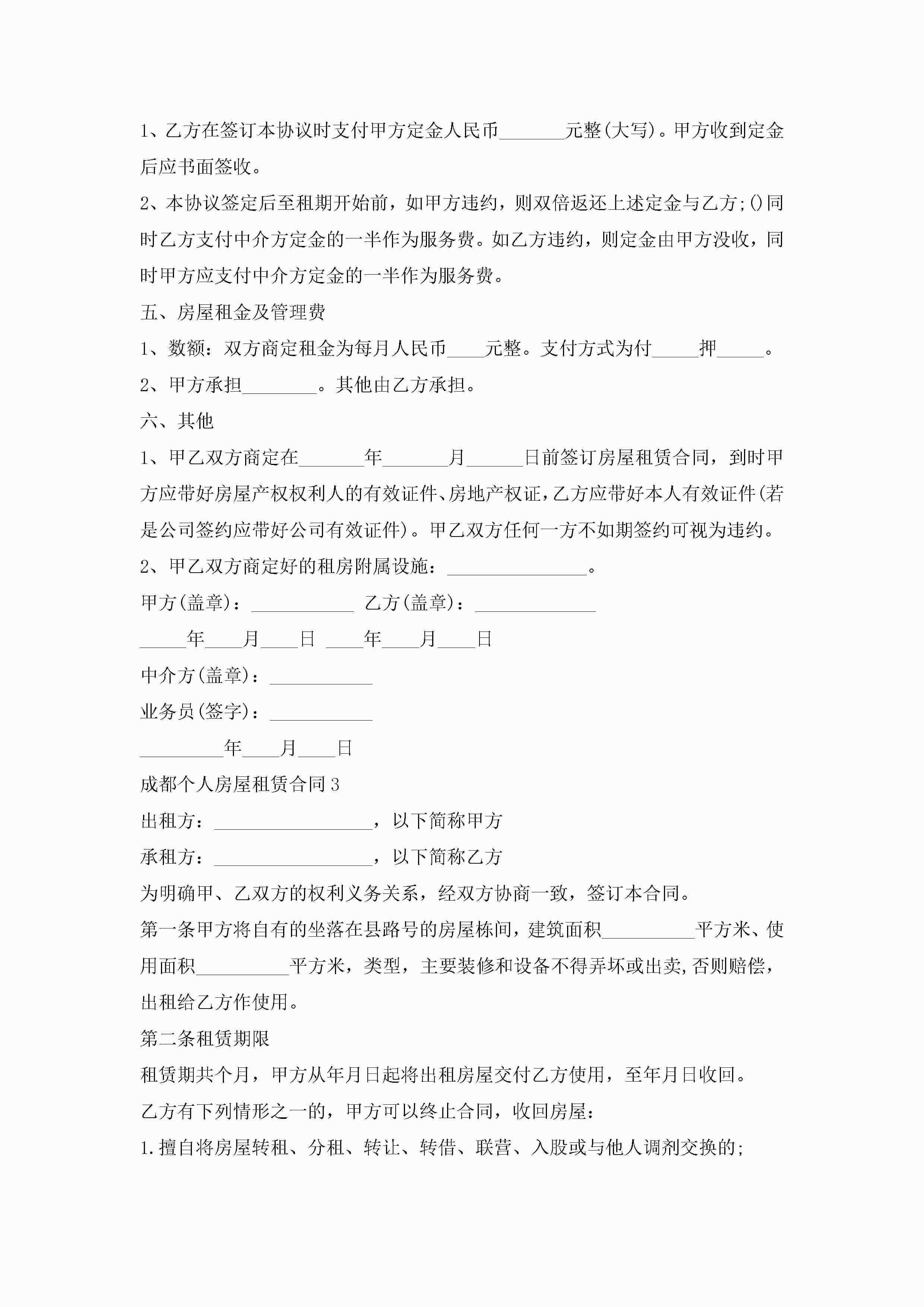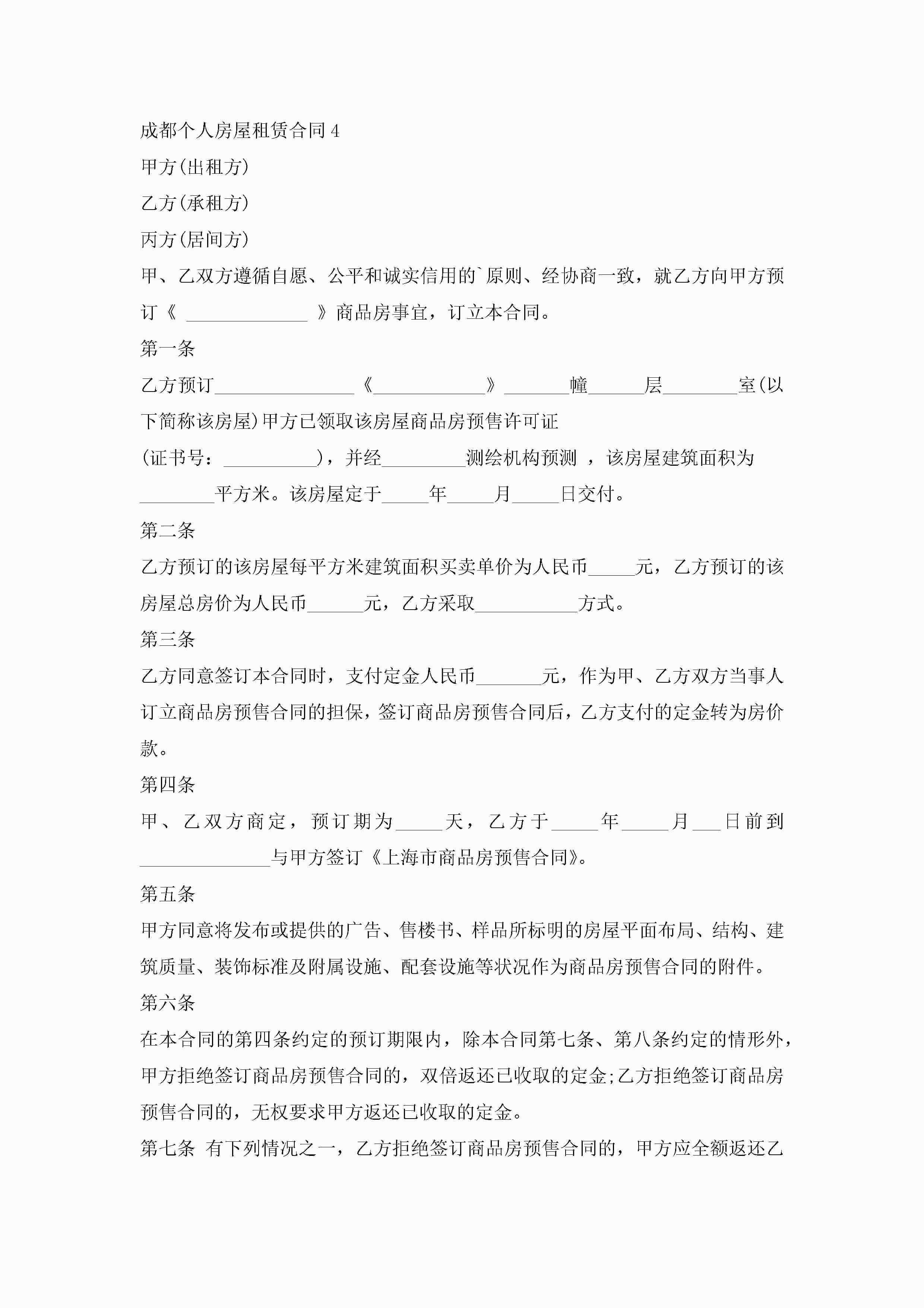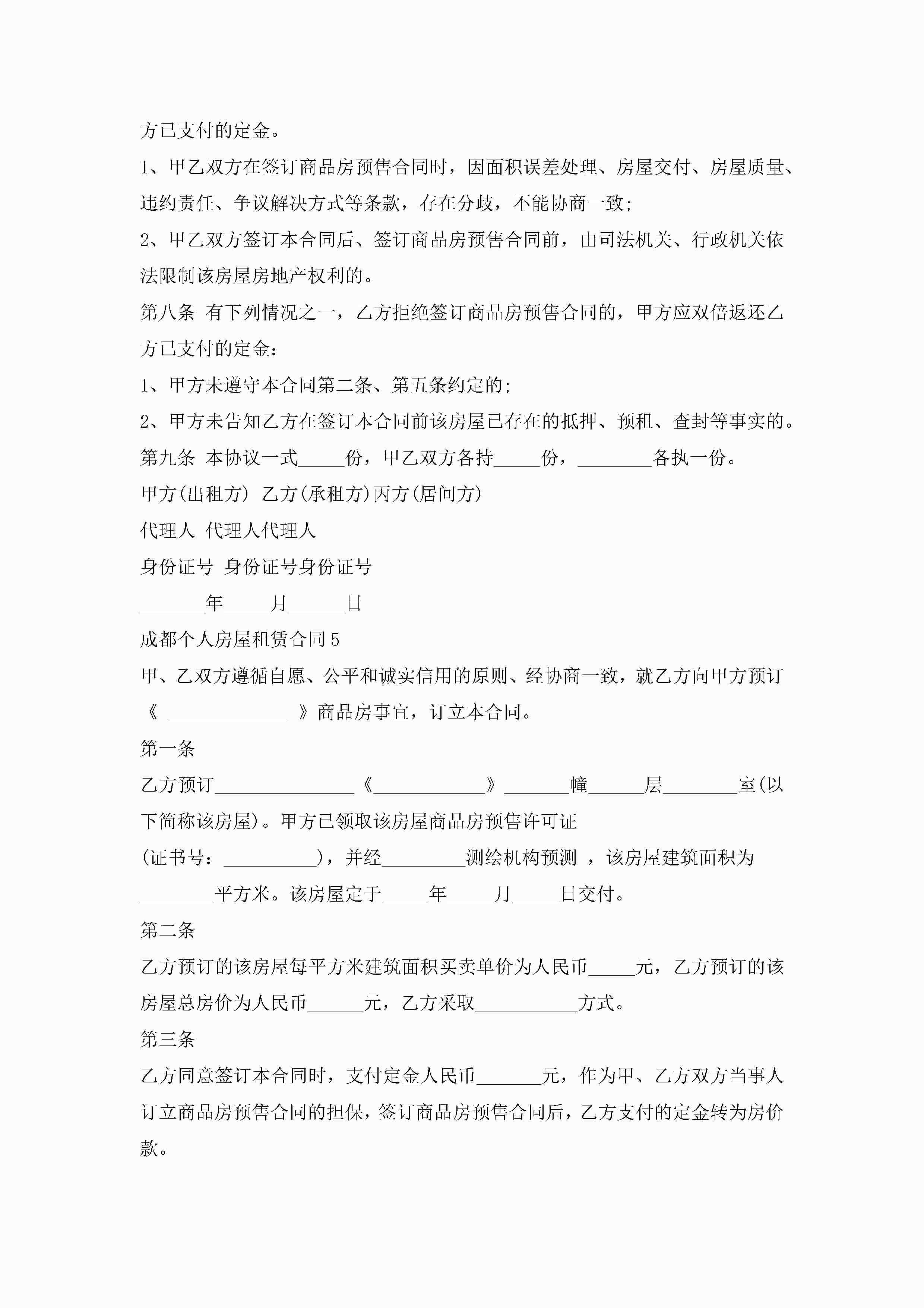 成都个人房屋租赁合同5篇jugei3月23日 01:41发布关注190 成都个人房屋租赁合同5篇此内容为付费资源,请付费后查看¥10.9 单篇文档限时特惠¥15个人会员开通企业会员开通立即下载无需登陆!可直接快捷下载单个模板付费资源© 版权声明THE ENDWord模板# 实用文档# 实用模板# 合同模板# 租赁合同 如有问题,可点击最底部“联系我们”联系客服 分享QQ空间微博QQ好友海报分享复制链接收藏