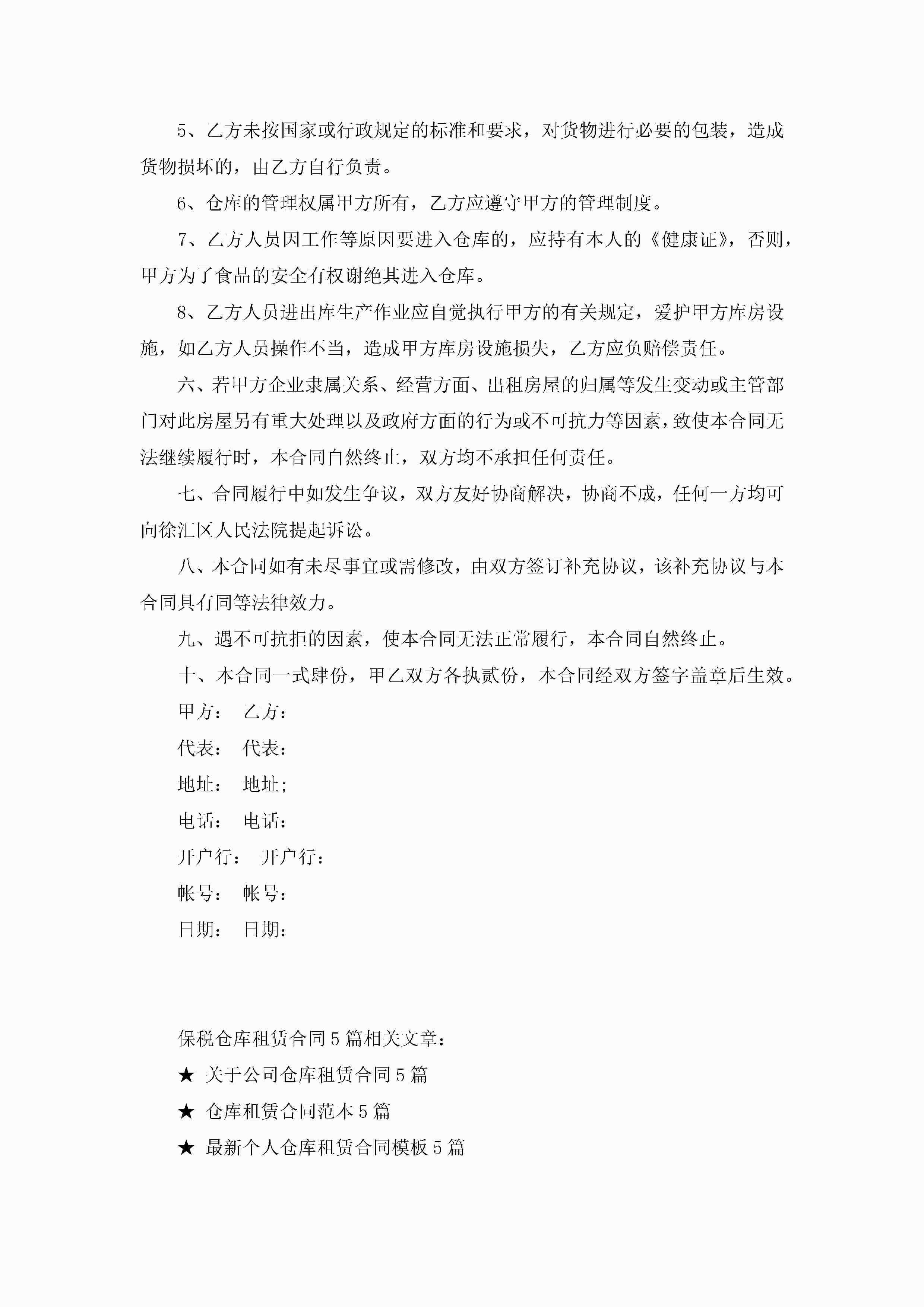 关于保税仓库租赁合同5篇jugei3月23日 01:41发布关注237 关于保税仓库租赁合同5篇此内容为付费资源,请付费后查看¥10.9 单篇文档限时特惠¥15个人会员开通企业会员开通立即下载无需登陆!可直接快捷下载单个模板付费资源© 版权声明THE ENDWord模板# 实用文档# 实用模板# 合同模板# 租赁合同 如有问题,可点击最底部“联系我们”联系客服 分享QQ空间微博QQ好友海报分享复制链接收藏