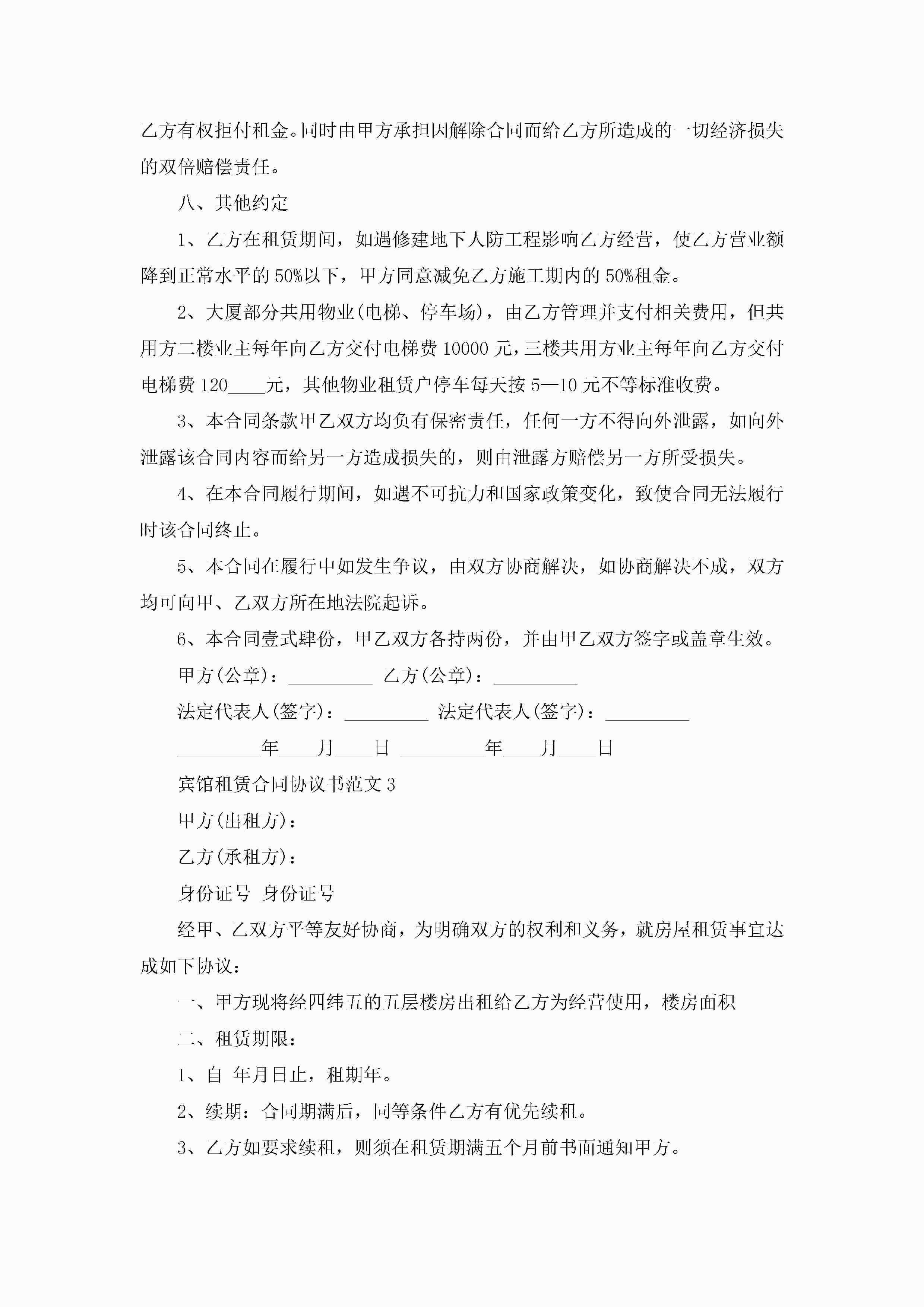 宾馆租赁合同协议书范文5篇jugei3月23日 01:41发布关注207 宾馆租赁合同协议书范文5篇此内容为付费资源,请付费后查看¥10.9 单篇文档限时特惠¥15个人会员开通企业会员开通立即下载无需登陆!可直接快捷下载单个模板付费资源© 版权声明THE ENDWord模板# 实用文档# 实用模板# 合同模板# 租赁合同 如有问题,可点击最底部“联系我们”联系客服 分享QQ空间微博QQ好友海报分享复制链接收藏
