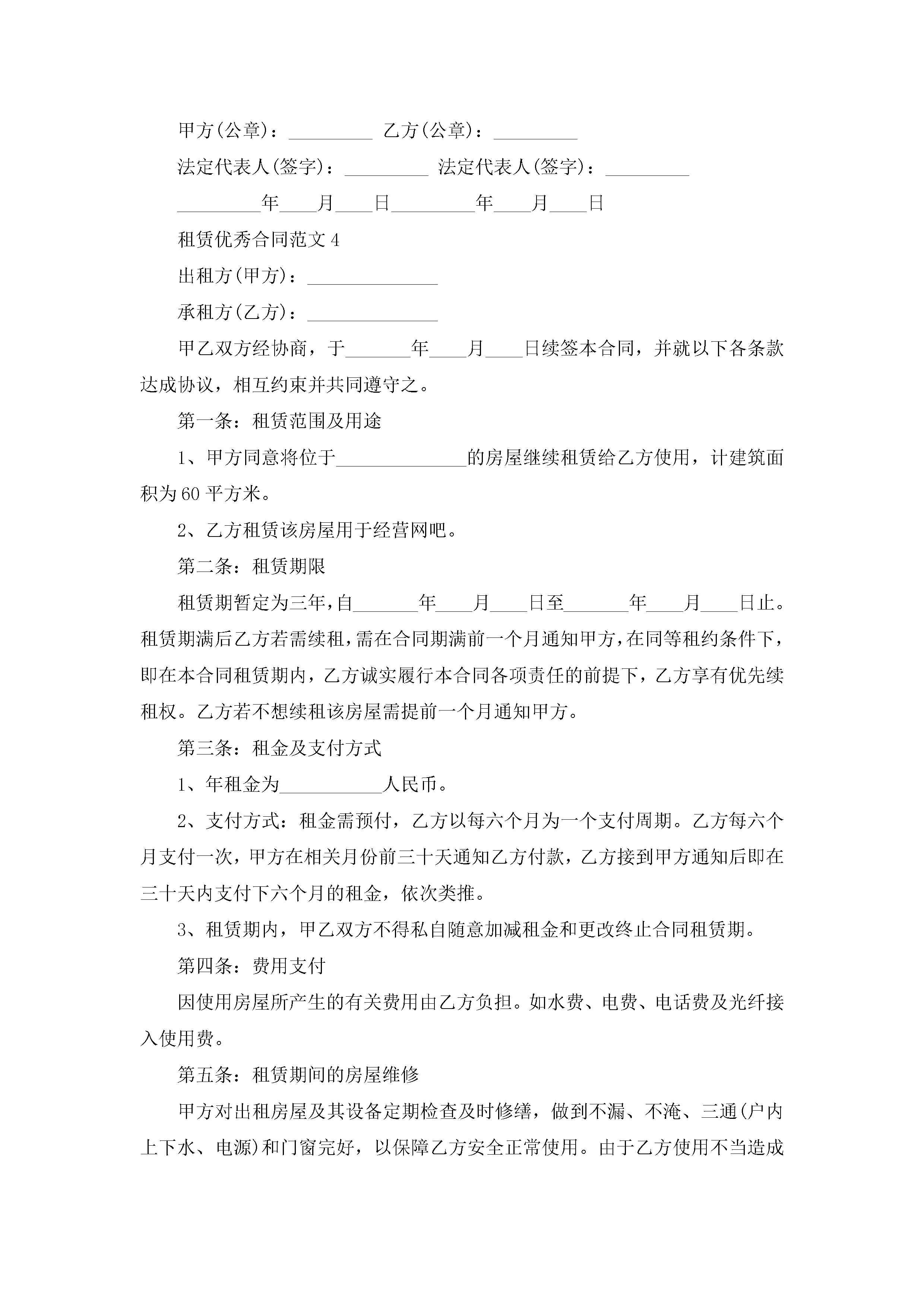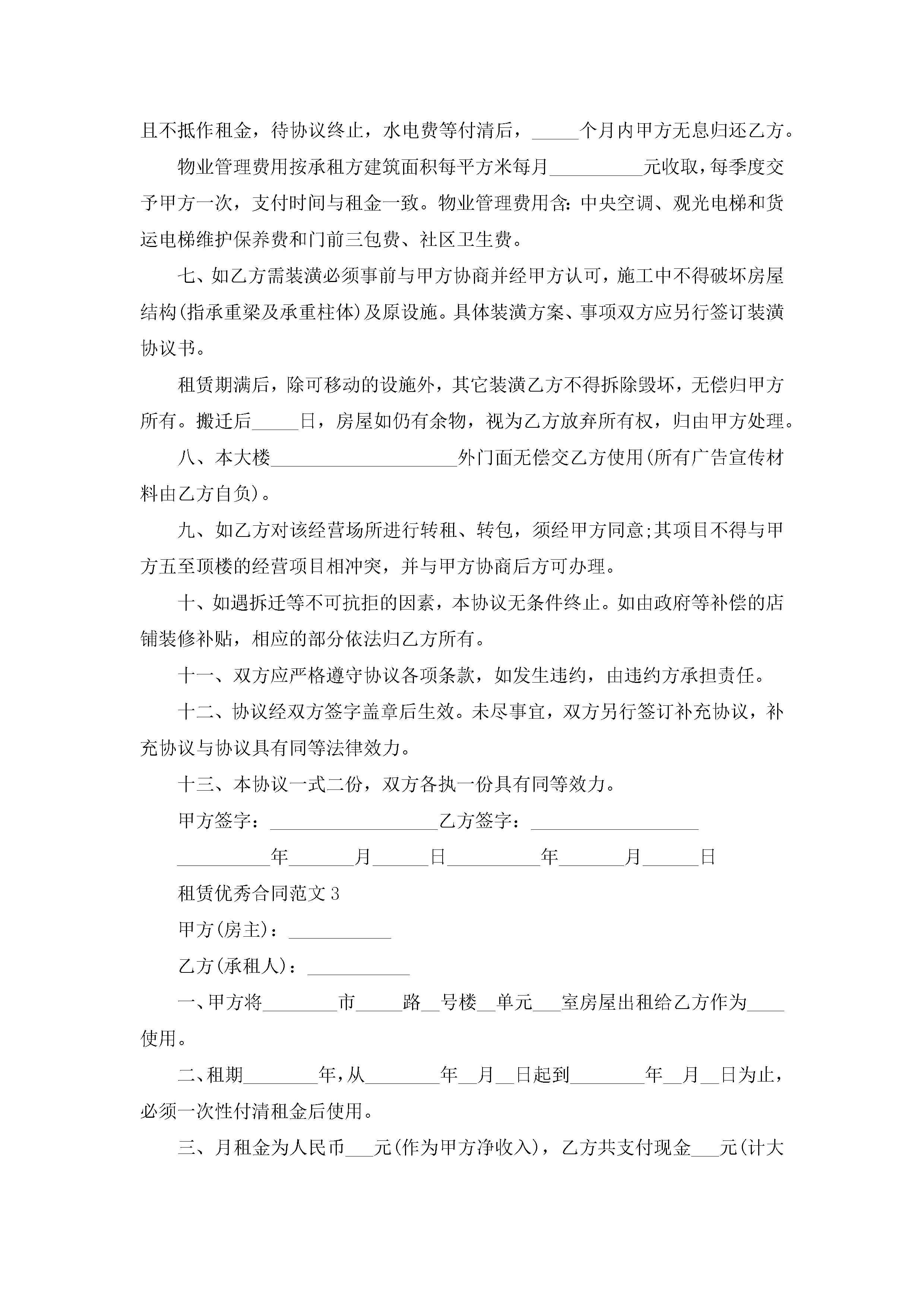 租赁优秀合同范文5篇jugei3月23日 01:41发布关注240 租赁优秀合同范文5篇此内容为付费资源,请付费后查看¥10.9 单篇文档限时特惠¥15个人会员开通企业会员开通立即下载无需登陆!可直接快捷下载单个模板付费资源© 版权声明THE ENDWord模板# 实用文档# 实用模板# 合同模板# 租赁合同 如有问题,可点击最底部“联系我们”联系客服 分享QQ空间微博QQ好友海报分享复制链接收藏