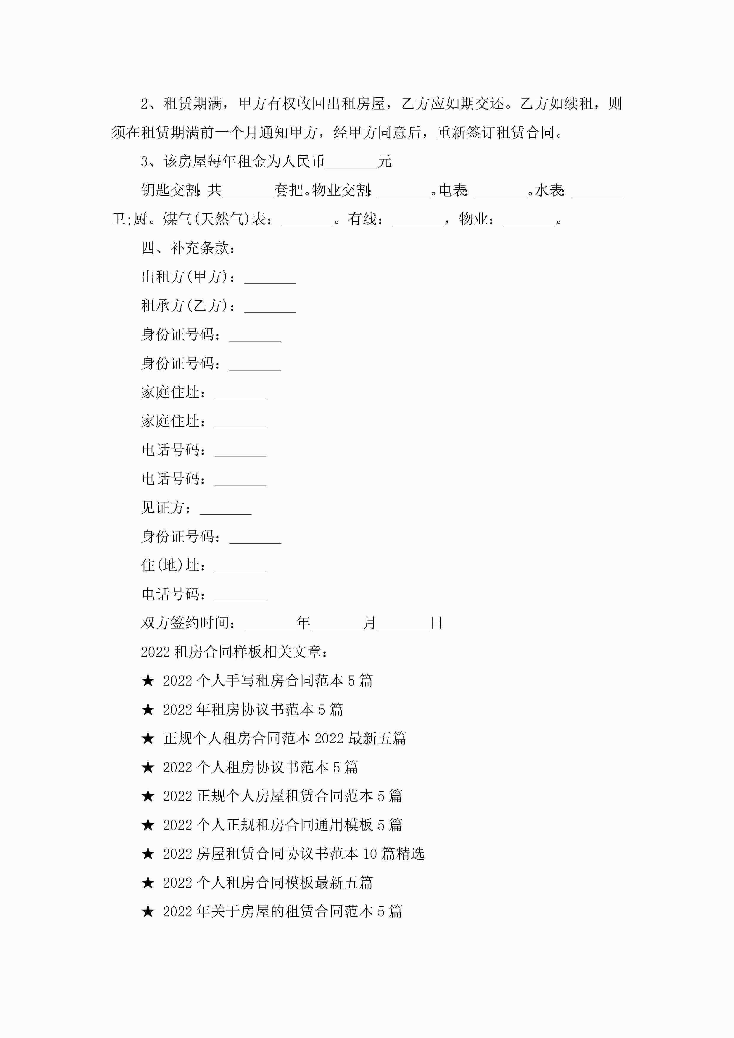 2022租房合同样板通用jugei3月23日 01:41发布关注185 2022租房合同样板通用此内容为付费资源,请付费后查看¥10.9 单篇文档限时特惠¥15个人会员开通企业会员开通立即下载无需登陆!可直接快捷下载单个模板付费资源© 版权声明THE ENDWord模板# 实用文档# 实用模板# 合同模板# 租赁合同 如有问题,可点击最底部“联系我们”联系客服 分享QQ空间微博QQ好友海报分享复制链接收藏