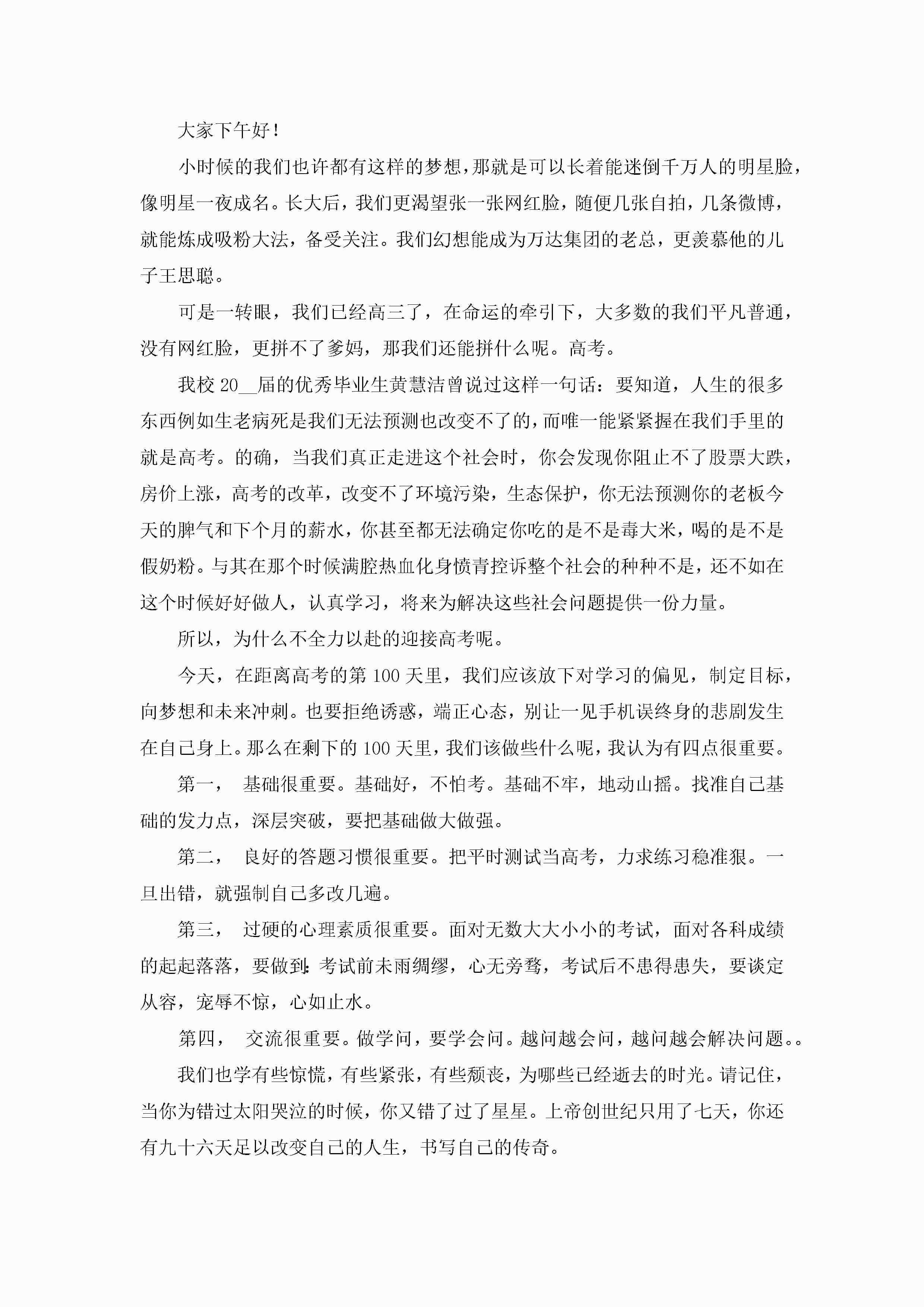 百日誓师高三励志霸气讲话稿范文【10篇】jugei3月23日 01:41发布关注198 百日誓师高三励志霸气讲话稿范文【10篇】此内容为付费资源,请付费后查看¥10.9 单篇文档限时特惠¥15个人会员开通企业会员开通立即下载无需登陆!可直接快捷下载单个模板付费资源© 版权声明THE ENDWord模板# 实用文档# 演讲稿# 经典演讲稿# 百日誓师高三励志霸气讲话稿10篇 如有问题,可点击最底部“联系我们”联系客服 分享QQ空间微博QQ好友海报分享复制链接收藏