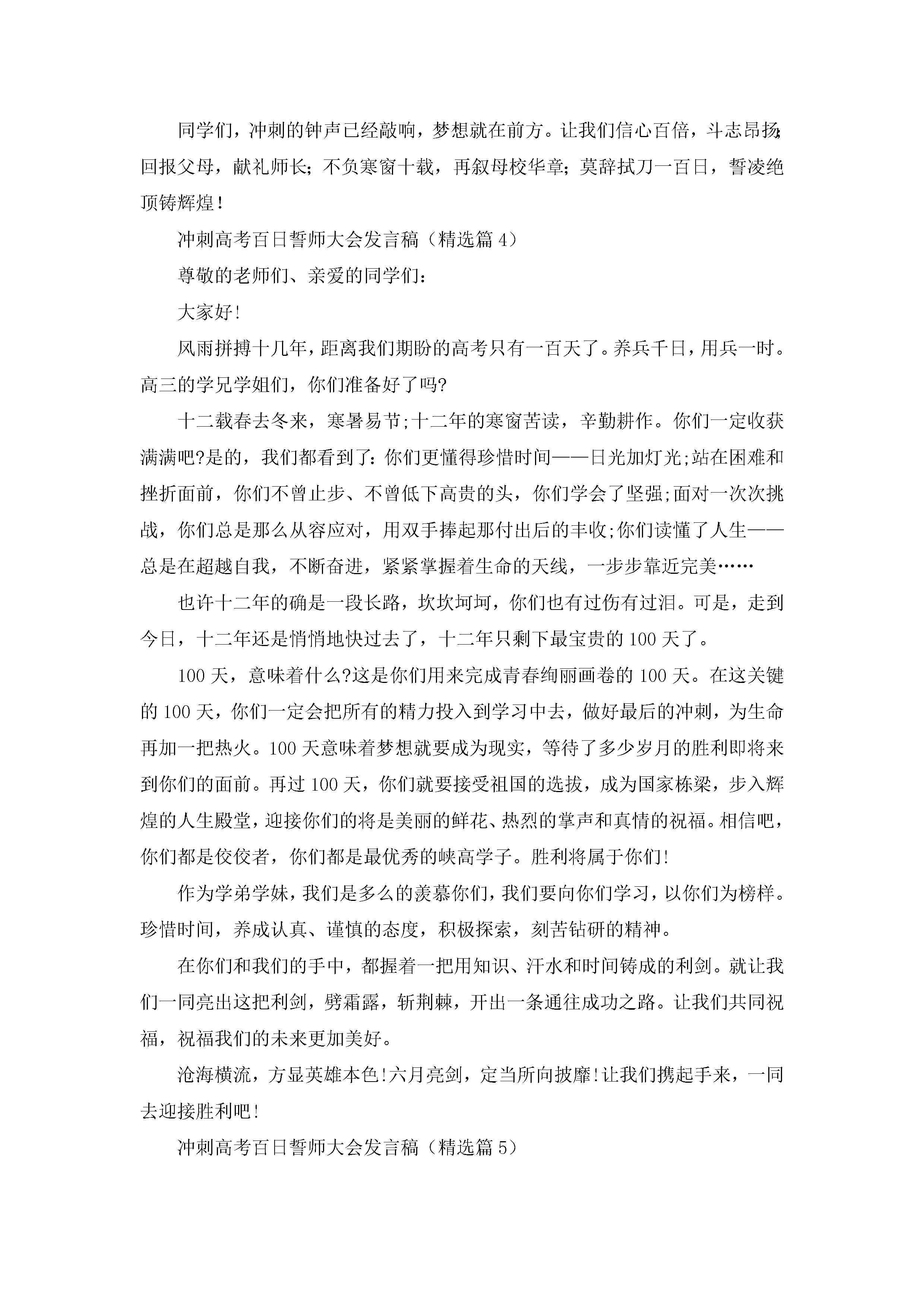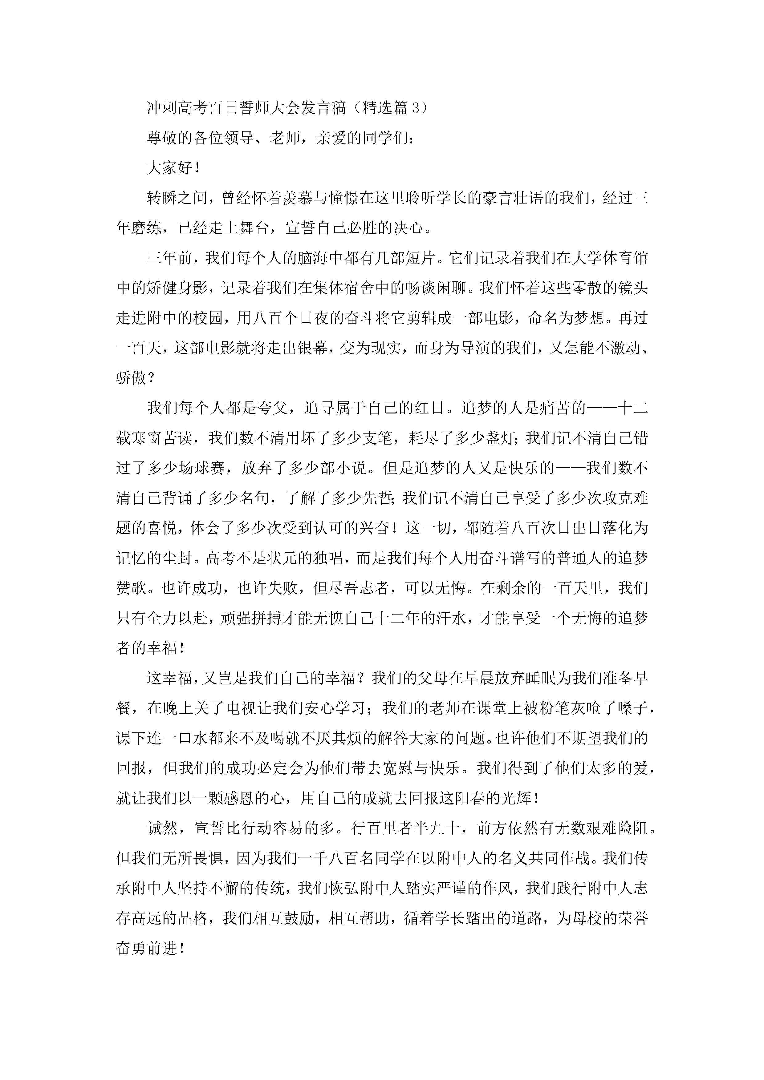 冲刺高考百日誓师大会发言稿精选(12篇)jugei3月23日 01:41发布关注198 冲刺高考百日誓师大会发言稿精选(12篇)此内容为付费资源,请付费后查看¥10.9 单篇文档限时特惠¥15个人会员开通企业会员开通立即下载无需登陆!可直接快捷下载单个模板付费资源© 版权声明THE ENDWord模板# 实用文档# 演讲稿# 经典演讲稿# 冲刺高考百日誓师大会发言稿12篇 如有问题,可点击最底部“联系我们”联系客服 分享QQ空间微博QQ好友海报分享复制链接收藏