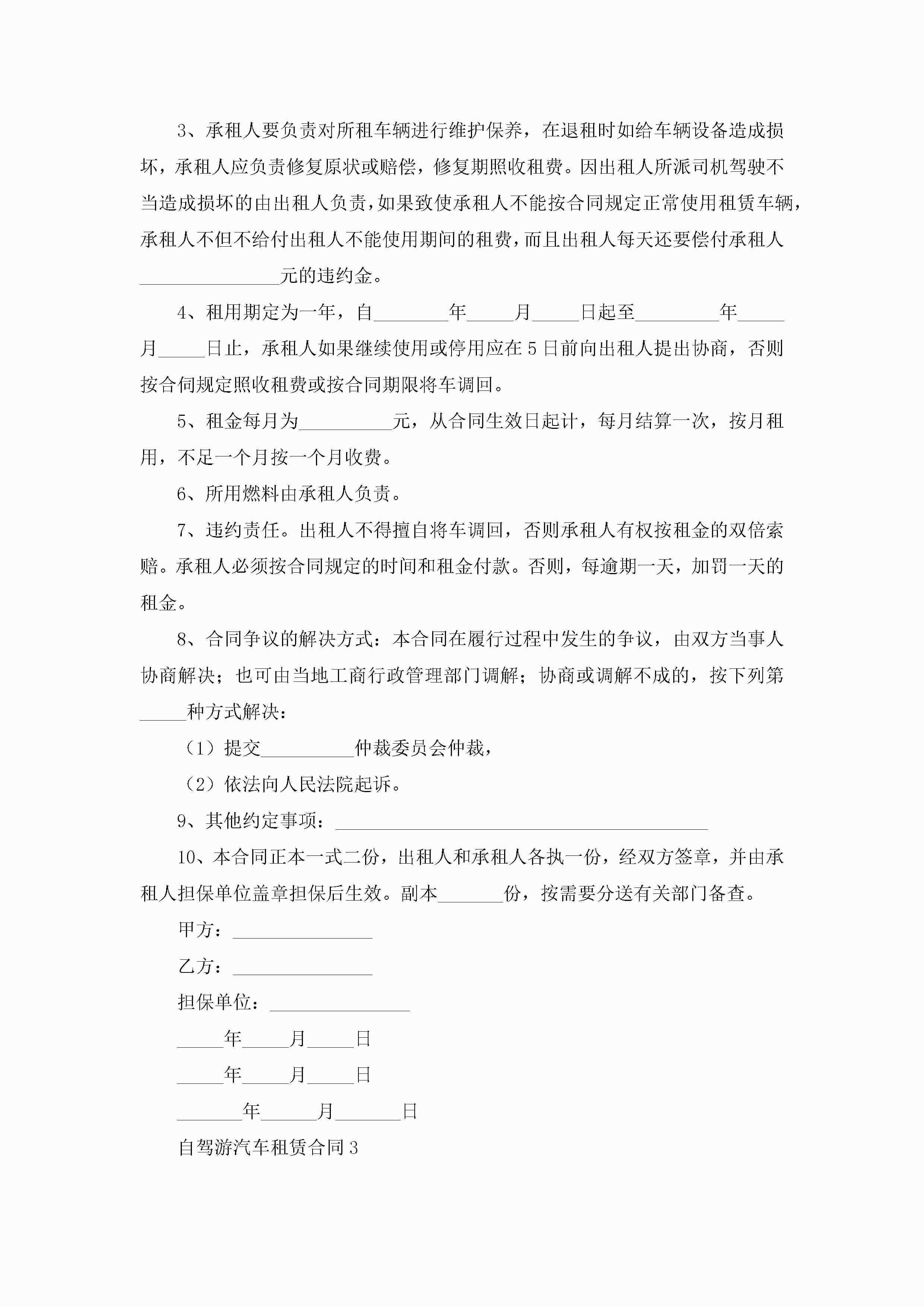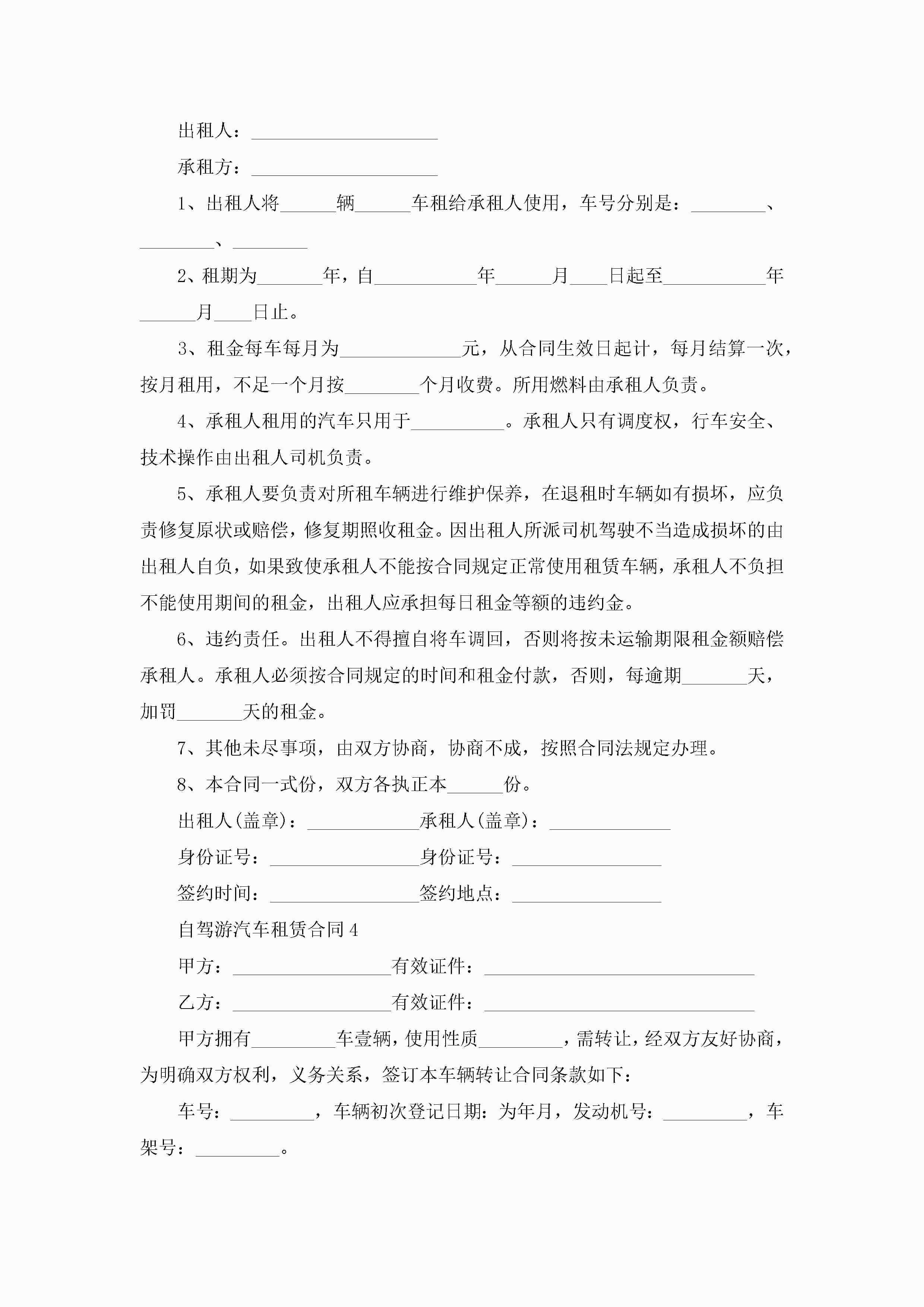 自驾游汽车租赁合同5篇jugei3月23日 01:41发布关注267 自驾游汽车租赁合同5篇此内容为付费资源,请付费后查看¥10.9 单篇文档限时特惠¥15个人会员开通企业会员开通立即下载无需登陆!可直接快捷下载单个模板付费资源© 版权声明THE ENDWord模板# 实用文档# 实用模板# 合同模板# 租赁合同 如有问题,可点击最底部“联系我们”联系客服 分享QQ空间微博QQ好友海报分享复制链接收藏