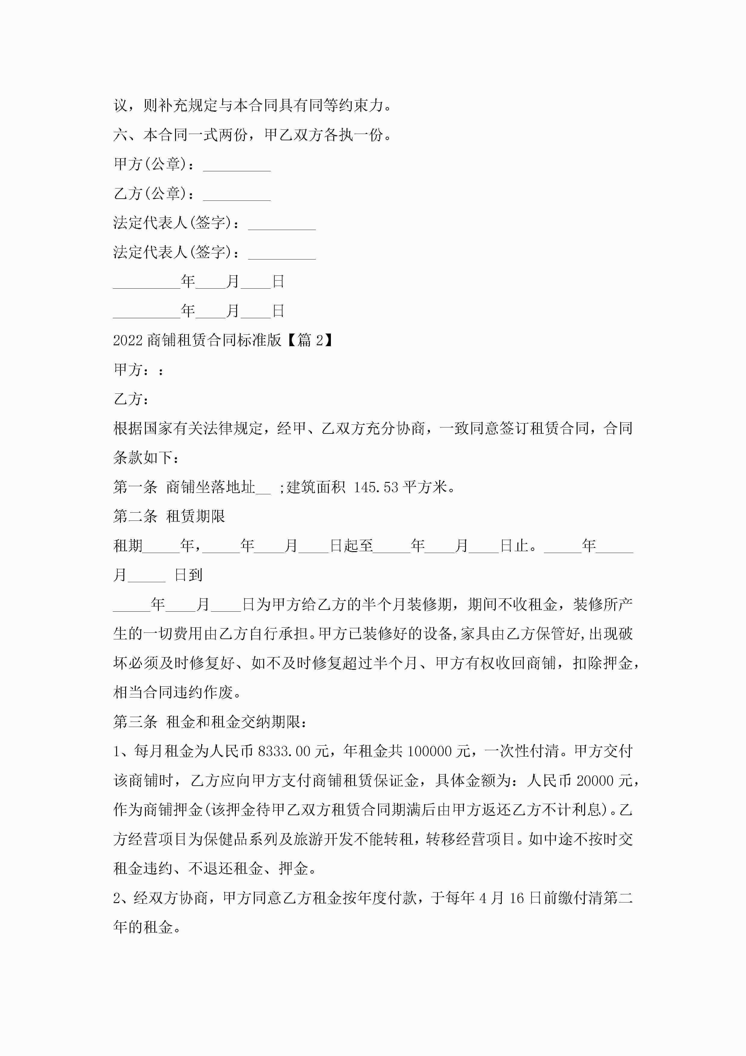 2022商铺租赁合同标准版精选5篇jugei3月23日 01:41发布关注189 2022商铺租赁合同标准版精选5篇此内容为付费资源,请付费后查看¥10.9 单篇文档限时特惠¥15个人会员开通企业会员开通立即下载无需登陆!可直接快捷下载单个模板付费资源© 版权声明THE ENDWord模板# 实用文档# 实用模板# 合同模板# 租赁合同 如有问题,可点击最底部“联系我们”联系客服 分享QQ空间微博QQ好友海报分享复制链接收藏