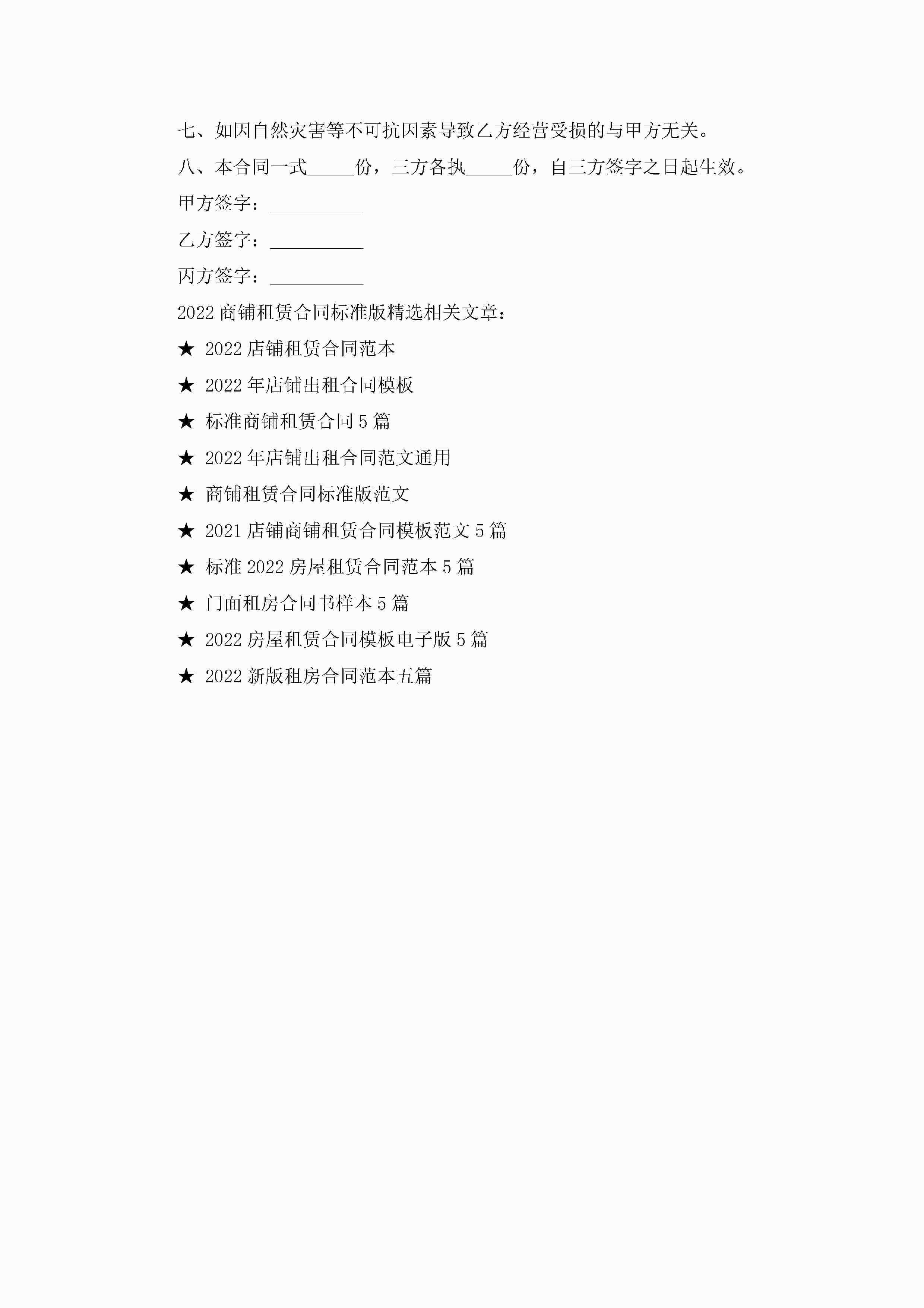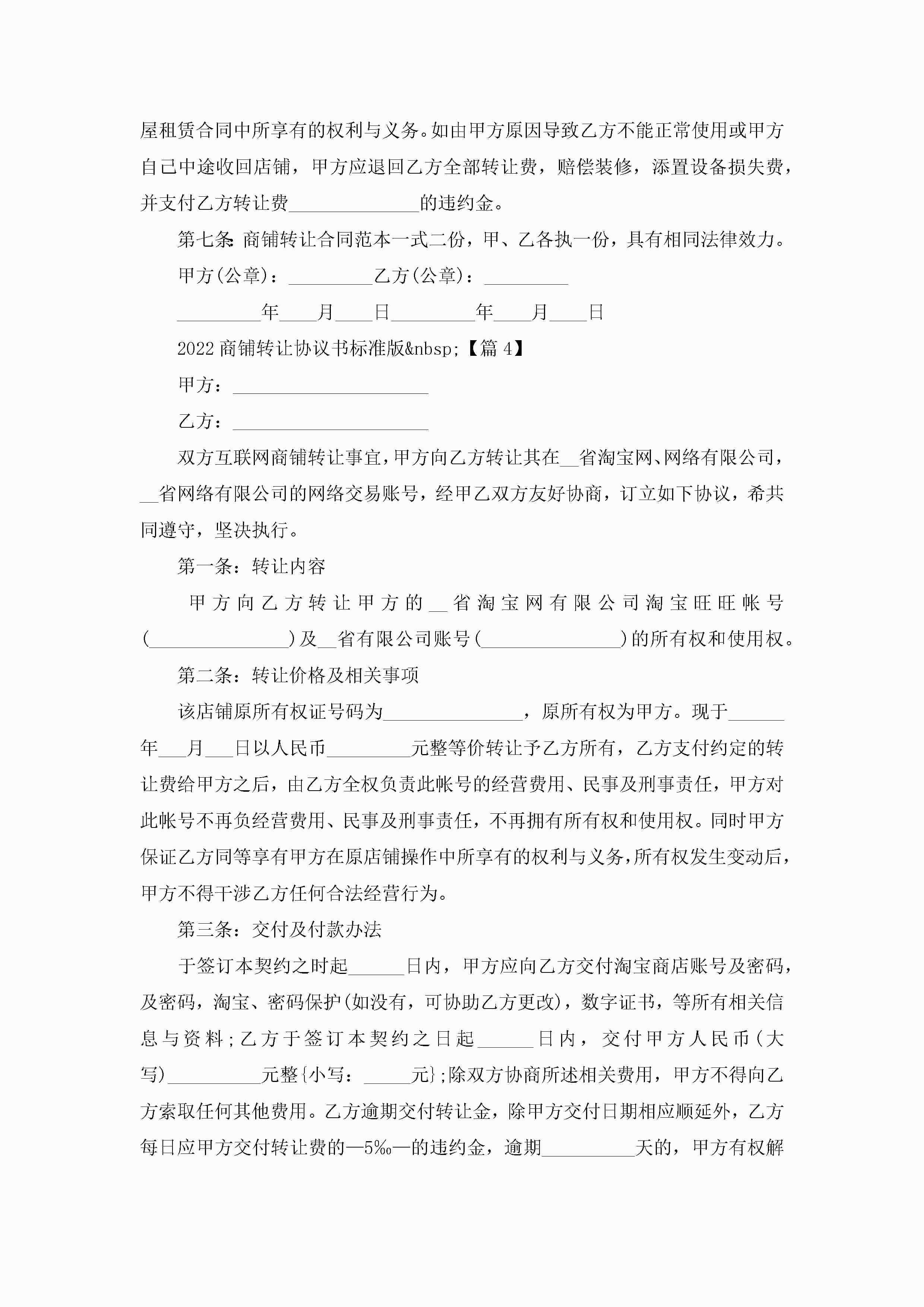 2022商铺转让协议书标准版精选5篇jugei3月23日 01:41发布关注235 2022商铺转让协议书标准版精选5篇此内容为付费资源,请付费后查看¥10.9 单篇文档限时特惠¥15个人会员开通企业会员开通立即下载无需登陆!可直接快捷下载单个模板付费资源© 版权声明THE ENDWord模板# 实用文档# 实用模板# 合同模板# 租赁合同 如有问题,可点击最底部“联系我们”联系客服 分享QQ空间微博QQ好友海报分享复制链接收藏