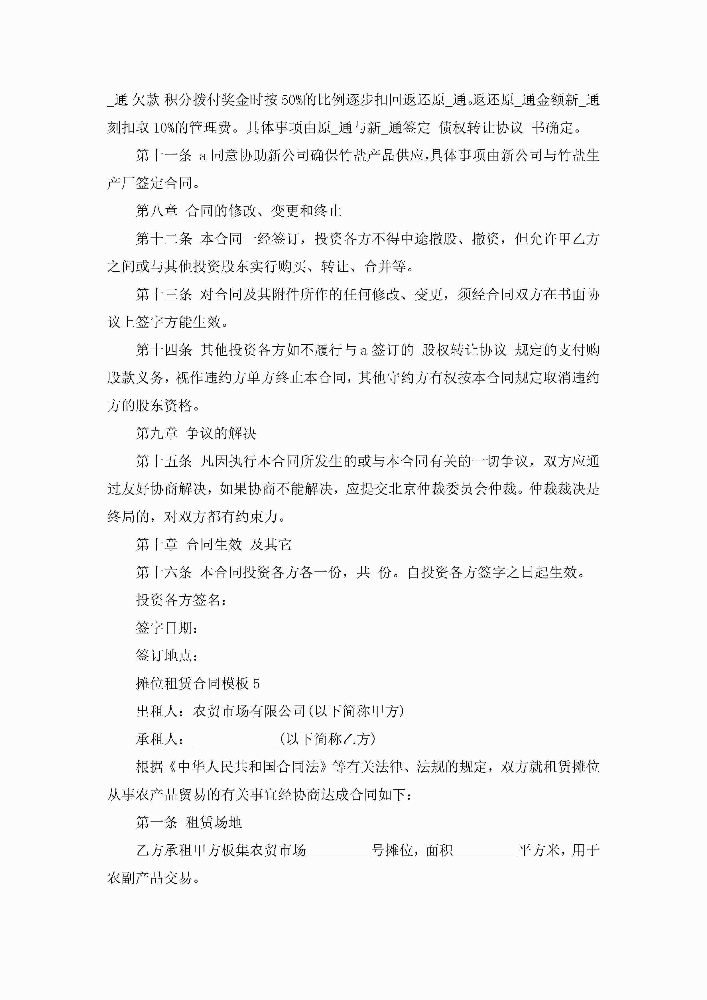 关于摊位租赁合同模板8篇jugei3月23日 01:41发布关注187 关于摊位租赁合同模板8篇此内容为付费资源,请付费后查看¥10.9 单篇文档限时特惠¥15个人会员开通企业会员开通立即下载无需登陆!可直接快捷下载单个模板付费资源© 版权声明THE ENDWord模板# 实用文档# 合同模板# 租赁合同# 摊位租赁合同模板8篇 如有问题,可点击最底部“联系我们”联系客服 分享QQ空间微博QQ好友海报分享复制链接收藏