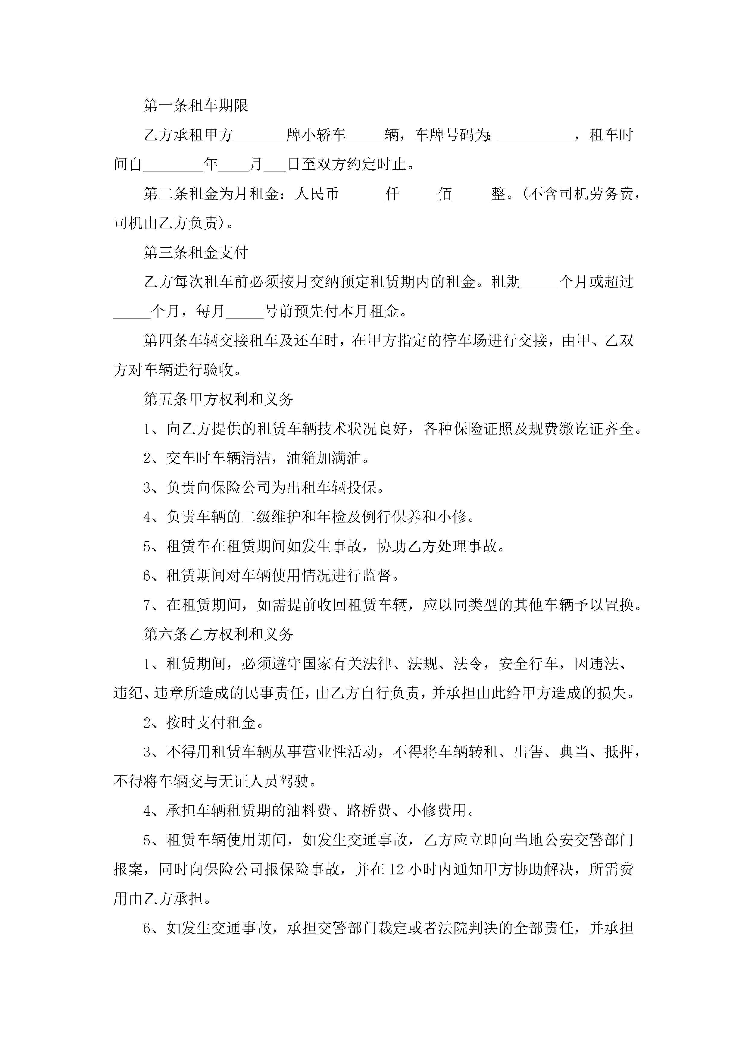 汽车租赁协议书最新范本jugei3月23日 01:41发布关注247 汽车租赁协议书最新范本此内容为付费资源,请付费后查看¥10.9 单篇文档限时特惠¥15个人会员开通企业会员开通立即下载无需登陆!可直接快捷下载单个模板付费资源© 版权声明THE ENDWord模板# 实用文档# 实用模板# 合同模板# 租赁合同 如有问题,可点击最底部“联系我们”联系客服 分享QQ空间微博QQ好友海报分享复制链接收藏