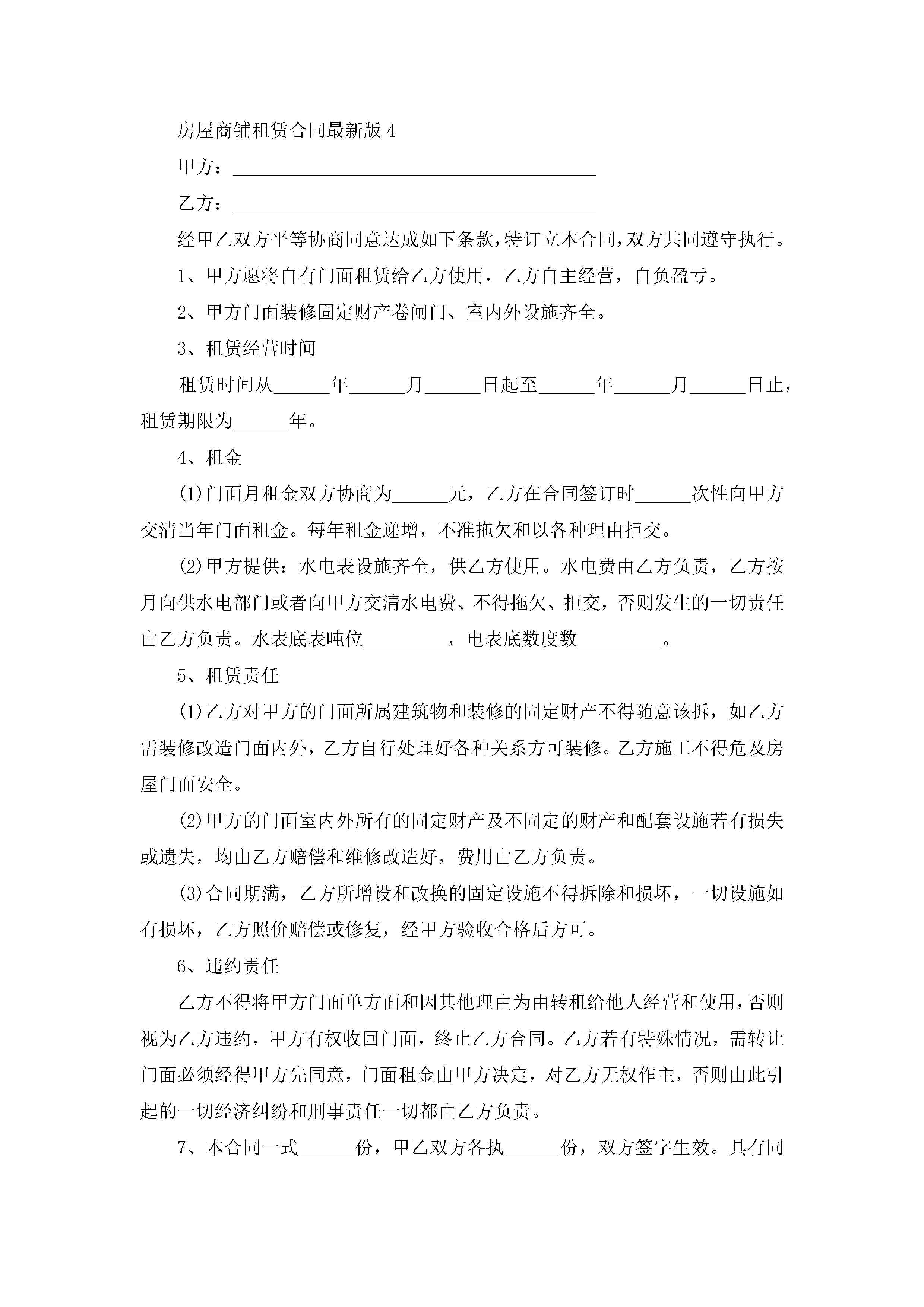 关于房屋商铺租赁合同最新版8篇jugei3月23日 01:41发布关注185 关于房屋商铺租赁合同最新版8篇此内容为付费资源,请付费后查看¥10.9 单篇文档限时特惠¥15个人会员开通企业会员开通立即下载无需登陆!可直接快捷下载单个模板付费资源© 版权声明THE ENDWord模板# 实用文档# 合同模板# 租赁合同# 房屋商铺租赁合同最新版8篇 如有问题,可点击最底部“联系我们”联系客服 分享QQ空间微博QQ好友海报分享复制链接收藏