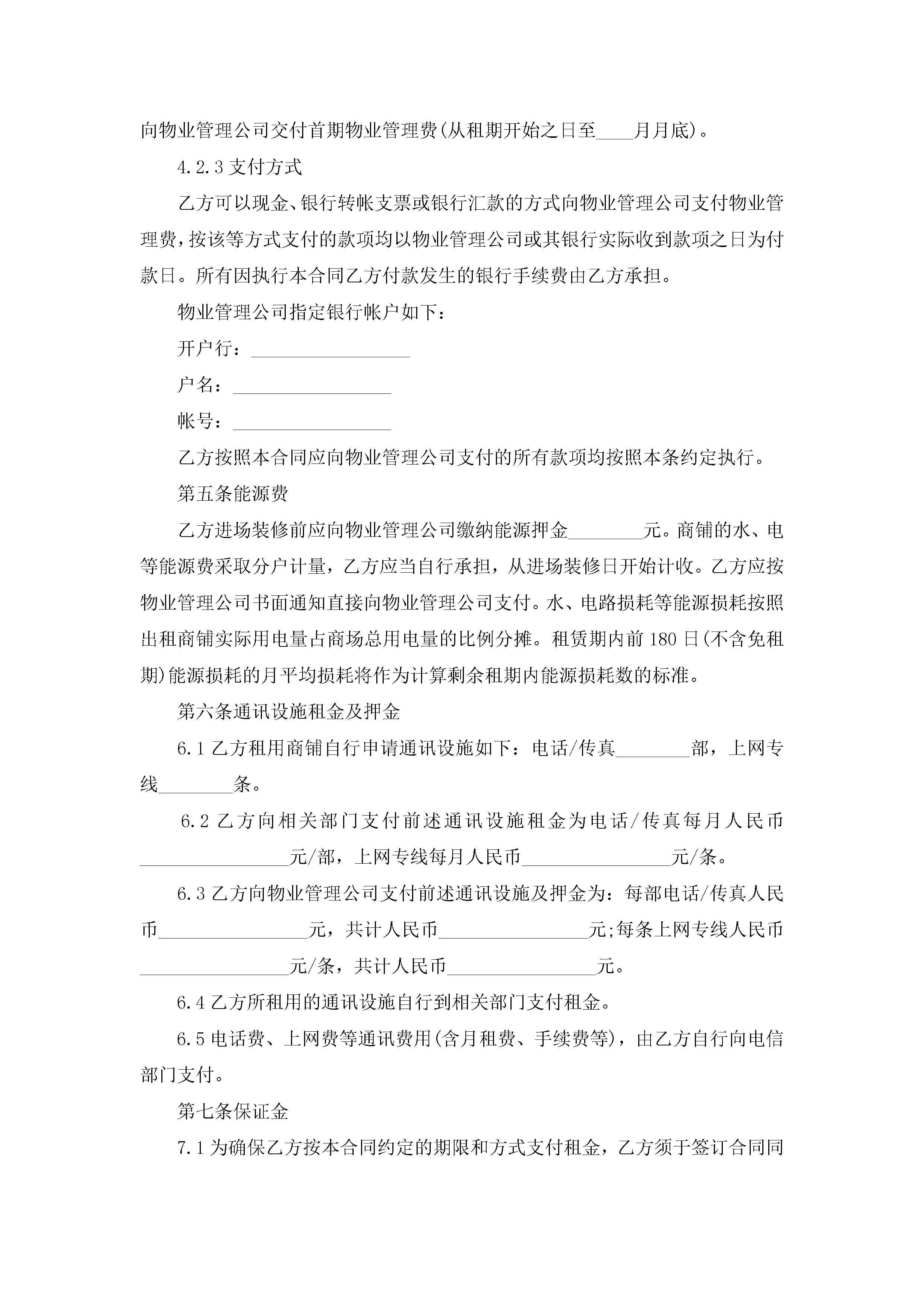 关于商场商铺租赁合同模板8篇jugei3月23日 01:41发布关注195 关于商场商铺租赁合同模板8篇此内容为付费资源,请付费后查看¥10.9 单篇文档限时特惠¥15个人会员开通企业会员开通立即下载无需登陆!可直接快捷下载单个模板付费资源© 版权声明THE ENDWord模板# 实用文档# 合同模板# 租赁合同# 商场商铺租赁合同模板8篇 如有问题,可点击最底部“联系我们”联系客服 分享QQ空间微博QQ好友海报分享复制链接收藏