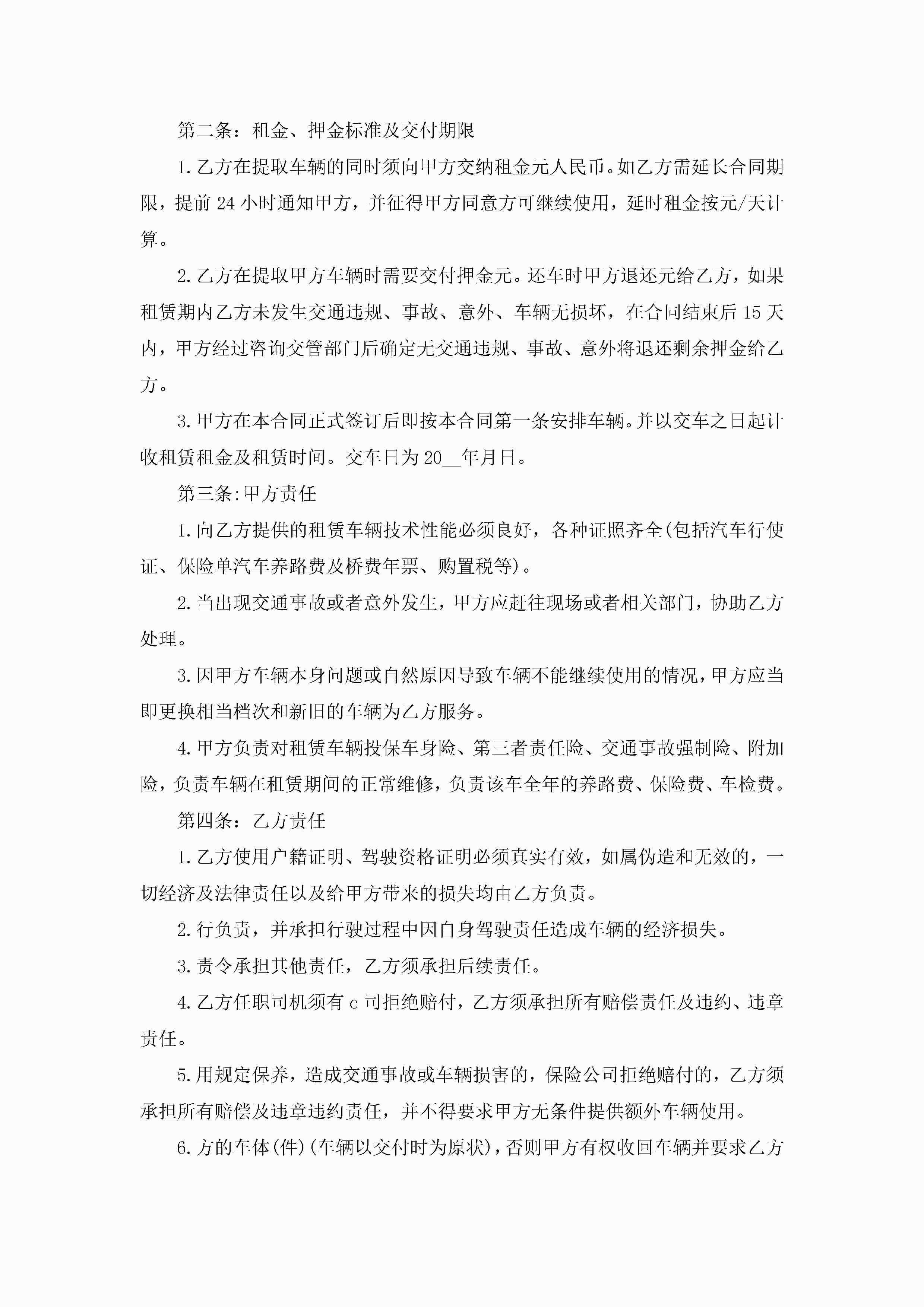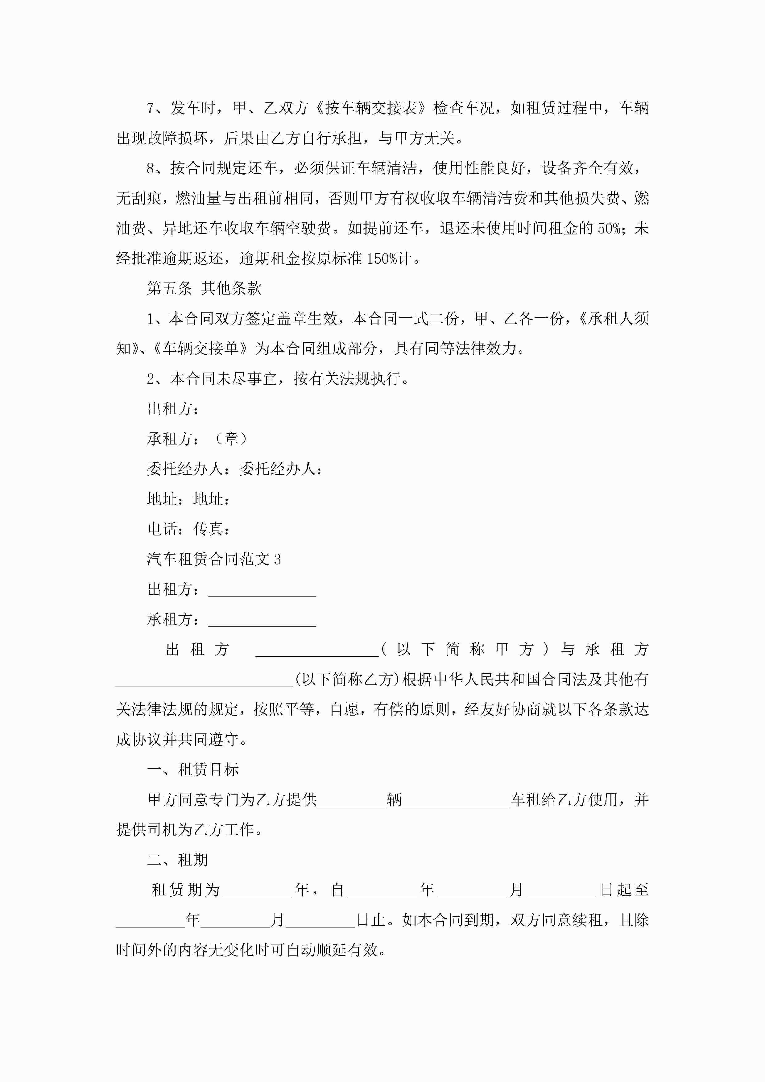 汽车租赁合同范文10篇(精选)jugei3月23日 01:41发布关注189 汽车租赁合同范文10篇(精选)此内容为付费资源,请付费后查看¥10.9 单篇文档限时特惠¥15个人会员开通企业会员开通立即下载无需登陆!可直接快捷下载单个模板付费资源© 版权声明THE ENDWord模板# 实用文档# 实用模板# 合同模板# 租赁合同 如有问题,可点击最底部“联系我们”联系客服 分享QQ空间微博QQ好友海报分享复制链接收藏