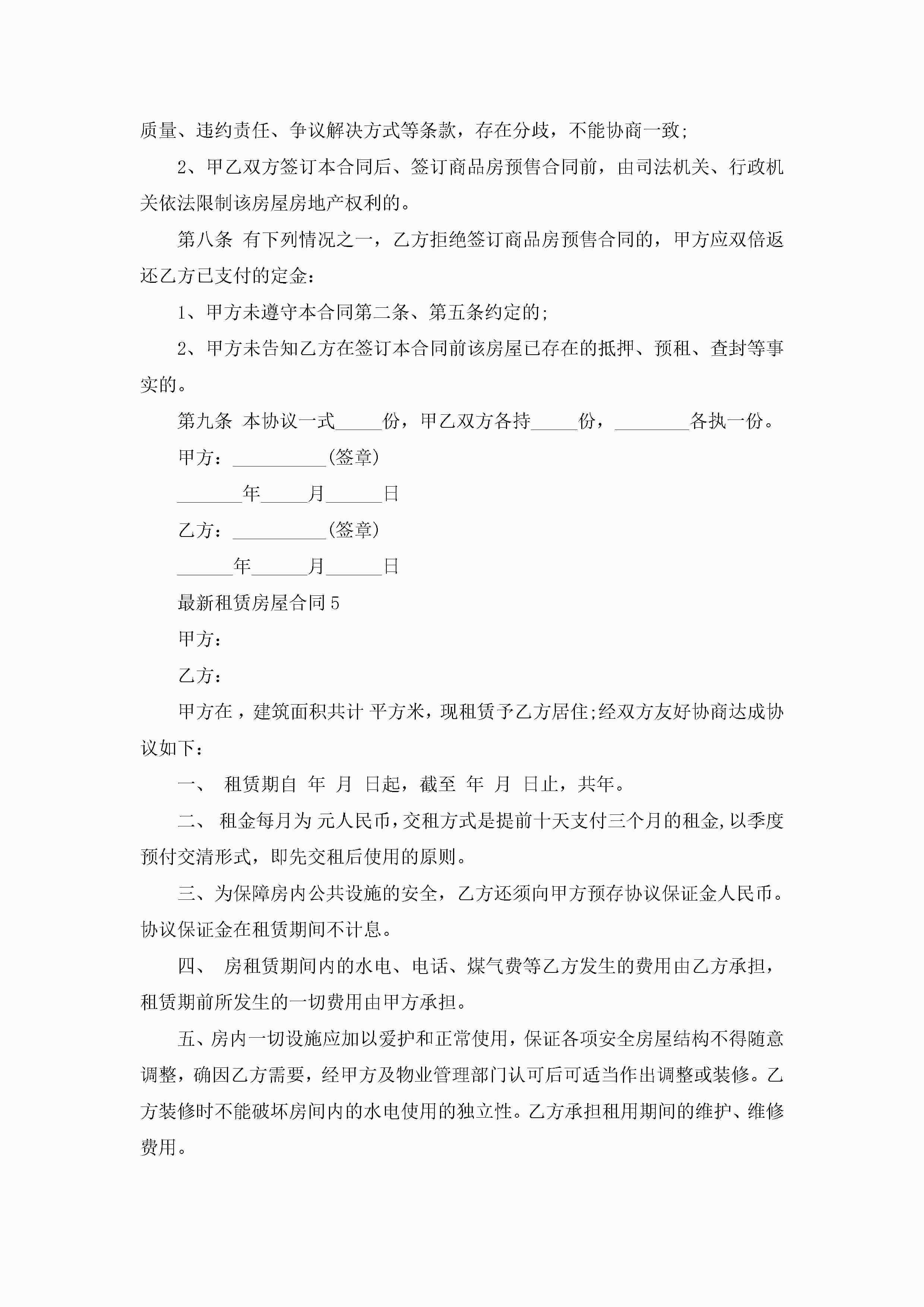 关于最新租赁房屋合同10篇(精选)jugei3月23日 01:41发布关注248 关于最新租赁房屋合同10篇(精选)此内容为付费资源,请付费后查看¥10.9 单篇文档限时特惠¥15个人会员开通企业会员开通立即下载无需登陆!可直接快捷下载单个模板付费资源© 版权声明THE ENDWord模板# 实用文档# 实用模板# 合同模板# 租赁合同 如有问题,可点击最底部“联系我们”联系客服 分享QQ空间微博QQ好友海报分享复制链接收藏