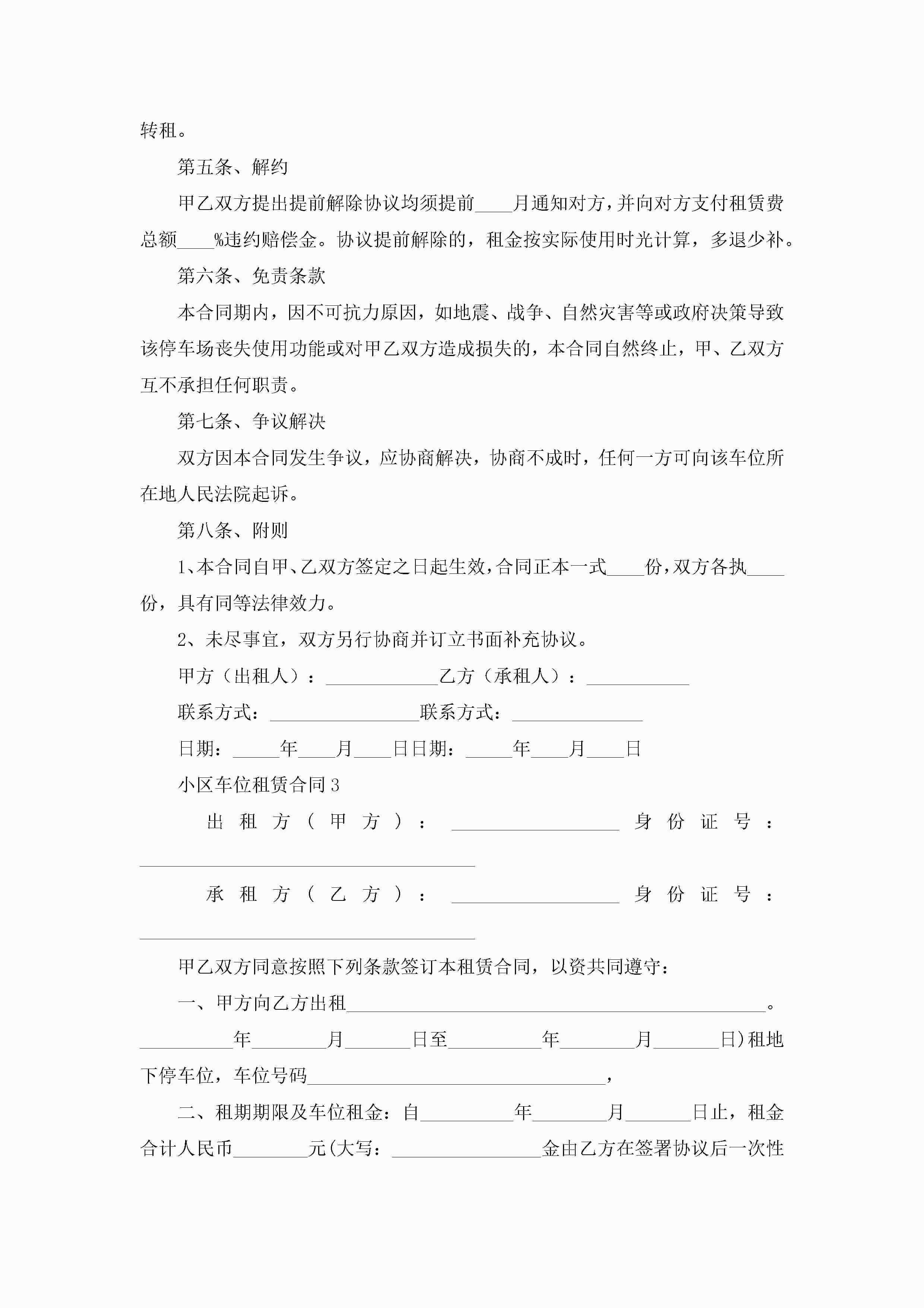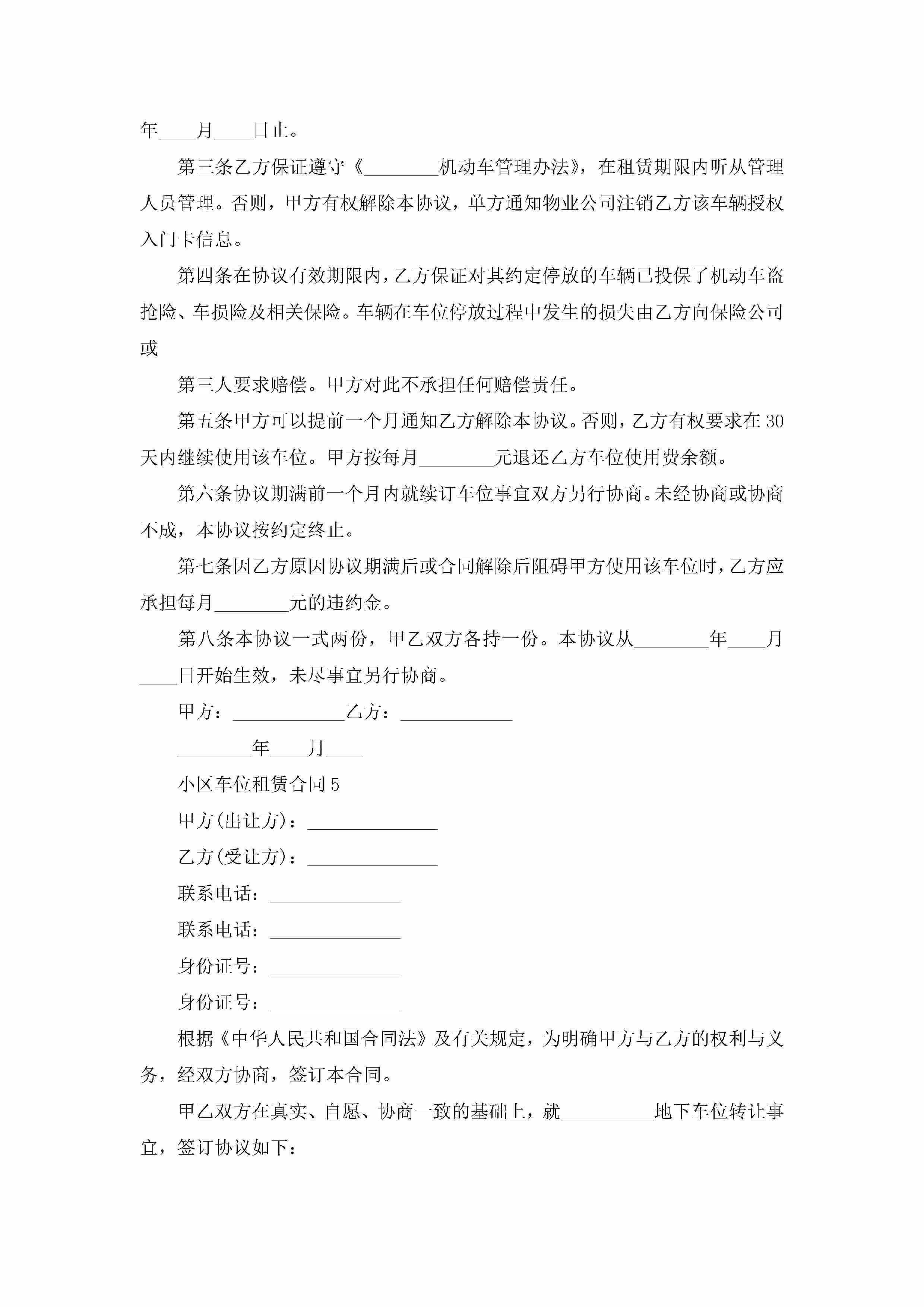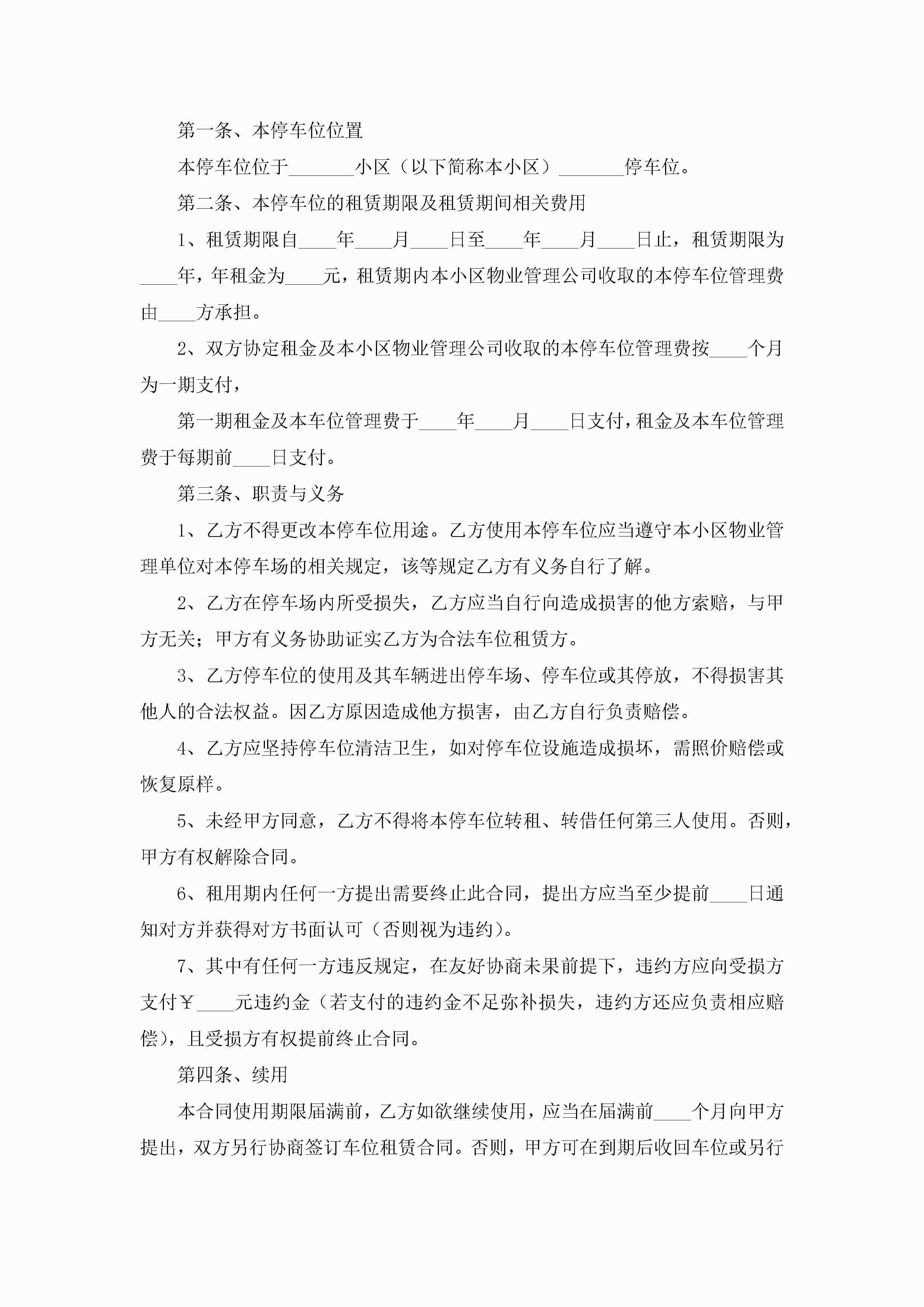 小区车位租赁合同5篇(精选)jugei3月23日 01:41发布关注277 小区车位租赁合同5篇(精选)此内容为付费资源,请付费后查看¥10.9 单篇文档限时特惠¥15个人会员开通企业会员开通立即下载无需登陆!可直接快捷下载单个模板付费资源© 版权声明THE ENDWord模板# 实用文档# 实用模板# 合同模板# 租赁合同 如有问题,可点击最底部“联系我们”联系客服 分享QQ空间微博QQ好友海报分享复制链接收藏